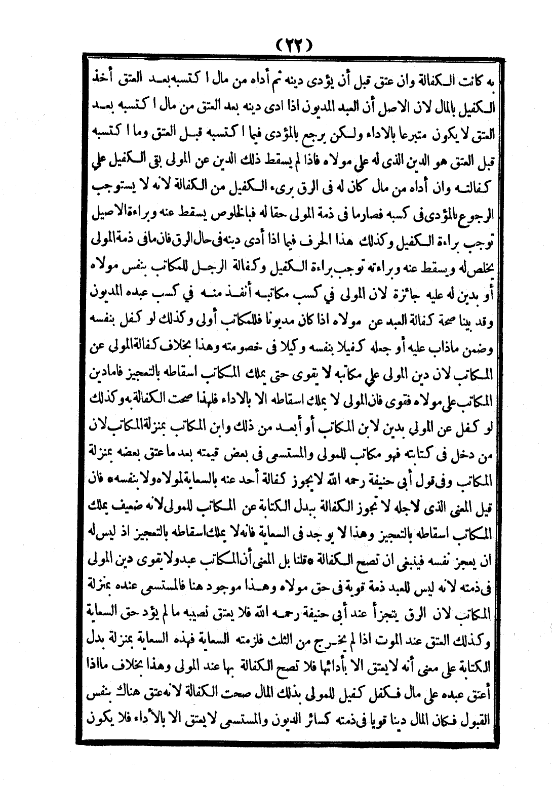 بِهِ كَانَتْ الْكَفَالَةُ، وَإِنْ عَتَقَ قَبْلَ أَنْ يُؤَدِّيَ دَيْنَهُ ثُمَّ أَدَّاهُ مِنْ مَالٍ اكْتَسَبَهُ بَعْدَ الْعِتْقِ أَخَذَ الْكَفِيلُ بِالْمَالِ؛ لِأَنَّ الْأَصْلَ أَنَّ الْعَبْدَ الْمَدْيُونَ إذَا أَدَّى دَيْنَهُ بَعْدَ الْعِتْقِ مِنْ مَالٍ اكْتَسَبَهُ بَعْدَ الْعِتْقِ لَا يَكُونُ مُتَبَرِّعًا بِالْأَدَاءِ وَلَكِنْ يَرْجِعُ بِالْمُؤَدَّى فِيمَا اكْتَسَبَهُ قَبْلَ الْعِتْقِ وَمَا اكْتَسَبَهُ قَبْلَ الْعِتْقِ هُوَ الدَّيْنُ الَّذِي لَهُ عَلَى مَوْلَاهُ فَإِذَا لَمْ يَسْقُطْ ذَلِكَ الدَّيْنُ عَنْ الْمَوْلَى بَقِيَ الْكَفِيلُ عَلَى كَفَالَتِهِ، وَإِنْ أَدَّاهُ مِنْ مَالٍ كَانَ لَهُ فِي الرِّقِّ؛ بَرِئَ الْكَفِيلُ مِنْ الْكَفَالَةِ؛ لِأَنَّهُ لَا يَسْتَوْجِبُ الرُّجُوعَ بِالْمُؤَدِّي فِي كَسْبِهِ فَصَارَ مَا فِي ذِمَّةِ الْمَوْلَى حَقًّا لَهُ فَبِالْخُلُوصِ يَسْقُطُ عَنْهُ وَبَرَاءَةُ الْأَصِيلِ تُوجِبُ بَرَاءَةَ الْكَفِيلِ، وَكَذَلِكَ هَذَا الْحُرُّ فِيمَا إذَا أَدَّى دَيْنَهُ فِي حَالِ الرِّقِّ فَإِنَّ مَا فِي ذِمَّةِ الْمَوْلَى يَخْلُصُ لَهُ وَيَسْقُطُ عَنْهُ وَبَرَاءَتُهُ تُوجِبُ بَرَاءَةَ الْكَفِيلِ وَكَفَالَةُ الرَّجُلِ لِلْمُكَاتَبِ بِنَفْسِ مَوْلَاهُ أَوْ بِدَيْنٍ لَهُ عَلَيْهِ جَائِزَةٌ؛ لِأَنَّ الْمَوْلَى فِي كَسْبِ مُكَاتَبِهِ أَنْفَذُ مِنْهُ فِي كَسْبِ عَبْدِهِ الْمَدْيُونِ وَقَدْ بَيَّنَّا صِحَّةَ كَفَالَةِ الْعَبْدِ عَنْ مَوْلَاهُ إذَا كَانَ مَدْيُونًا فَلِلْمُكَاتَبِ أَوْلَى