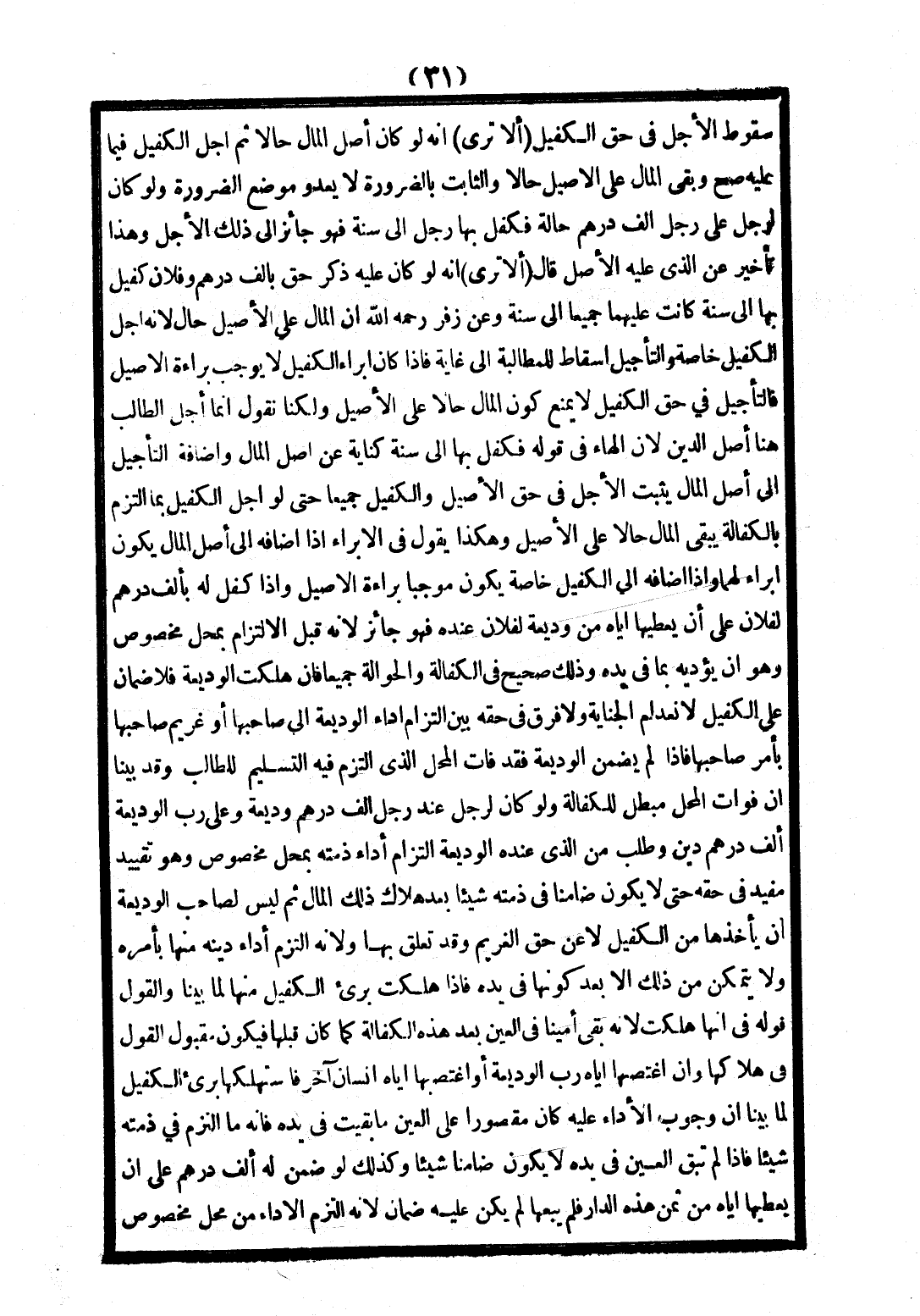 وَلَوْ كَانَ لِرَجُلٍ عَلَى رَجُلٍ أَلْفُ دِرْهَمٍ حَالَّةٍ فَكَفَلَ بِهَا رَجُلٌ إلَى سَنَةٍ فَهُوَ جَائِزٌ إلَى ذَلِكَ الْأَجَلِ وَهَذَا تَأْخِيرٌ عَنْ الَّذِي عَلَيْهِ الْأَصْلُ قَالَ: (أَلَا تَرَى) أَنَّهُ لَوْ كَانَ عَلَيْهِ ذِكْرُ حَقٍّ بِأَلْفِ دِرْهَمٍ وَفُلَانٌ كَفِيلٌ بِهَا إلَى سَنَةٍ كَانَتْ عَلَيْهِمَا جَمِيعًا إلَى سَنَةٍ وَعَنْ زُفَرَ - رَحِمَهُ اللَّهُ - أَنَّ الْمَالَ عَلَى الْأَصِيلِ حَالٌّ؛ لِأَنَّهُ أَجَّلَ الْكَفِيلَ خَاصَّةً. وَالتَّأْجِيلُ إسْقَاطٌ لِلْمُطَالَبَةِ إلَى غَايَةٍ فَإِذَا كَانَ إبْرَاءُ الْكَفِيلِ لَا يُوجِبُ بَرَاءَةَ الْأَصِيلِ فَالتَّأْجِيلُ فِي حَقِّ الْكَفِيلِ لَا يَمْنَعُ كَوْنَ الْمَالِ حَالًّا عَلَى الْأَصِيلِ. وَلَكِنَّا نَقُولُ: إنَّمَا أَجَّلَ الطَّالِبُ هُنَا أَصْلَ الدَّيْنِ؛ لِأَنَّ الْهَاءَ - فِي قَوْلِهِ: فَكَفَلَ بِهَا إلَى سَنَةٍ - كِنَايَةٌ عَنْ أَصْلِ الْمَالِ. وَإِضَافَةُ التَّأْجِيلِ إلَى أَصْلِ الْمَالِ يُثْبِتُ الْأَجَلَ فِي حَقِّ الْأَصِيلِ وَالْكَفِيلِ جَمِيعًا، حَتَّى لَوْ أَجَّلَ الْكَفِيلُ بِمَا الْتَزَمَ بِالْكَفَالَةِ؛ يَبْقَى الْمَالُ حَالًّا عَلَى الْأَصِيلِ.
