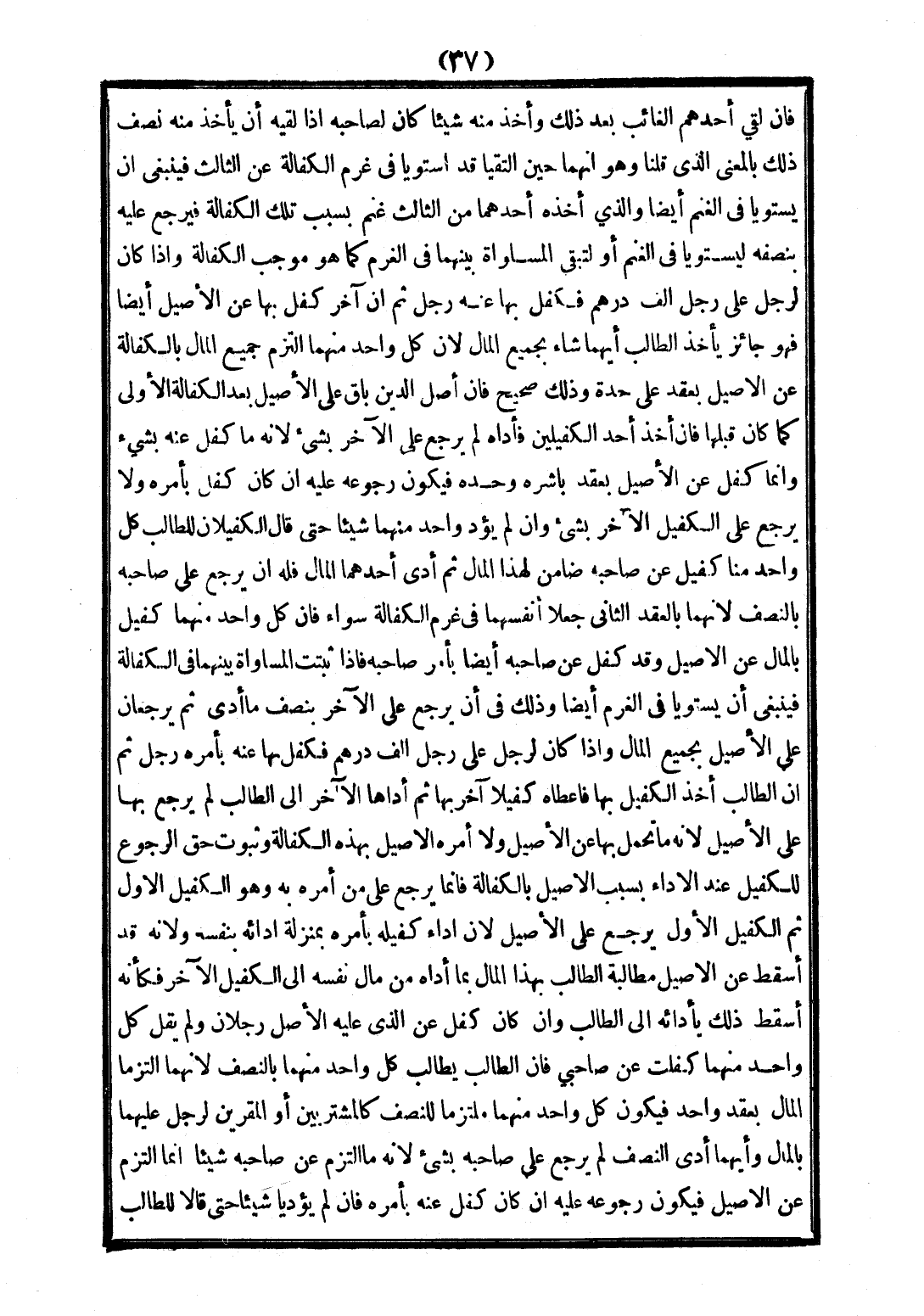 وَإِذَا كَانَ لِرَجُلٍ عَلَى رَجُلٍ أَلْفُ دِرْهَمٍ فَكَفَلَ بِهَا عَنْهُ رَجُلٌ ثُمَّ إنَّ آخَرَ كَفَلَ بِهَا عَنْ الْأَصِيلِ أَيْضًا؛ فَهُوَ جَائِزٌ يَأْخُذُ الطَّالِبُ أَيَّهمَا شَاءَ بِجَمِيعِ الْمَالِ؛ لِأَنَّ كُلَّ وَاحِدٍ مِنْهُمَا الْتَزَمَ جَمِيعَ الْمَالِ بِالْكَفَالَةِ عَنْ الْأَصِيلِ بِعَقْدٍ عَلَى حِدَةٍ، وَذَلِكَ صَحِيحٌ؛ فَإِنَّ أَصْلَ الدَّيْنِ بَاقٍ عَلَى الْأَصِيلِ بَعْدَ الْكَفَالَةِ الْأُولَى كَمَا كَانَ قَبْلَهَا فَإِنْ أَخَذَ أَحَدُ الْكَفِيلَيْنِ فَأَدَّاهُ لَمْ يَرْجِعْ عَلَى الْآخَرِ بِشَيْءٍ؛ لِأَنَّهُ مَا كَفَلَ عَنْهُ بِشَيْءٍ وَإِنَّمَا كَفَلَ عَنْ الْأَصِيلِ بِعَقْدٍ بَاشَرَهُ وَحْدَهُ فَيَكُونُ رُجُوعُهُ عَلَيْهِ إنْ كَانَ كَفَلَ بِأَمْرِهِ وَلَا يَرْجِعُ عَلَى الْكَفِيلِ الْآخَرِ بِشَيْءٍ، وَإِنْ لَمْ يُؤَدِّ وَاحِدٌ مِنْهُمَا شَيْئًا حَتَّى قَالَ الْكَفِيلَانِ لِلطَّالِبِ: كُلُّ وَاحِدٍ مِنَّا كَفِيلٌ عَنْ صَاحِبِهِ ضَامِنٌ لِهَذَا الْمَالِ ثُمَّ أَدَّى أَحَدُهُمَا الْمَالَ؛ فَلَهُ أَنْ يَرْجِعَ عَلَى صَاحِبِهِ بِالنِّصْفِ؛ لِأَنَّهُمَا بِالْعَقْدِ الثَّانِي جَعَلَا أَنْفُسَهُمَا فِي غُرْمِ الْكَفَالَةِ سَوَاءً. فَإِنَّ كُلَّ وَاحِدِ مِنْهُمَا كَفِيلٌ بِالْمَالِ عَنْ الْأَصِيلِ وَقَدْ كَفَلَ عَنْ صَاحِبِهِ أَيْضًا بِأَمْرِ صَاحِبِهِ فَإِذَا ثَبَتَتْ الْمُسَاوَاةُ بَيْنَهُمَا فِي الْكَفَالَةِ فَيَنْبَغِي أَنْ يَسْتَوِيَا فِي الْغُرْمِ أَيْضًا وَذَلِكَ فِي أَنْ يَرْجِعَ عَلَى الْآخَرِ بِنِصْفِ مَا أَدَّى ثُمَّ يَرْجِعَانِ عَلَى الْأَصِيلِ بِجَمِيعِ الْمَالِ