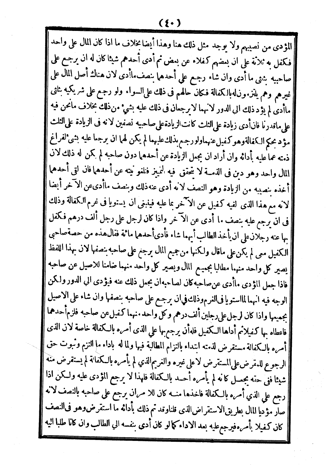 الْمُؤَدَّى مِنْ نَصِيبِهِمْ. وَلَا يُوجَدُ مِثْلُ ذَلِكَ هُنَا وَهَذَا أَيْضًا بِخِلَافِ مَا إذَا كَانَ الْمَالُ عَلَى وَاحِدٍ فَكَفَلَ بِهِ ثَلَاثَةً عَلَى أَنَّ بَعْضَهُمْ كُفَلَاءُ عَنْ بَعْضٍ ثُمَّ أَدَّى أَحَدُهُمْ شَيْئًا كَانَ لَهُ أَنْ يَرْجِعَ عَلَى صَاحِبَيْهِ بِثُلُثَيْ مَا أَدَّى، وَإِنْ شَاءَ رَجَعَ عَلَى أَحَدِهِمَا بِنِصْفِ مَا أَدَّى؛ لِأَنَّ هُنَاكَ أَصْلُ الْمَالِ عَلَى غَيْرِهِمْ وَهُمْ يَلْتَزِمُونَ لَهُ بِالْكَفَالَةِ فَكَانَ حَالُهُمْ فِي ذَلِكَ عَلَى السَّوَاءِ وَلَوْ رَجَعَ عَلَى شَرِيكَيْهِ بِثُلُثَيْ مَا أَدَّى لَمْ يُؤَدِّ ذَلِكَ إلَى الدُّورِ؛ لِأَنَّهُمَا لَا يَرْجِعَانِ فِي ذَلِكَ عَلَيْهِ بِشَيْءٍ مِنْ ذَلِكَ بِخِلَافِ مَا نَحْنُ فِيهِ عَلَى مَا قَدَّرْنَا فَإِنْ أَدَّى زِيَادَةً عَلَى الثُّلُثِ؛ كَانَتْ الزِّيَادَةُ عَلَى صَاحِبَيْهِ نِصْفَيْنِ؛ لِأَنَّهُ فِي الزِّيَادَةِ عَلَى الثُّلُثِ مُؤَدٍّ بِحُكْمِ الْكَفَالَةِ وَهُوَ كَفِيلٌ عَنْهُمَا وَلَوْ رَجَعَ بِذَلِكَ عَلَيْهِمَا لَمْ يَكُنْ لَهُمَا أَنْ يَرْجِعَا عَلَيْهِ بِشَيْءٍ لِفَرَاغِ ذِمَّتِهِ عَمَّا عَلَيْهِ بِأَدَائِهِ، وَإِنْ أَرَادَ أَنْ يَجْعَلَ الزِّيَادَةَ عَنْ أَحَدِهِمَا دُونَ صَاحِبِهِ لَمْ يَكُنْ لَهُ ذَلِكَ؛ لِأَنَّ الْمَالَ وَاحِدٌ وَهُوَ دَيْنٌ فِي الذِّمَّةِ لَا يَتَحَقَّقُ فِيهِ التَّمْيِيزُ فَتَلْغُو نِيَّتُهُ عَنْ أَحَدِهِمَا.