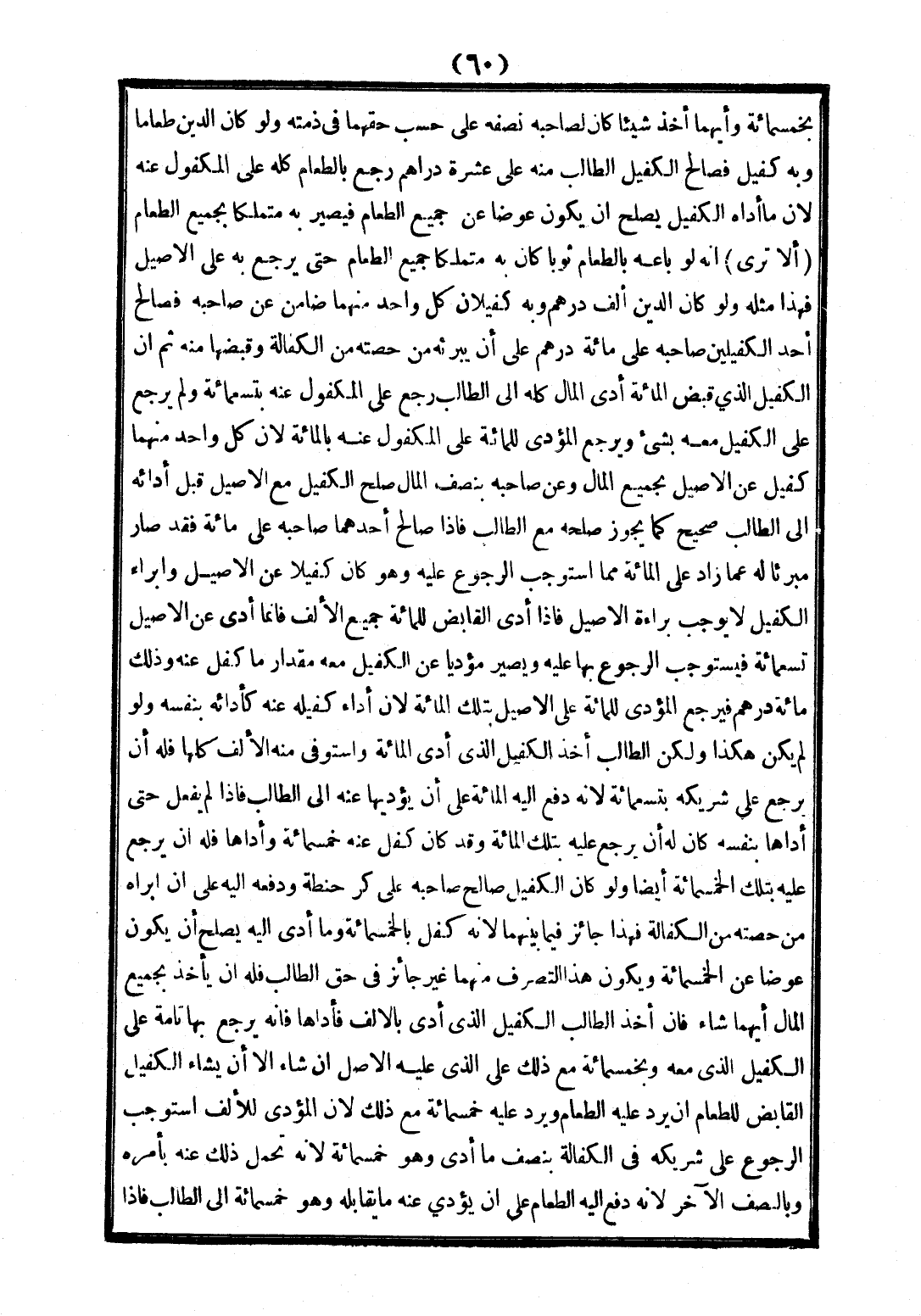 بِخَمْسِمِائَةٍ وَأَيُّهُمَا أَخَذَ شَيْئًا كَانَ لِصَاحِبِهِ نِصْفُهُ عَلَى حَسَبِ حَقِّهِمَا فِي ذِمَّتِهِ. وَلَوْ كَانَ الدَّيْنُ طَعَامًا وَبِهِ كَفِيلٌ فَصَالَحَ الْكَفِيلُ الطَّالِبَ مِنْهُ عَلَى عَشَرَةِ دَرَاهِمَ؛ رَجَعَ بِالطَّعَامِ كُلِّهِ عَلَى الْمَكْفُولِ عَنْهُ؛ لِأَنَّ مَا أَدَّاهُ الْكَفِيلُ يَصْلُحُ أَنْ يَكُونَ عِوَضًا عَنْ جَمِيعِ الطَّعَامِ فَيَصِيرُ بِهِ مُتَمَلِّكًا بِجَمِيعِ الطَّعَامِ.
