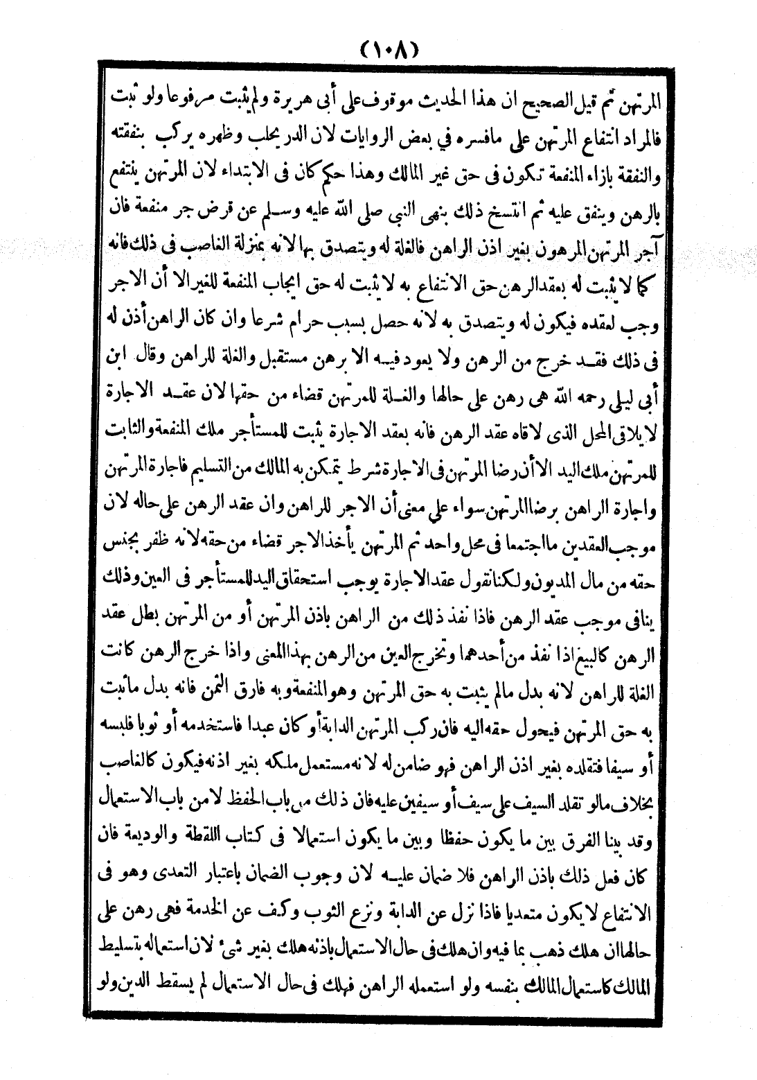 الْمُرْتَهِنِ ثُمَّ قِيلَ الصَّحِيحُ أَنَّ هَذَا الْحَدِيثَ مَوْقُوفٌ عَلَى أَبِي هُرَيْرَةَ، وَلَمْ يَثْبُتْ مَرْفُوعًا، وَلَوْ ثَبَتَ، فَالْمُرَادُ انْتِفَاعُ الْمُرْتَهِنِ عَلَى مَا فَسَّرَهُ فِي بَعْضِ الرِّوَايَاتِ؛ لِأَنَّ الدَّرَّ يُحْلَبُ، وَظَهْرُهُ يُرْكَبُ بِنَفَقَتِهِ، وَالنَّفَقَةُ بِإِزَاءِ الْمَنْفَعَةِ تَكُونُ فِي حَقِّ غَيْرِ الْمَالِكِ، وَهَذَا حُكْمٌ كَانَ فِي الِابْتِدَاءِ؛ لِأَنَّ الْمُرْتَهِنَ يَنْتَفِعُ بِالرَّهْنِ، وَيُنْفِقُ عَلَيْهِ ثُمَّ انْتَسَخَ ذَلِكَ، بِنَهْيِ النَّبِيِّ - صَلَّى اللَّهُ عَلَيْهِ وَسَلَّمَ - عَنْ قَرْضٍ جَرَّ مَنْفَعَةً فَإِنْ آجَرَ الْمُرْتَهِنُ الْمَرْهُونَ بِغَيْرِ إذْنِ الرَّاهِنِ فَالْغَلَّةُ لَهُ، وَيَتَصَدَّقُ بِهَا؛ لِأَنَّهُ بِمَنْزِلَةِ الْغَاصِبِ فِي ذَلِكَ، فَإِنَّهُ كَمَا لَا يَثْبُت لَهُ بِعَقْدِ الرَّهْنِ حَقُّ الِانْتِفَاعِ بِهِ لَا يَثْبُتُ لَهُ حَقُّ إيجَابِ الْمَنْفَعَةِ لِلْغَيْرِ إلَّا أَنَّ الْأَجْرَ، وَجَبَ لِعَقْدِهِ، فَيَكُونُ لَهُ، وَيَتَصَدَّقُ بِهِ؛ لِأَنَّهُ حَصَلَ بِسَبَبٍ حَرَامٍ شَرْعًا، وَإِنْ كَانَ الرَّاهِنُ أَذِنَ لَهُ فِي ذَلِكَ فَقَدْ خَرَجَ مِنْ الرَّهْنِ، وَلَا يَعُودُ فِيهِ إلَّا بِرَهْنٍ مُسْتَقْبَلٍ، وَالْغَلَّةُ لِلرَّاهِنِ.