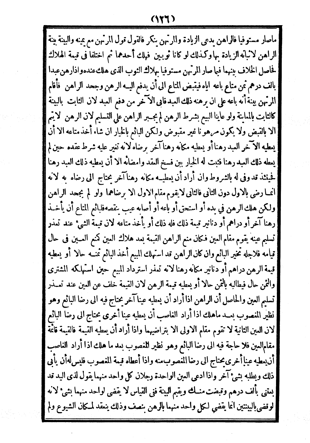 مَا صَارَ مُسْتَوْفِيًا، فَالرَّاهِنُ يَدَّعِي الزِّيَادَةَ، وَالْمُرْتَهِنُ يُنْكِرُ فَالْقَوْلُ قَوْلُ الْمُرْتَهِنِ مَعَ يَمِينِهِ وَالْبَيِّنَةُ بَيِّنَةُ الرَّاهِنِ لِإِثْبَاتِهِ الزِّيَادَةَ بِهَا، وَكَذَلِكَ لَوْ كَانَا ثَوْبَيْنِ فَهَلَكَ أَحَدُهُمَا ثُمَّ اخْتَلَفَا فِي قِيمَةِ الْهَلَاكِ فَحَاصِلُ الْخِلَافِ بَيْنَهُمَا فِيمَا صَارَ الْمُرْتَهِنُ مُسْتَوْفِيًا بِهَلَاكِ الثَّوْبِ الَّذِي هَلَكَ عِنْدَهُ.