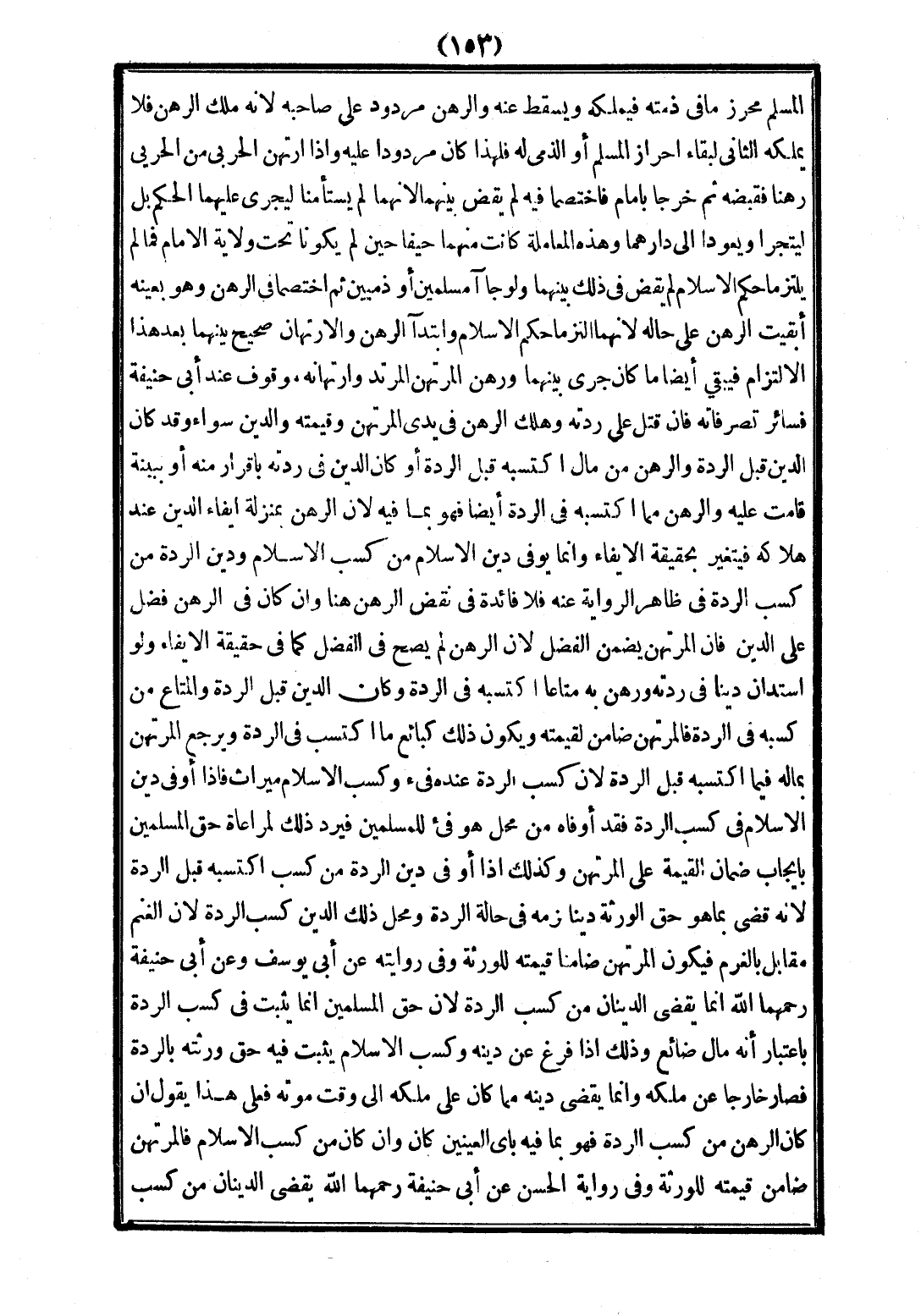وَرَهْنُ الْمُرْتَدِّ وَارْتِهَانُهُ مَوْقُوفٌ عِنْد أَبِي حَنِيفَةَ كَسَائِرِ تَصَرُّفَاتِهِ، فَإِنْ قُتِلَ عَلَى رِدَّتِهِ وَهَلَكَ الرَّهْنُ فِي يَدَيْ الْمُرْتَهِنِ وَقِيمَتُهُ وَالدَّيْنُ سَوَاءٌ، وَقَدْ كَانَ الدَّيْنُ قَبْلَ الرِّدَّةِ وَالرَّهْنُ مِنْ مَالٍ اكْتَسَبَهُ قَبْلَ الرِّدَّةِ أَوْ كَانَ الدَّيْنُ فِي رِدَّتِهِ بِإِقْرَارٍ مِنْهُ أَوْ بِبَيِّنَةٍ قَامَتْ عَلَيْهِ وَالرَّهْنُ مِمَّا اكْتَسَبَهُ فِي الرِّدَّةِ أَيْضًا فَهُوَ بِمَا فِيهِ؛ لِأَنَّ الرَّهْنَ بِمَنْزِلَةِ إيفَاءِ الدَّيْنِ عِنْدَ هَلَاكِهِ فَيَتَغَيَّرُ بِحَقِيقَةِ الْإِيفَاءِ وَإِنَّمَا يُوَفَّى دَيْنُ الْإِسْلَامِ مِنْ كَسْبِ الْإِسْلَامِ، وَدَيْنُ الرِّدَّةِ مِنْ كَسْبِ الرِّدَّةِ، فِي ظَاهِرِ الرِّوَايَةِ عَنْهُ، فَلَا فَائِدَةَ فِي نَقْضِ الرَّهْنِ هُنَا وَإِنْ كَانَ فِي الرَّهْنِ فَضْلٌ عَلَى الدَّيْنِ، فَإِنَّ الْمُرْتَهِنَ يَضْمَنُ الْفَضْلَ؛ لِأَنَّ الرَّهْنَ لَمْ يَصِحَّ فِي الْفَضْلِ، كَمَا فِي حَقِيقَةِ الْإِيفَاءِ، وَلَوْ اسْتَدَانَ دَيْنًا فِي رِدَّتِهِ وَرَهَنَ بِهِ مَتَاعًا اكْتَسَبَهُ فِي الرِّدَّةِ، وَكَانَ الدَّيْنُ قَبْلَ الرِّدَّةِ وَالْمَتَاعُ مِنْ كَسْبِهِ فِي الرِّدَّةِ فَالْمُرْتَهِنُ ضَامِنٌ لِقِيمَتِهِ وَيَكُونُ ذَلِكَ كَبَائِعِ مَا اكْتَسَبَ فِي الرِّدَّةِ وَيَرْجِعُ الْمُرْتَهِنُ بِمَالِهِ فِيمَا اكْتَسَبَهُ قَبْلَ الرِّدَّةِ؛ لِأَنَّ كَسَبَ الرِّدَّةِ عِنْدَهُ فَيْءٌ، وَكَسْبُ الْإِسْلَامِ مِيرَاثٌ، فَإِذَا أَوْفَى دَيْنَ الْإِسْلَامِ فِي كَسْبِ الرِّدَّةِ فَقَدْ أَوْفَاهُ مِنْ مَحِلٍّ هُوَ فَيْءٌ لِلْمُسْلِمِينَ فَيُرَدُّ ذَلِكَ لِمُرَاعَاةِ حَقِّ الْمُسْلِمِينَ بِإِيجَابِ ضَمَانِ الْقِيمَةِ عَلَى الْمُرْتَهِنِ، وَكَذَلِكَ إذَا أَوْفَى دَيْنَ الرِّدَّةِ مِنْ كَسْبٍ اكْتَسَبَهُ قَبْلَ الرِّدَّةِ لِأَنَّهُ يَقْضِي بِمَا هُوَ حَقُّ الْوَرَثَةِ دَيْنًا لَزِمَهُ فِي حَالِ الرِّدَّةِ وَمَحَلُّ ذَلِكَ الدَّيْنِ كَسْبُ الرِّدَّةِ؛ لِأَنَّ الْغُنْمَ مُقَابَلٌ بِالْغُرْمِ، فَيَكُونُ الْمُرْتَهِنُ ضَامِنًا قِيمَتَهُ لِلْوَرَثَةِ.