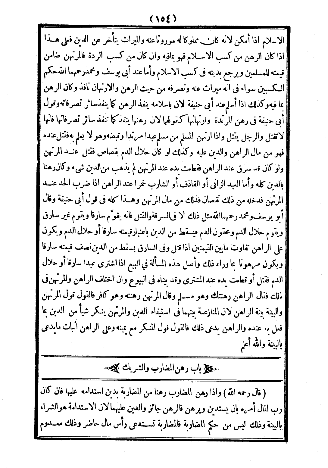 [بَابُ رَهْنِ الْمُضَارِبِ وَالشَّرِيكِ]