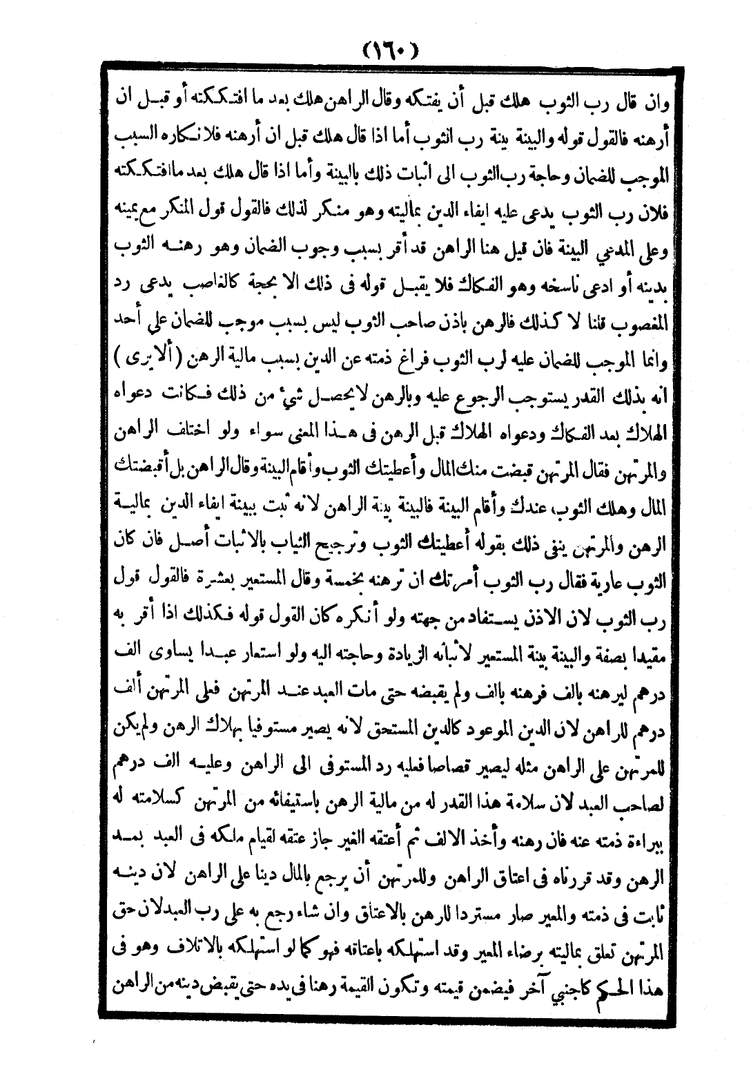 وَأَمَّا إذَا قَالَ: هَلَكَ بَعْدَ مَا افْتَكَكْتُهُ، فَلِأَنَّ رَبَّ الثَّوْبِ يَدَّعِي عَلَيْهِ إيفَاءَ الدَّيْنِ بِمَالِيَّتِهِ وَهُوَ مُنْكِرٌ لِذَلِكَ فَالْقَوْلُ قَوْلُ الْمُنْكِرِ مَعَ يَمِينِهِ وَعَلَى الْمُدَّعِي الْبَيِّنَةَ، فَإِنْ قِيلَ هُنَا الرَّاهِنُ قَدْ أَقَرَّ بِسَبَبِ وُجُوبِ الضَّمَانِ، وَهُوَ رَهْنُهُ الثَّوْبَ بِدَيْنِهِ، أَوْ ادَّعَى نَاسِخُهُ، وَهُوَ الْفِكَاكُ فَلَا يُقْبَلُ قَوْلُهُ فِي ذَلِكَ إلَّا بِحُجَّةٍ كَالْغَاصِبِ يَدَّعِي رَدَّ الْمَغْصُوبِ، قُلْنَا: لَا. كَذَلِكَ فَالرَّهْنُ بِإِذْنِ صَاحِبِ الثَّوْبِ لَيْسَ بِسَبَبٍ مُوجِبٍ لِلضَّمَانِ عَلَى أَحَدٍ وَإِنَّمَا الْمُوجِبُ لِلضَّمَانِ عَلَيْهِ لِرَبِّ الثَّوْبِ فَرَاغُ ذِمَّتِهِ عَنْ الدَّيْنِ بِسَبَبِ مَالِيَّةِ الرَّهْنِ.