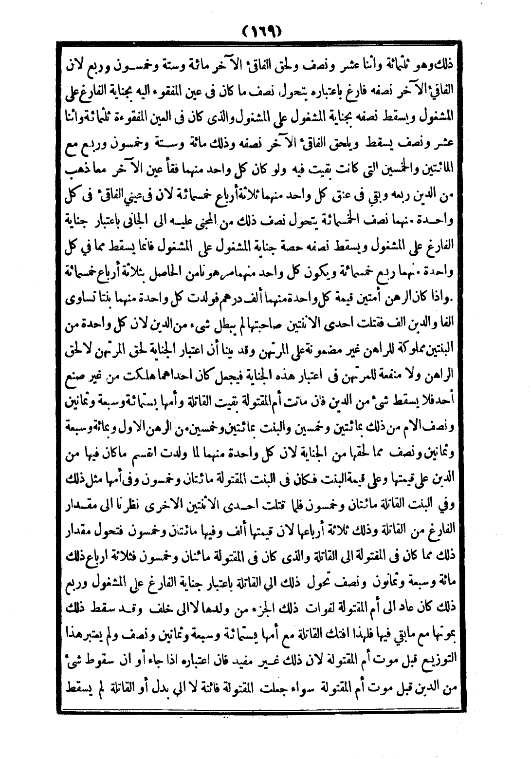 ذَلِكَ، وَهُوَ ثَلَثُمِائَةٍ، وَاثْنَا عَشَرَ وَنِصْفٌ وَلَحِقَ الْفَاقِئُ الْآخَرُ مِائَةٌ وَسِتَّةٌ وَخَمْسُونَ وَرُبْعٌ؛ لِأَنَّ الْفَاقِئَ الْآخَرَ نِصْفُهُ فَارِغٌ بِاعْتِبَارِهِ يَتَحَوَّلُ نِصْفُ مَا كَانَ فِي عَيْنِ الْمَفْقُوءِ إلَيْهِ بِجِنَايَةِ الْفَارِغِ عَلَى الْمَشْغُولِ، وَيَسْقُطُ نِصْفُهُ بِجِنَايَةِ الْمَشْغُولِ عَلَى الْمَشْغُولِ وَاَلَّذِي كَانَ فِي الْعَيْنِ الْمَفْقُوءَةِ ثَلَثُمِائَةٍ وَاثْنَا عَشَرَ وَنِصْفٌ يَسْقُطُ وَيَلْحَقُ الْفَاقِئُ الْآخَرُ نِصْفُهُ، وَذَلِكَ مِائَةٌ وَسِتَّةٌ وَخَمْسُونَ وَرُبْعٌ مَعَ الْمِائَتَيْنِ وَالْخَمْسِينَ الَّتِي كَانَتْ بَقِيَتْ فِيهِ، وَلَوْ كَانَ كُلُّ وَاحِدٍ مِنْهُمَا فَقَأَ عَيْنَ الْآخَرِ مِمَّا ذَهَبَ مِنْ الدَّيْنِ رُبْعُهُ، وَبَقِيَ فِي عُنُقِ كُلِّ وَاحِدٍ مِنْهُمَا ثَلَاثَةُ أَرْبَاعِ خَمْسِمِائَةٍ؛ لِأَنَّ فِي عَيْنَيْ الْفَاقِئِ فِي كُلِّ وَاحِدَةٍ مِنْهُمَا: نِصْفُ الْخَمْسِمِائَةِ يَتَحَوَّلُ نِصْفُ ذَلِكَ مِنْ الْمَجْنِيِّ عَلَيْهِ إلَى الْجَانِي بِاعْتِبَارِ جِنَايَةِ الْفَارِغِ عَلَى الْمَشْغُولِ وَيَسْقُطُ نِصْفُهُ حِصَّةُ جِنَايَةِ الْمَشْغُولِ عَلَى الْمَشْغُولِ، فَإِنَّمَا يَسْقُطُ مِمَّا فِي كُلِّ وَاحِدَةٍ مِنْهُمَا: رُبْعُ خَمْسِمِائَةٍ، وَيَكُونُ كُلُّ وَاحِدٍ مِنْهُمَا مَرْهُونًا مِنْ الْحَاصِلِ بِثَلَاثَةِ أَرْبَاعِ خَمْسِمِائَةٍ.