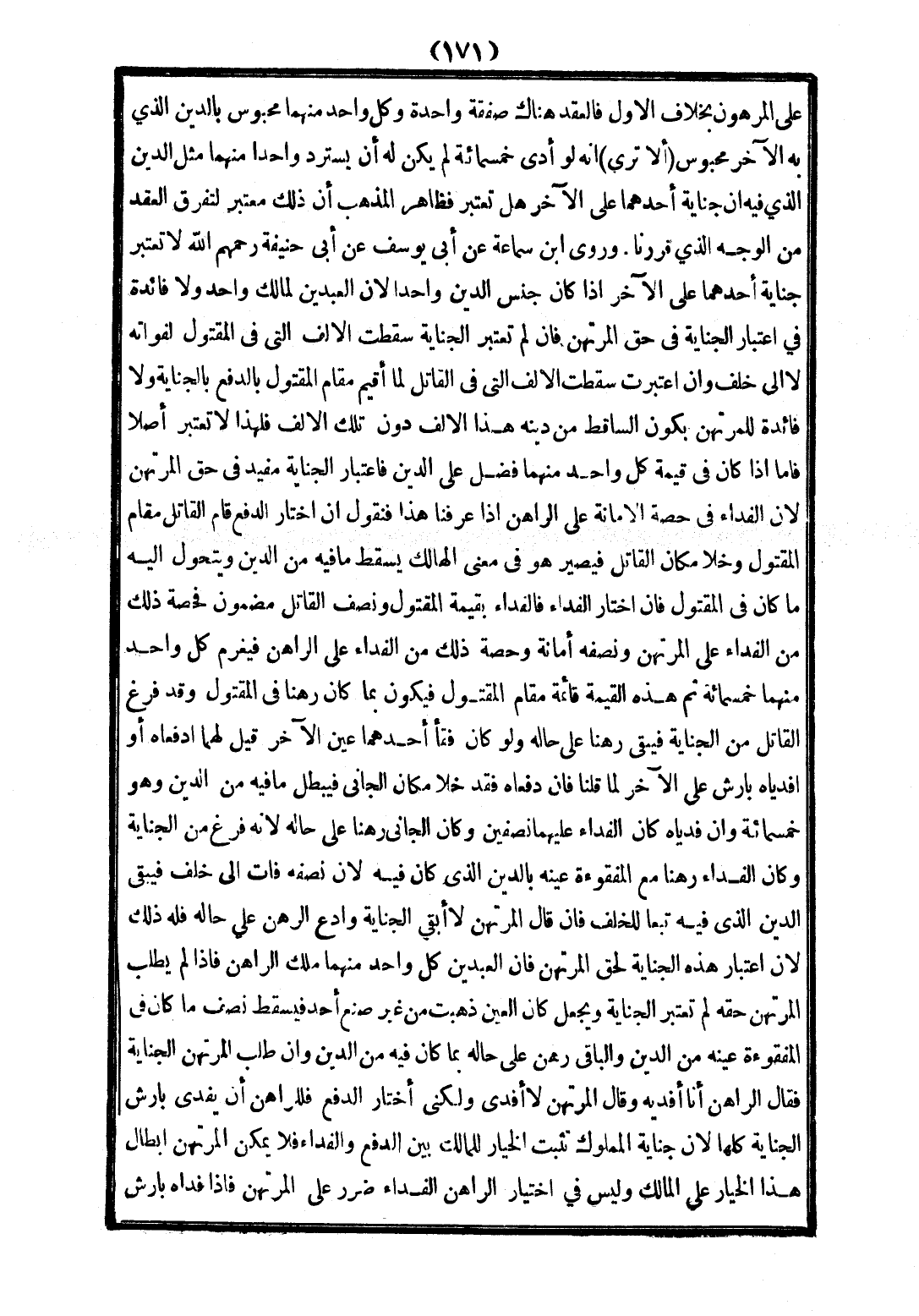 عَلَى الْمَرْهُونِ بِخِلَافِ الْأَوَّلِ فَالْعَقْدُ هُنَاكَ صَفْقَةٌ وَاحِدَةٌ وَكُلُّ وَاحِدٍ مِنْهُمَا مَحْبُوسٌ بِالدَّيْنِ الَّذِي بِهِ الْآخَرُ مَحْبُوسٌ.