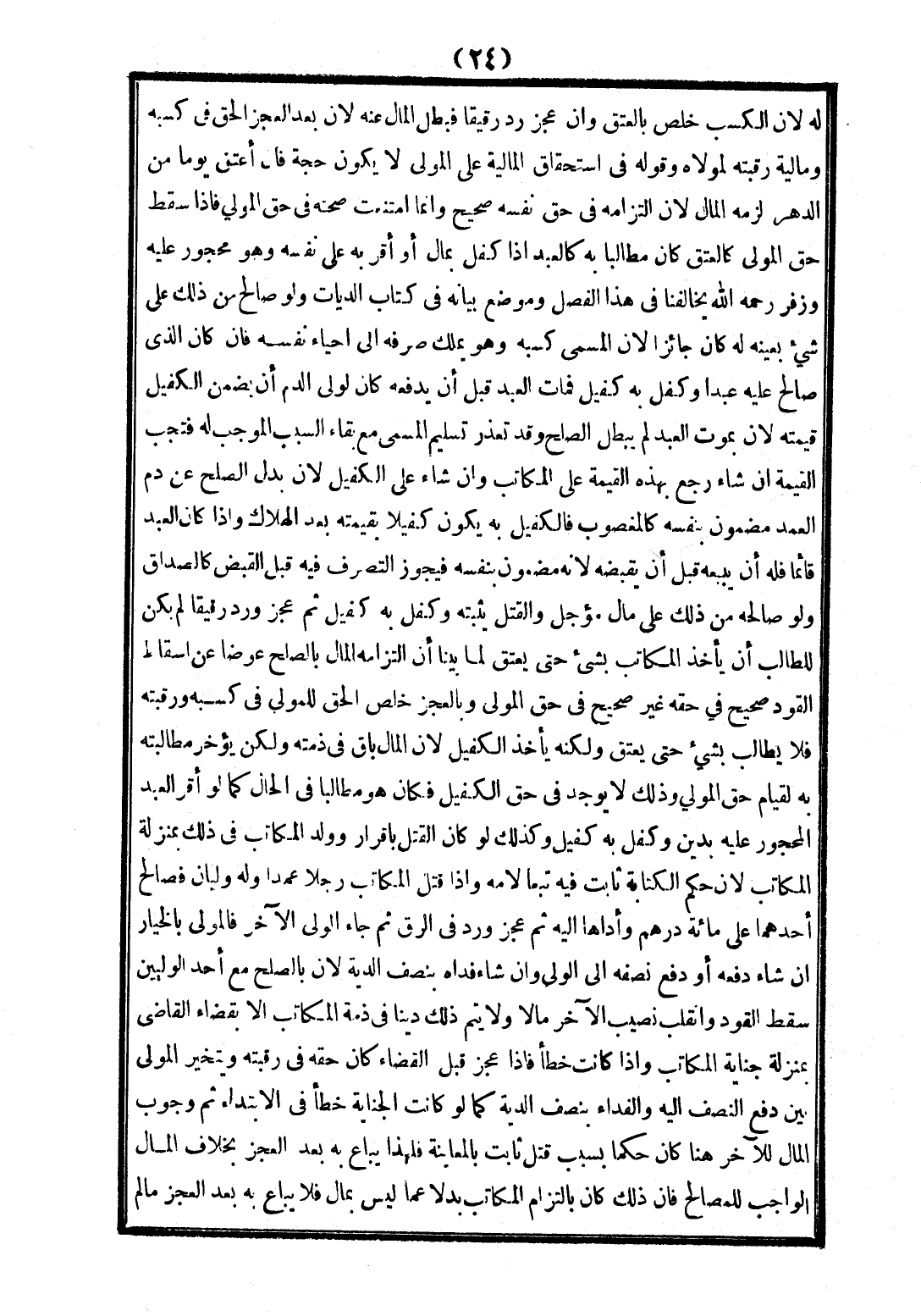 فَإِنْ كَانَ الَّذِي صَالَحَ عَلَيْهِ عَبْدًا وَكَفَلَ بِهِ كَفِيلٌ فَمَاتَ الْعَبْدُ قَبْلَ أَنْ يَدْفَعَهُ كَانَ لِوَلِيِّ الدَّمِ أَنْ يَضْمَنَ الْكَفِيلُ قِيمَتَهُ؛ لِأَنَّ بِمَوْتِ الْعَبْدِ لَمْ يَبْطُلْ الصُّلْحُ، وَقَدْ تَعَذَّرَ تَسْلِيمُ الْمُسَمَّى مَعَ بَقَاءِ السَّبَبِ الْمُوجِبِ لَهُ فَتَجِبُ الْقِيمَةُ: إنْ شَاءَ رَجَعَ بِهَذِهِ الْقِيمَةِ عَلَى الْمُكَاتَبِ، وَإِنْ شَاءَ عَلَى الْكَفِيلِ؛ لِأَنَّ بَدَلَ الصُّلْحِ عَنْ دَمِ الْعَمْدِ مَضْمُونٌ بِنَفْسِهِ كَالْمَغْصُوبِ فَالْكَفِيلُ بِهِ يَكُونُ كَفِيلًا بِقِيمَتِهِ بَعْدَ الْهَلَاكِ، وَإِذَا كَانَ الْعَبْدُ قَائِمًا فَلَهُ أَنْ يَبِيعَهُ قَبْلَ أَنْ يَقْبِضَهُ؛ لِأَنَّهُ مَضْمُونٌ بِنَفْسِهِ فَيَجُوزُ التَّصَرُّفُ فِيهِ قَبْلَ الْقَبْضِ كَالصَّدَاقِ، وَلَوْ صَالَحَهُ مِنْ ذَلِكَ عَلَى مَالٍ مُؤَجَّلٍ وَالْقَتْلُ يُثْبِتُهُ وَكَفَلَ بِهِ كَفِيلٌ، ثُمَّ عَجَزَ وَرُدَّ رَقِيقًا لَمْ يَكُنْ لِلطَّالِبِ أَنْ يَأْخُذَ الْمُكَاتَبَ بِشَيْءٍ حَتَّى يُعْتَقَ لِمَا بَيَّنَّا أَنَّ الْتِزَامَهُ الْمَالَ بِالصُّلْحِ عِوَضًا عَنْ إسْقَاطِ الْقَوَدِ صَحِيحٌ فِي حَقِّهِ غَيْرُ صَحِيحٍ فِي حَقِّ الْمَوْلَى وَبِالْعَجْزِ خَلَصَ الْحَقُّ لِلْمَوْلَى فِي كَسْبِهِ وَرَقَبَتِهِ، فَلَا يُطَالَبُ بِشَيْءٍ حَتَّى يُعْتَقَ وَلَكِنَّهُ يَأْخُذُ الْكَفِيلَ؛ لِأَنَّ الْمَالَ بَاقٍ فِي ذِمَّتِهِ وَلَكِنْ يُؤَخِّرُ مُطَالَبَتَهُ بِهِ لِقِيَامِ حَقِّ الْمَوْلَى وَذَلِكَ لَا يُوجَدُ فِي حَقِّ الْكَفِيلِ فَكَانَ هُوَ مُطَالَبًا فِي الْحَالِ كَمَا لَوْ أَقَرَّ الْعَبْدُ الْمَحْجُورُ عَلَيْهِ بِدَيْنٍ وَكَفَلَ بِهِ كَفِيلٌ، وَكَذَلِكَ لَوْ كَانَ الْقَتْلُ بِإِقْرَارٍ وَوَلَدُ الْمُكَاتَبِ فِي ذَلِكَ بِمَنْزِلَةِ الْمُكَاتَبِ؛ لِأَنَّ حُكْمَ الْكِتَابَةِ ثَابِتٌ فِيهِ تَبَعًا لِأُمِّهِ.
