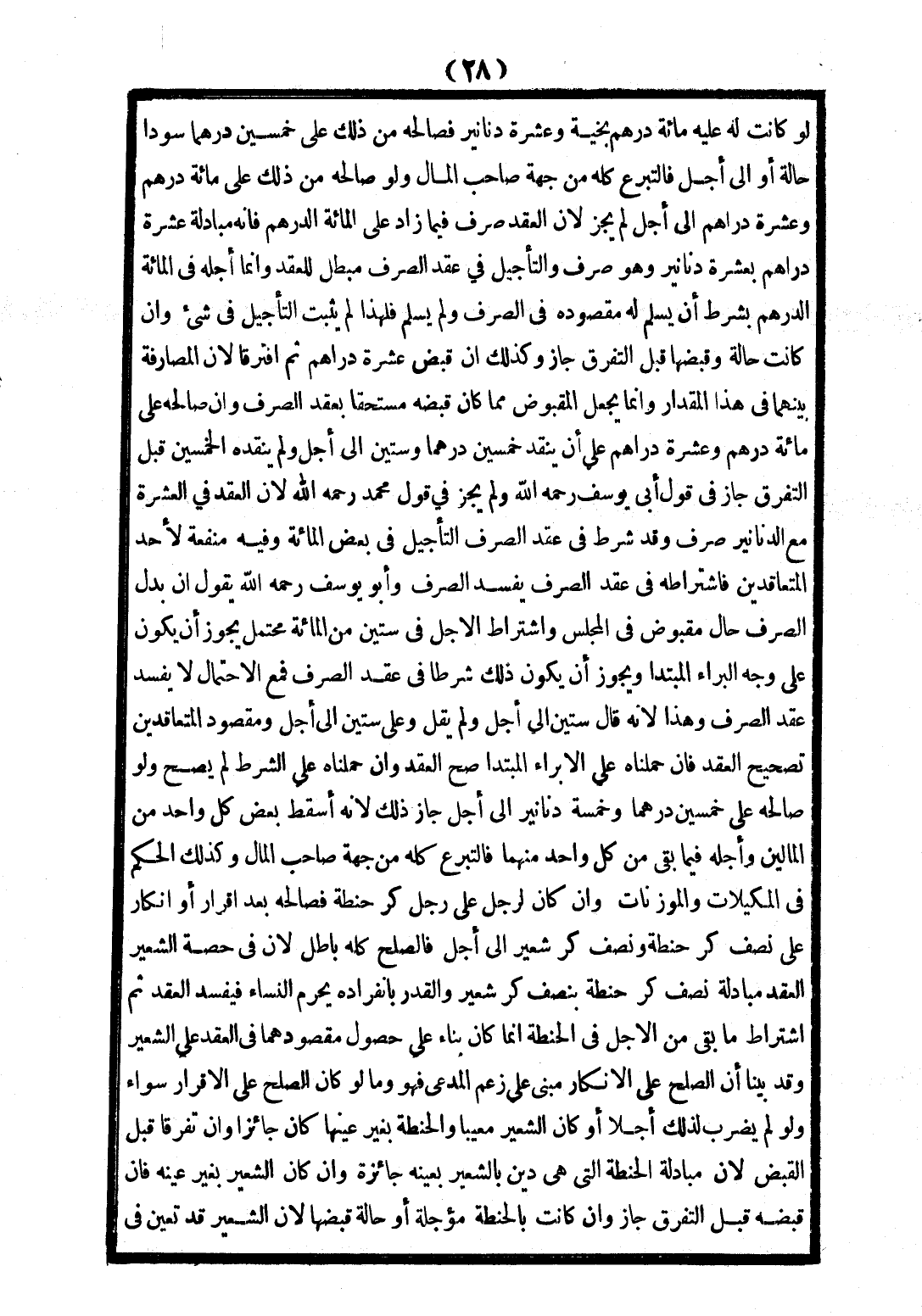 لَوْ كَانَتْ لَهُ عَلَيْهِ مِائَةُ دِرْهَمٍ بَخِّيَّةٍ وَعَشَرَةُ دَنَانِيرَ فَصَالَحَهُ مِنْ ذَلِكَ عَلَى خَمْسِينَ دِرْهَمًا سُودًا حَالَّةً أَوْ إلَى أَجَلٍ فَالتَّبَرُّعُ كُلُّهُ مِنْ جِهَةِ صَاحِبِ الْمَالِ، وَلَوْ صَالَحَهُ مِنْ ذَلِكَ عَلَى مِائَةِ دِرْهَمٍ وَعَشَرَةِ دَرَاهِمَ إلَى أَجَلٍ لَمْ يَجُزْ؛ لِأَنَّ الْعَقْدَ صَرْفٌ فِيمَا زَادَ عَلَى الْمِائَةِ الدِّرْهَمِ، فَإِنَّهُ مُبَادَلَةُ عَشَرَةِ دَرَاهِمَ بِعَشَرَةِ دَنَانِيرَ، وَهُوَ صَرْفٌ وَالتَّأْجِيلُ فِي عَقْدِ الصَّرْفِ مُبْطِلٌ لِلْعَقْدِ، وَإِنَّمَا أَجَّلَهُ فِي الْمِائَةِ الدِّرْهَمِ بِشَرْطِ أَنْ يُسَلِّمَ لَهُ مَقْصُودَهُ فِي الصَّرْفِ، وَلَمْ يُسَلِّمْ فَلِهَذَا لَمْ يَثْبُتْ التَّأْجِيلُ فِي شَيْءٍ، وَإِنْ كَانَتْ حَالَّةً وَقَبَضَهَا قَبْلَ التَّفَرُّقِ جَازَ، وَكَذَلِكَ إنْ قَبَضَ عَشَرَةَ دَرَاهِمَ، ثُمَّ افْتَرَقَا؛ لِأَنَّ الْمُصَارَفَةَ بَيْنَهُمَا فِي هَذَا الْمِقْدَارِ، وَإِنَّمَا يَجْعَلُ الْمَقْبُوضَ مِمَّا كَانَ قَبْضُهُ مُسْتَحَقًّا بِعَقْدِ الصَّرْفِ، وَإِنْ صَالَحَهُ عَلَى مِائَةِ دِرْهَمٍ وَعَشَرَةِ دَرَاهِمَ عَلَى أَنْ يَنْقُدَ خَمْسِينَ دِرْهَمًا وَسِتِّينَ إلَى أَجَلٍ، وَلَمْ يَنْقُدْهُ الْخَمْسِينَ قَبْلَ التَّفَرُّقِ جَازَ فِي قَوْلِ أَبِي يُوسُفَ - رَحِمَهُ اللَّهُ -: وَلَمْ يَجُزْ فِي قَوْلِ مُحَمَّدٍ - رَحِمَهُ اللَّهُ -: لِأَنَّ الْعَقْدَ فِي الْعَشَرَةِ مَعَ الدَّنَانِيرِ صَرْفٌ، وَقَدْ شَرَطَ فِي عَقْدِ الصَّرْفِ التَّأْجِيلَ فِي بَعْضِ الْمِائَةِ، وَفِيهِ مَنْفَعَةٌ لِأَحَدِ الْمُتَعَاقِدَيْنِ فَاشْتِرَاطُهُ فِي عَقْدِ الصَّرْفِ يُفْسِدُ الصَّرْفَ وَأَبُو يُوسُفَ - رَحِمَهُ اللَّهُ -: يَقُولُ إنَّ بَدَلَ الصَّرْفِ حَالٌّ مَقْبُوضٌ فِي الْمَجْلِسِ وَاشْتِرَاطُ الْأَجَلِ فِي سِتِّينَ مِنْ الْمِائَةِ مُحْتَمَلٌ أَنْ يَكُونَ عَلَى وَجْهِ الْبَرَاءِ الْمُبْتَدَأِ وَيَجُوزُ أَنْ يَكُونَ ذَلِكَ شَرْطًا فِي عَقْدِ الصَّرْفِ فَمَعَ الِاحْتِمَالِ لَا يَفْسُدُ عَقْدُ الصَّرْفِ، وَهَذَا لِأَنَّهُ قَالَ: سِتِّينَ إلَى أَجَلٍ، وَلَمْ يَقُلْ وَعَلَى سِتِّينَ إلَى أَجَلٍ، وَمَقْصُودُ الْمُتَعَاقِدَيْنِ تَصْحِيحُ الْعَقْدِ، فَإِنْ حَمَلْنَاهُ عَلَى الْإِبْرَاءِ الْمُبْتَدَأِ صَحَّ الْعَقْدُ، وَإِنْ حَمَلْنَاهُ عَلَى الشَّرْطِ لَمْ يَصِحَّ، وَلَوْ صَالَحَهُ عَلَى خَمْسِينَ دِرْهَمًا وَخَمْسَةِ دَنَانِيرَ إلَى أَجَلٍ جَازَ ذَلِكَ؛ لِأَنَّهُ أَسْقَطَ بَعْضَ كُلِّ وَاحِدٍ مِنْ الْمَالَيْنِ وَأَجَّلَهُ فِيمَا بَقِيَ مِنْ كُلِّ وَاحِدٍ مِنْهُمَا فَالتَّبَرُّعُ كُلُّهُ مِنْ جِهَةِ صَاحِبِ الْمَالِ، وَكَذَلِكَ الْحُكْمُ فِي الْمَكِيلَاتِ وَالْمُوزَنَاتِ.