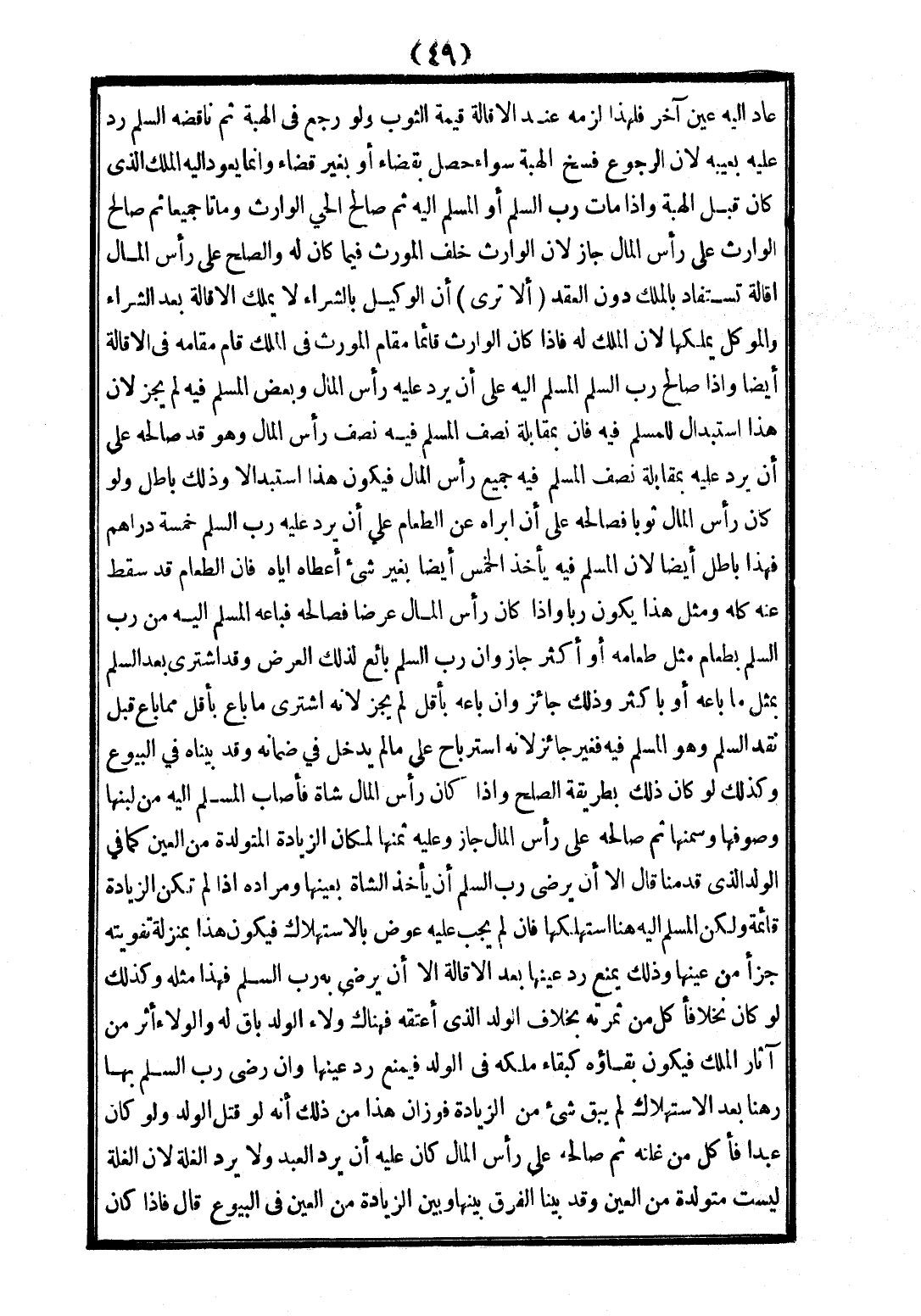 وَإِذَا مَاتَ رَبُّ السَّلَمِ أَوْ الْمُسْلَمُ إلَيْهِ، ثُمَّ صَالَحَ الْحَيُّ الْوَارِثَ وَمَاتَا جَمِيعًا، ثُمَّ صَالَحَ الْوَارِثُ عَلَى رَأْسِ الْمَالِ جَازَ؛ لِأَنَّ الْوَارِثَ خَلَفُ الْمُورِثِ فِيمَا كَانَ لَهُ وَالصُّلْحُ عَلَى رَأْسِ الْمَالِ إقَالَةٌ تُسْتَفَادُ بِالْمِلْكِ دُونَ الْعَقْدِ.