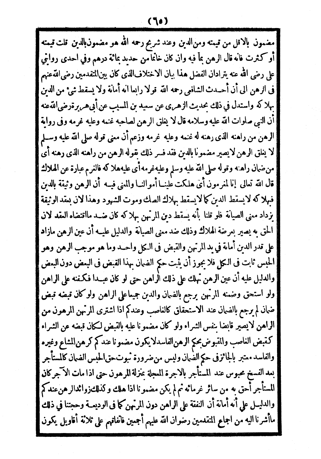 وَالدَّلِيلُ عَلَيْهِ: أَنَّ عَيْنَ الرَّهْنِ - مَا زَادَ عَلَى قَدْرِ الدَّيْنِ - أَمَانَةٌ فِي يَدِ الْمُرْتَهِنِ، وَالْقَبْضُ فِي الْكُلِّ وَاحِدٌ، وَمَا هُوَ مُوجَبُ الرَّهْنُ، وَهُوَ الْحَبْسُ ثَابِتٌ فِي الْكُلِّ، فَلَا يَجُوزُ أَنْ يَثْبُتَ حُكْمُ الضَّمَانِ بِهَذَا الْقَبْضِ فِي الْبَعْضِ دُونَ الْبَعْضِ.