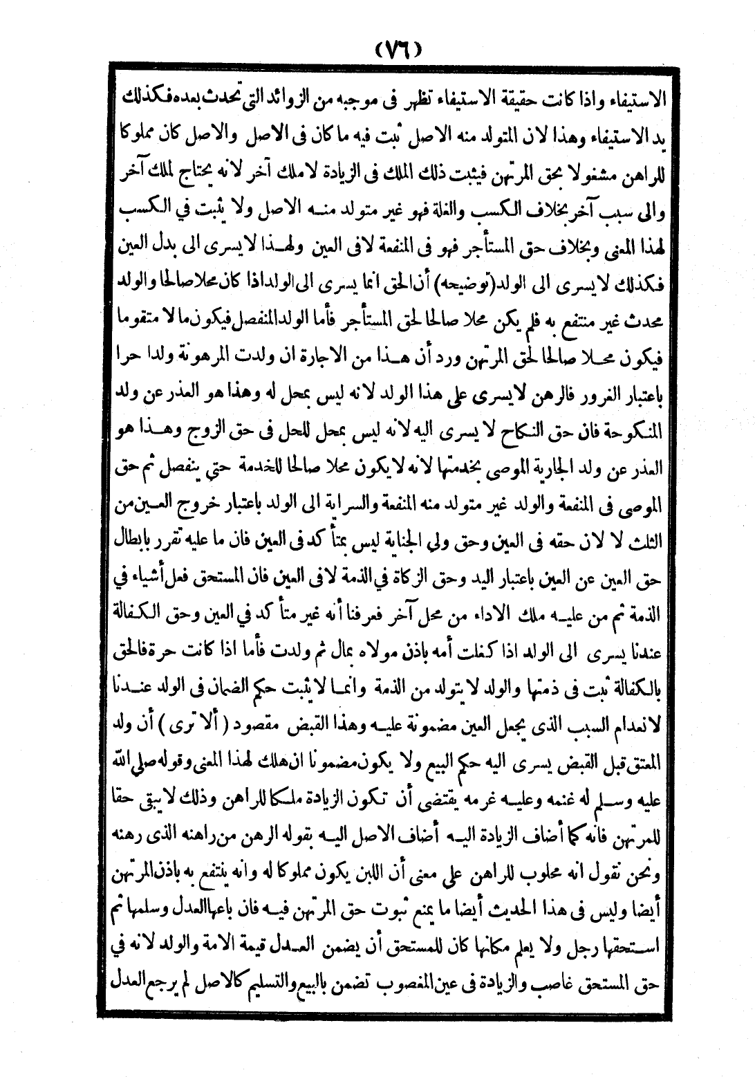 (تَوْضِيحُهُ): أَنَّ الْحَقَّ إنَّمَا يَسْرِي إلَى الْوَلَدِ إذَا كَانَ مَحِلًّا صَالِحًا، وَالْوَلَدُ مُحْدَثٌ غَيْرُ مُنْتَفِعٍ بِهِ فَلَمْ يَكُنْ مَحِلًّا صَالِحًا لِحَقِّ الْمُسْتَأْجِرِ، فَأَمَّا الْوَلَدُ الْمُنْفَصِلُ فَيَكُونُ مَالًا مُتَقَوِّمًا فَيَكُونُ مَحِلًّا صَالِحًا لِحَقِّ الْمُرْتَهِنِ، وَرَدَ أَنَّ هَذَا مِنْ الْإِجَارَةِ إنْ، وَلَدَتْ الْمَرْهُونَةُ وَلَدًا حُرًّا بِاعْتِبَارِ الْغُرُورِ فَالرَّهْنُ لَا يَسْرِي عَلَى هَذَا الْوَلَدِ؛ لِأَنَّهُ لَيْسَ بِمَحَلٍّ لَهُ، وَهَذَا هُوَ الْعُذْرُ عَنْ وَلَدِ الْمَنْكُوحَةِ فَإِنَّ حَقَّ النِّكَاحِ لَا يَسْرِي إلَيْهِ؛ لِأَنَّهُ لَيْسَ بِمَحِلٍّ لِلْحِلِّ فِي حَقِّ الزَّوْجِ، وَهَذَا هُوَ الْعُذْرُ عَنْ وَلَدِ الْجَارِيَةِ الْمُوصَى بِخِدْمَتِهَا؛ لِأَنَّهُ لَا يَكُونُ مَحِلًّا صَالِحًا لِلْخِدْمَةِ حَتَّى يَنْفَصِلَ، ثُمَّ حَقُّ الْمُوصَى فِي الْمَنْفَعَةِ، وَالْوَلَدُ غَيْرُ مُتَوَلَّدٍ مِنْهُ الْمَنْفَعَةُ، وَالسِّرَايَةُ إلَى الْوَلَدِ بِاعْتِبَارِ خُرُوجِ الْعَيْنِ مِنْ الثُّلُثِ لَا؛ لِأَنَّ حَقَّهُ فِي الْعَيْنِ، وَحَقُّ وَلِيِّ الْجِنَايَةِ لَيْسَ بِمُتَأَكَّدٍ فِي الْعَيْنِ فَإِنَّ مَا عَلَيْهِ تَقَرَّرَ بِإِبْطَالِ حَقِّ الْعَيْنِ عَنْ الْعَيْنِ بِاعْتِبَارِ الْيَدِ، وَحَقُّ الزَّكَاةِ فِي الذِّمَّةِ لَا فِي الْعَيْنِ فَإِنَّ الْمُسْتَحِقَّ فَعَلَ أَشْيَاءَ فِي الذِّمَّةِ ثُمَّ مَنْ عَلَيْهِ مِلْكُ الْأَدَاءِ مِنْ مَحِلٍّ آخَرَ، فَعَرَفْنَا أَنَّهُ غَيْرُ مُتَأَكَّدٍ فِي الْعَيْنِ، وَحَقُّ الْكَفَالَةِ عِنْدَنَا يَسْرِي إلَى الْوَلَدِ إذَا كُفِلَتْ أُمُّهُ بِإِذْنِ مَوْلَاهُ بِمَالٍ ثُمَّ وَلَدَتْ فَأَمَّا إذَا كَانَتْ حُرَّةً فَالْحَقُّ بِالْكَفَالَةِ ثَبَتَ فِي ذِمَّتِهَا، وَالْوَلَدُ لَا يُتَوَلَّدُ مِنْ الذِّمَّةِ، وَإِنَّمَا لَا يَثْبُتُ حُكْمُ الضَّمَانِ فِي الْوَلَدِ عِنْدَنَا؛ لِانْعِدَامِ السَّبَبِ الَّذِي يَجْعَلُ الْعَيْنِ مَضْمُونَةً عَلَيْهِ، وَهَذَا الْقَبْضُ مَقْصُودٌ.