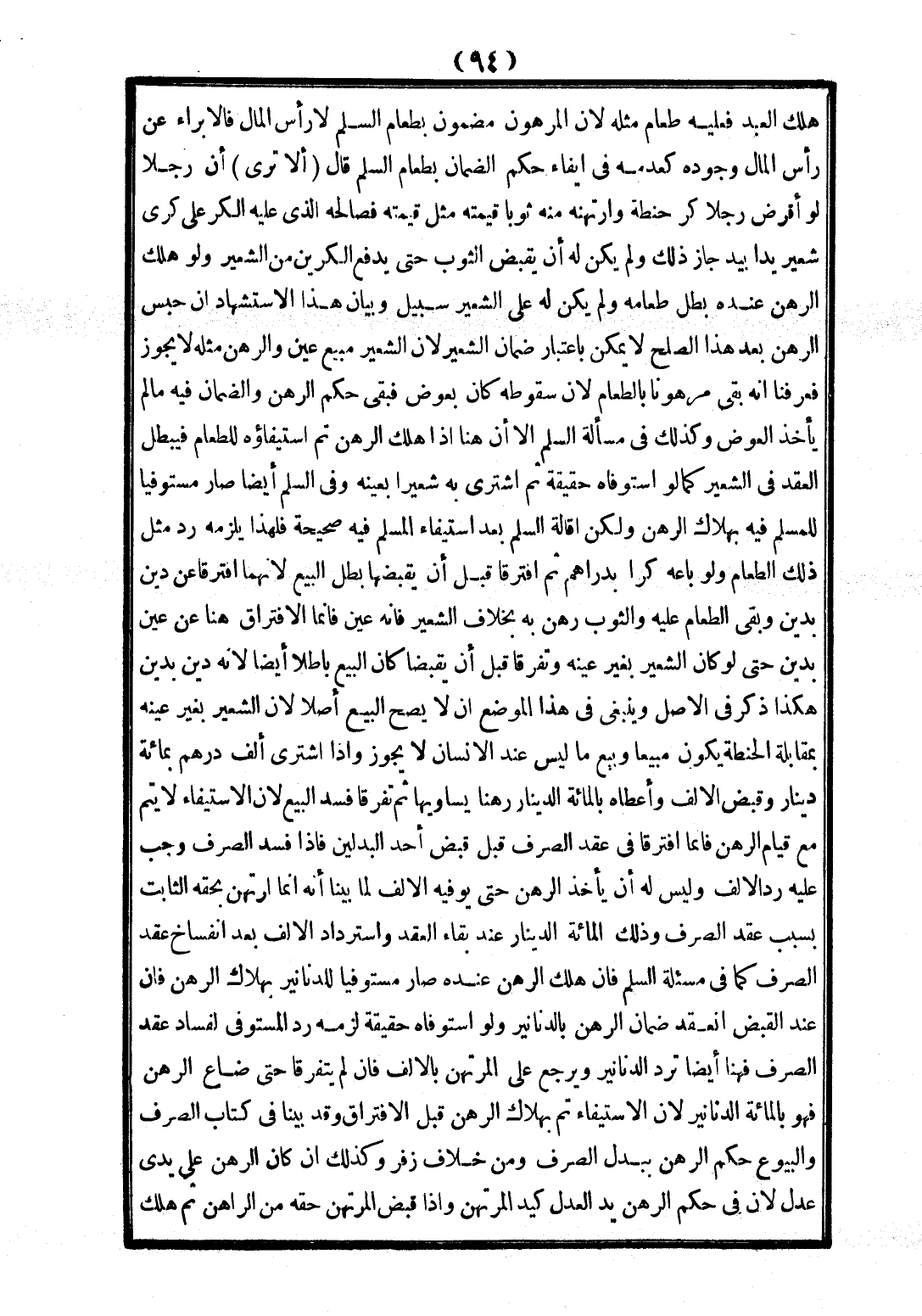 وَقَدْ بَيَّنَّا فِي كِتَابِ الصَّرْفِ، وَالْبُيُوعِ حُكْمَ الرَّهْنِ بِبَدَلِ الصَّرْفِ، وَمِنْ خِلَافِ زُفَرَ، وَكَذَلِكَ إنْ كَانَ الرَّهْنُ عَلَى يَدَيْ عَدْلٍ؛ لِأَنَّ فِي حُكْمِ الرَّهْنِ يَدُ الْعَدْلِ كَيَدِ الْمُرْتَهِنِ.
