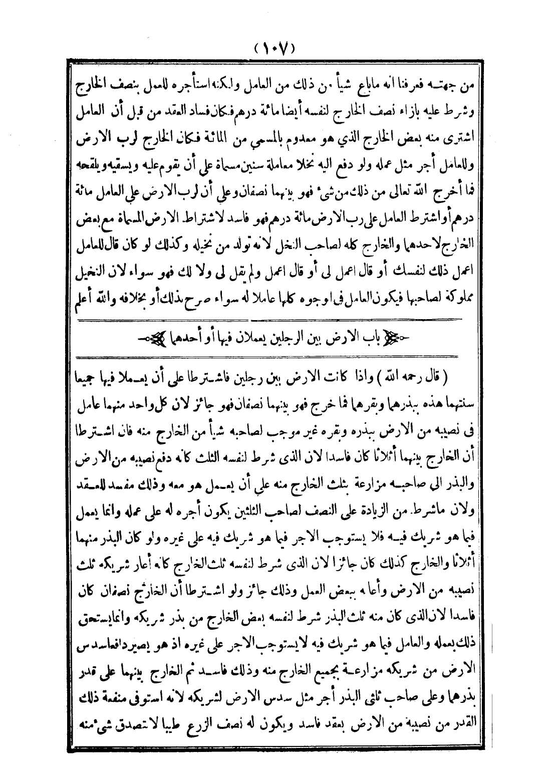 [بَابُ الْأَرْضِ بَيْنَ الرَّجُلَيْنِ يَعْمَلَانِ فِيهَا أَوْ أَحَدُهُمَا]