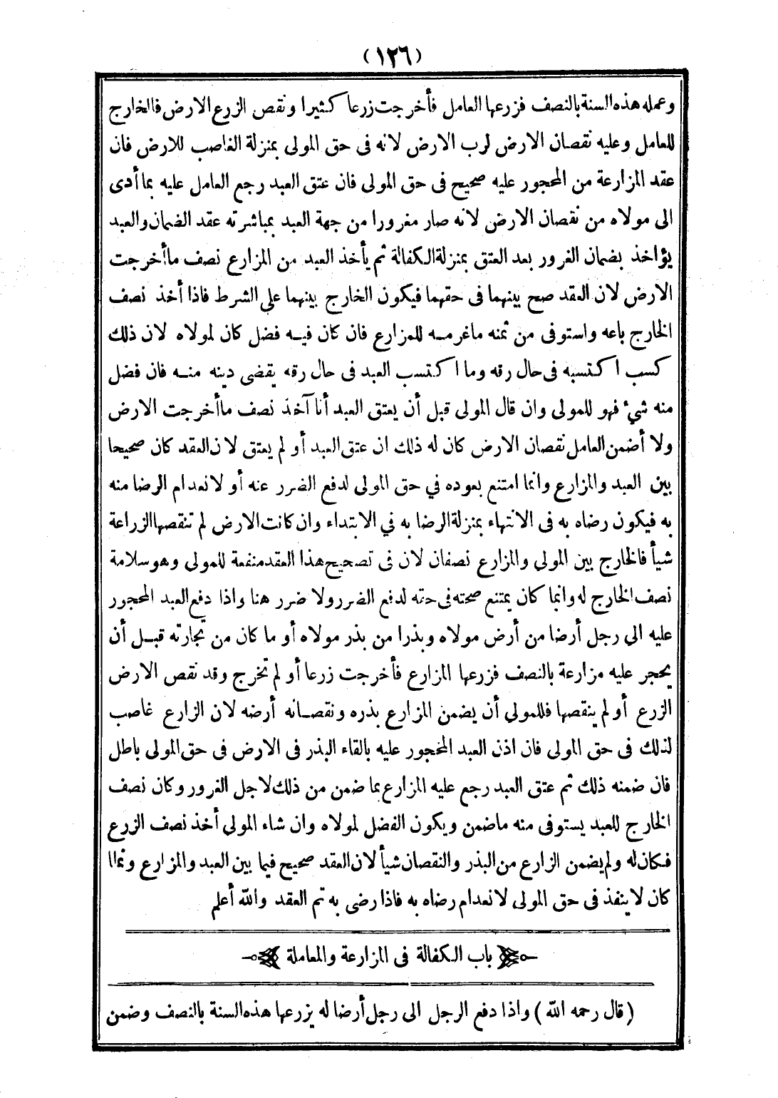 [بَابُ الْكَفَالَةِ فِي الْمُزَارَعَةِ وَالْمُعَامَلَةِ]
