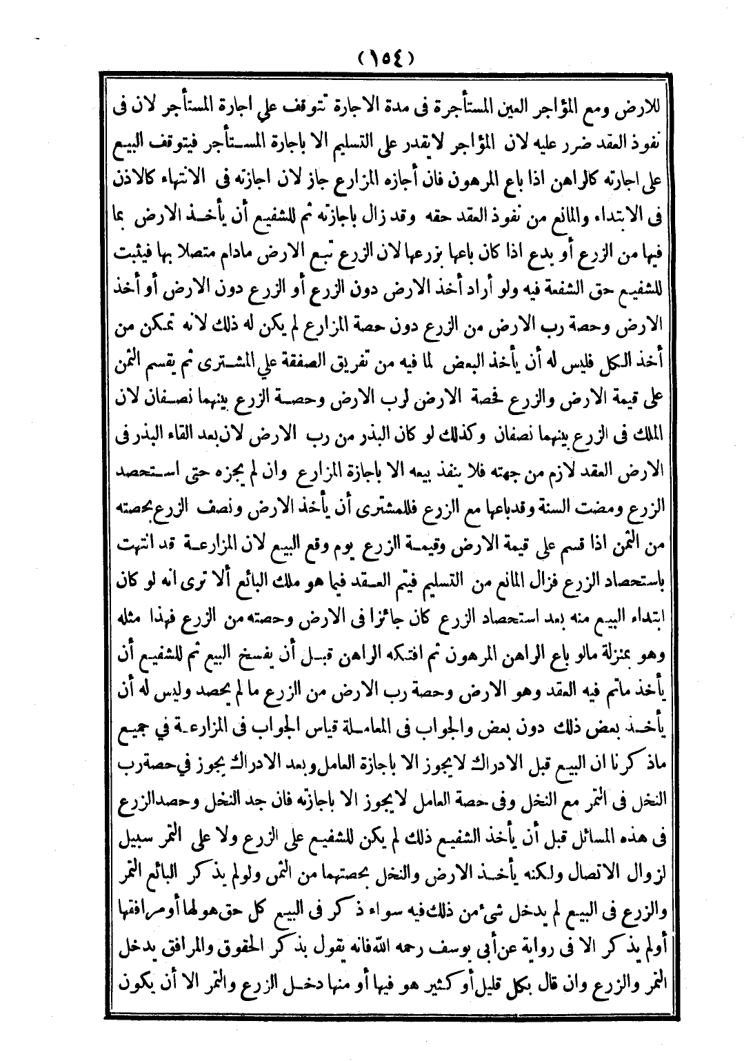 أَلَا تَرَى أَنَّهُ لَوْ كَانَ ابْتِدَاءُ الْبَيْعِ مِنْهُ بَعْدَ اسْتِحْصَادِ الزَّرْعِ كَانَ جَائِزًا فِي الْأَرْضِ وَحِصَّتِهِ مِنْ الزَّرْعِ؟ فَهَذَا مِثْلُهُ، وَهُوَ بِمَنْزِلَةِ مَا لَوْ بَاعَ الرَّاهِنُ الْمَرْهُونَ ثُمَّ افْتَكَّهُ الرَّاهِنُ قَبْلَ أَنْ يُفْسَخَ الْبَيْعُ، ثُمَّ لِلشَّفِيعِ أَنْ يَأْخُذَ مَا تَمَّ فِيهِ الْعَقْدُ وَهُوَ الْأَرْضُ وَحِصَّةُ رَبِّ الْأَرْضِ مِنْ الزَّرْعِ مَا لَمْ يُحْصَدْ، وَلَيْسَ لَهُ أَنْ يَأْخُذَ بَعْضَ ذَلِكَ دُونَ بَعْضٍ. وَالْجَوَابُ فِي الْمُعَامَلَةِ قِيَاسُ الْجَوَابِ فِي الْمُزَارَعَةِ فِي جَمِيعِ مَا ذَكَرْنَا أَنَّ الْبَيْعَ قَبْلَ الْإِدْرَاكِ لَا يَجُوزُ إلَّا بِإِجَازَةِ الْعَامِلِ، وَبَعْدَ الْإِدْرَاكِ يَجُوزُ فِي حِصَّةِ رَبِّ النَّخْلِ فِي التَّمْرِ مَعَ النَّخْلِ، وَفِي حِصَّةِ الْعَامِلِ لَا يَجُوزُ إلَّا بِإِجَازَتِهِ، فَإِنْ جُدَّ النَّخْلُ وَحُصِدَ الزَّرْعُ فِي هَذِهِ الْمَسَائِلِ قَبْلَ أَنْ يَأْخُذَ الشَّفِيعُ ذَلِكَ - لَمْ يَكُنْ لِلشَّفِيعِ عَلَى الزَّرْعِ وَلَا عَلَى التَّمْرِ سَبِيلٌ لِزَوَالِ الِاتِّصَالِ، وَلَكِنَّهُ يَأْخُذُ الْأَرْضَ وَالنَّخْلَ بِحِصَّتِهِمَا مِنْ الثَّمَنِ، وَلَوْ لَمْ يَذْكُرْ الْبَائِعُ التَّمْرَ وَالزَّرْعَ فِي الْبَيْعِ لَمْ يَدْخُلْ شَيْءٌ مِنْ ذَلِكَ فِيهِ، سَوَاءٌ ذَكَرَ فِي الْبَيْعِ كُلَّ حَقٍّ هُوَ لَهَا أَوْ مُرَافِقُهَا أَوْ لَمْ يَذْكُرْ إلَّا فِي رِوَايَةٍ عَنْ أَبِي يُوسُفَ - رَحِمَهُ اللَّهُ - فَإِنَّهُ يَقُولُ: بِذِكْرِ الْحُقُوقِ وَالْمَرَافِقِ يَدْخُلُ التَّمْرُ وَالزَّرْعُ. وَإِنْ قَالَ بِكُلِّ قَلِيلٍ أَوْ كَثِيرٍ هُوَ فِيهَا أَوْ مِنْهَا - دَخَلَ الزَّرْعُ وَالتَّمْرُ إلَّا أَنْ يَكُونَ