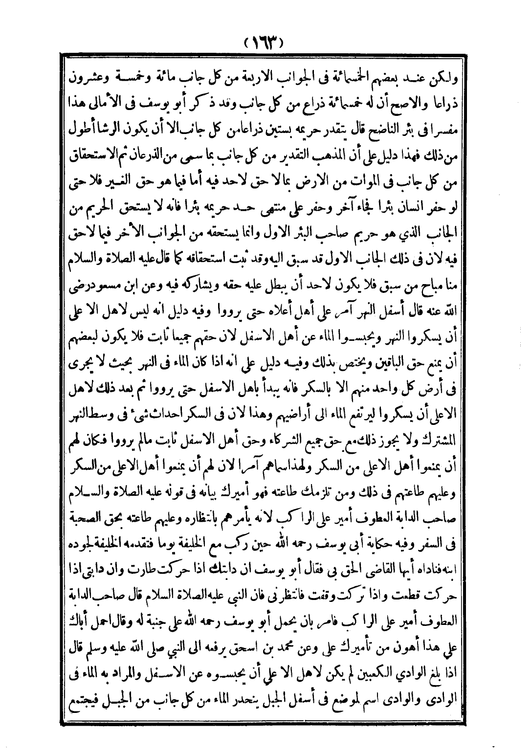 وَعَنْ ابْنِ مَسْعُودٍ - رَضِيَ اللَّهُ عَنْهُ - قَالَ أَسْفَلُ النَّهْرِ آمِرٌ عَلَى أَهْلِ أَعْلَاهُ حَتَّى يَرْوُوا.