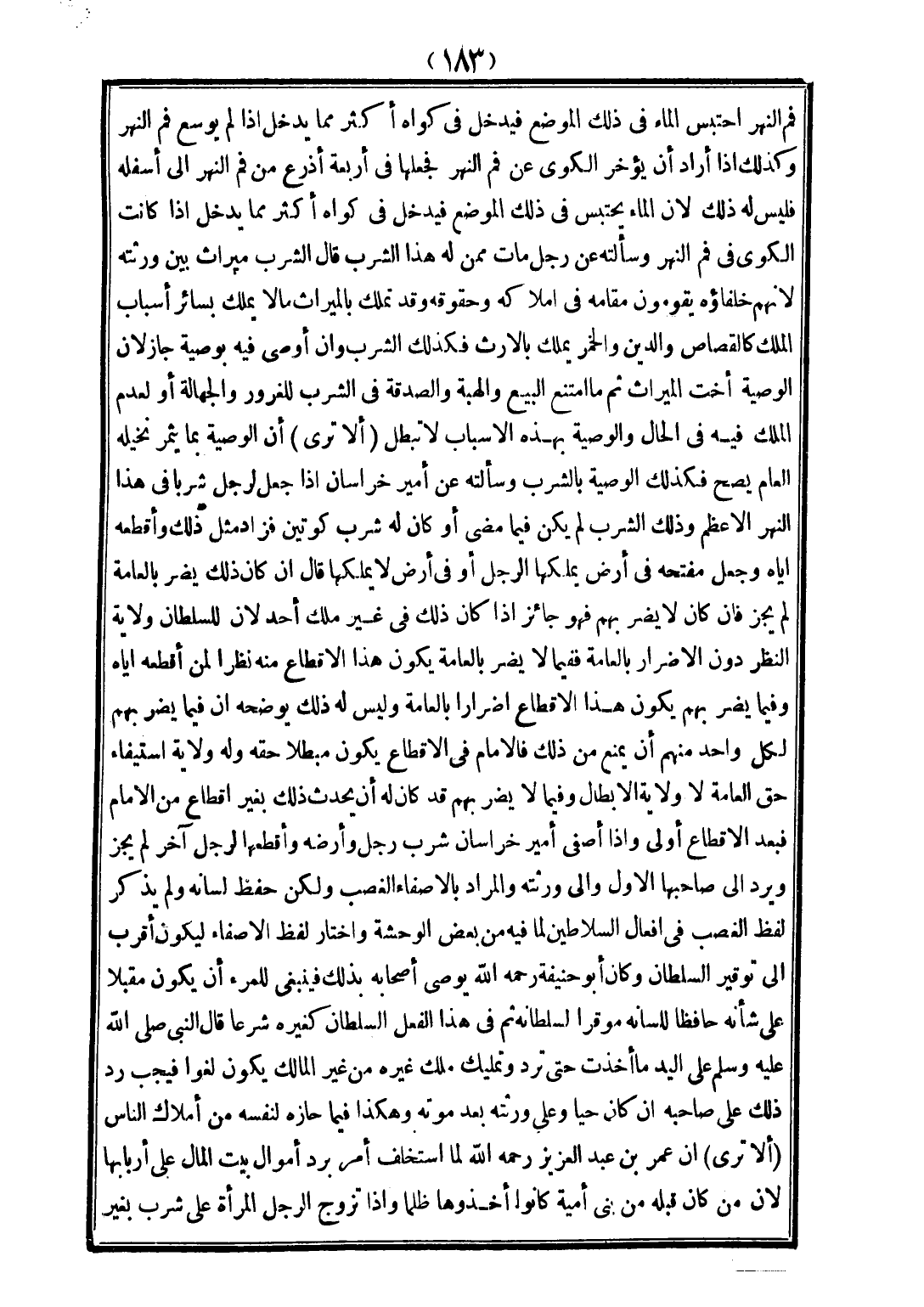 (أَلَا تَرَى) أَنَّ عُمَرَ بْنَ عَبْدِ الْعَزِيزِ - رَحِمَهُ اللَّهُ - لَمَّا اسْتَخْلَفَ أَمَرَ بِرَدِّ أَمْوَالِ بَيْتِ الْمَالِ عَلَى أَرْبَابِهَا؛ لِأَنَّ مَنْ كَانَ قَبْلَهُ مِنْ بَنِي أُمَيَّةَ كَانُوا أَخَذُوهَا ظُلْمًا.