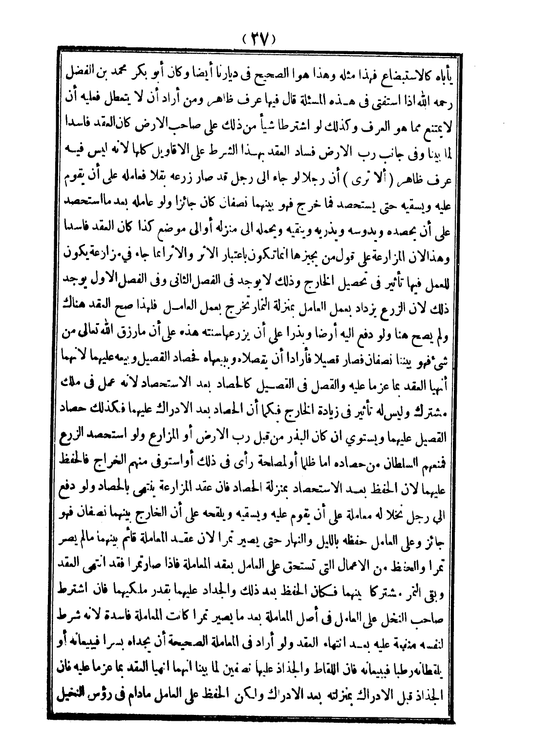 يَأْبَاهُ كَالِاسْتِبْضَاعِ فَهَذَا مِثْلُهُ وَهَذَا هُوَ الصَّحِيحُ فِي دِيَارِنَا أَيْضًا. وَكَانَ أَبُو بَكْرٍ مُحَمَّدُ بْنُ الْفَضْلِ - رَحِمَهُ اللَّهُ - إذَا اُسْتُفْتِيَ فِي هَذِهِ الْمَسْأَلَةِ قَالَ: فِيهَا عُرْفٌ ظَاهِرٌ، وَمَنْ أَرَادَ أَنْ لَا يَتَعَطَّلَ فَعَلَيْهِ أَنْ لَا يَمْتَنِعَ مِمَّا هُوَ الْعُرْفُ، وَكَذَلِكَ لَوْ اشْتَرَطَا شَيْئًا مِنْ ذَلِكَ عَلَى صَاحِبِ الْأَرْضِ كَانَ الْعَقْدُ فَاسِدًا لِمَا بَيَّنَّا، وَفِي جَانِبِ رَبِّ الْأَرْضِ فَسَادُ الْعَقْدِ بِهَذَا الشَّرْطِ عَلَى الْأَقَاوِيلِ كُلِّهَا؛ لِأَنَّهُ لَيْسَ فِيهِ عُرْفٌ ظَاهِرٌ.