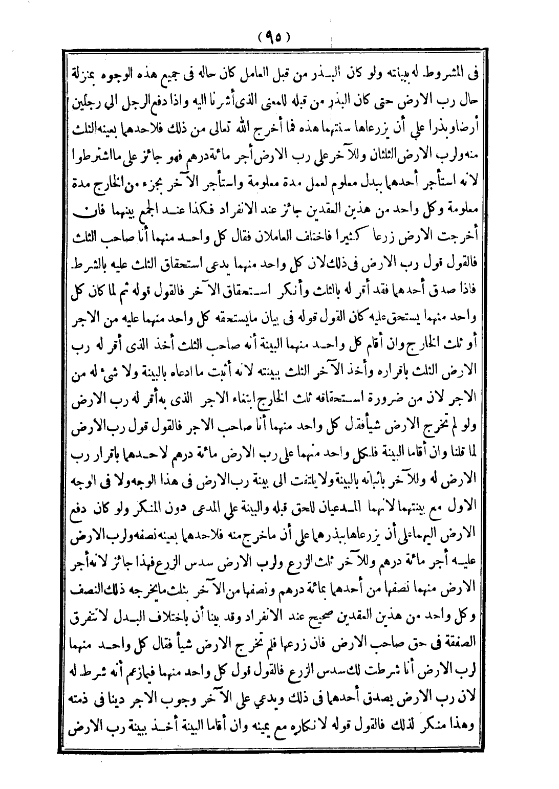 فِي الْمَشْرُوطِ لَهُ بِبَيِّنَتِهِ، وَلَوْ كَانَ الْبَذْرُ مِنْ قِبَلِ الْعَامِلِ كَانَ حَالُهُ فِي جَمِيعِ هَذِهِ الْوُجُوهِ بِمَنْزِلَةِ حَالِ رَبِّ الْأَرْضِ حَتَّى كَانَ الْبَذْرُ مِنْ قِبَلِهِ لِلْمَعْنَى الَّذِي أَشَرْنَا إلَيْهِ