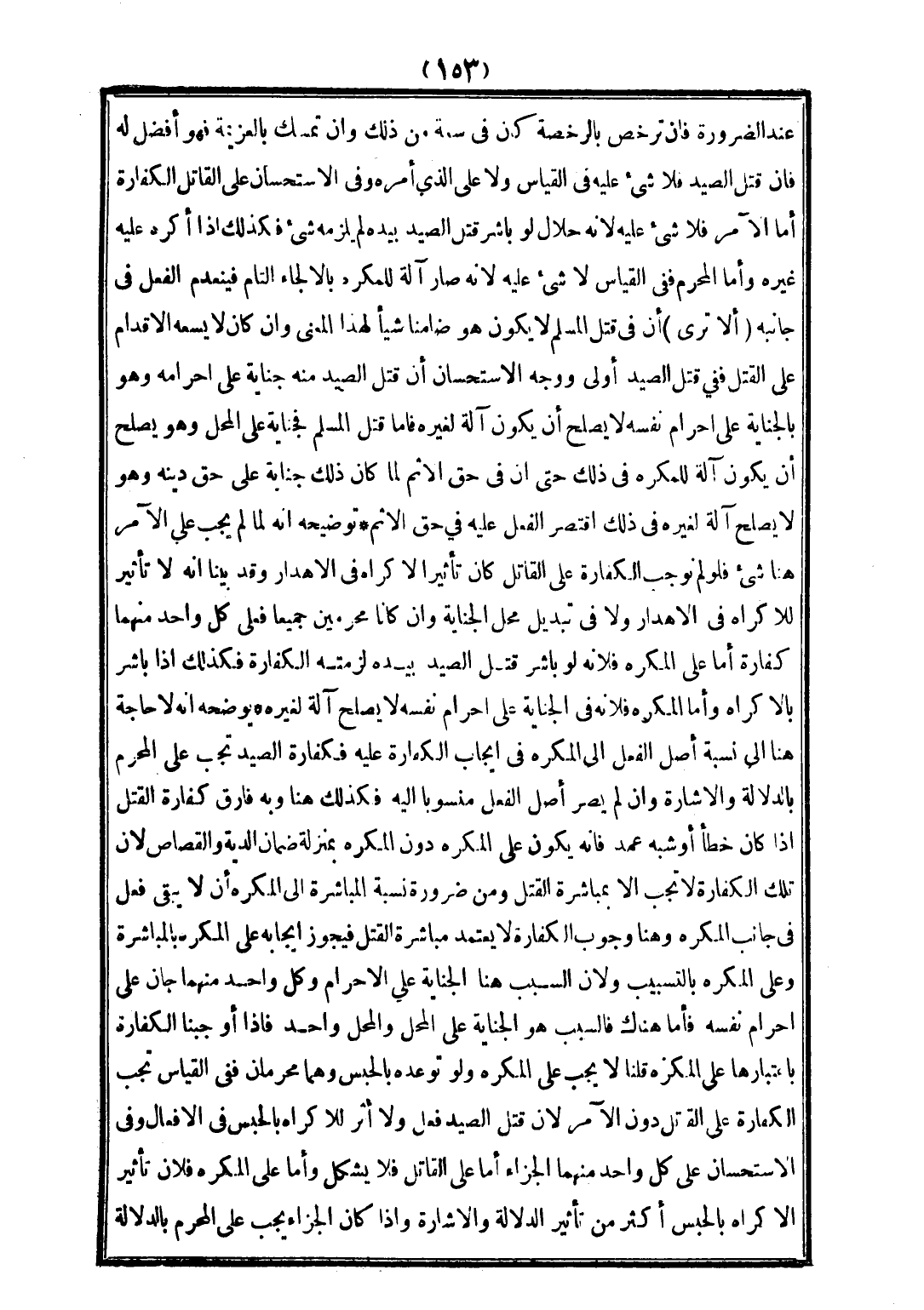 يُوَضِّحُهُ أَنَّهُ لَا حَاجَةَ هُنَا إلَى نِسْبَةِ أَصْلِ الْفِعْلِ إلَى الْمُكْرِهِ فِي إيجَابِ الْكَفَّارَةِ عَلَيْهِ، فَكَفَّارَةُ الصَّيْدِ تَجِبُ عَلَى الْمُحْرِمِ بِالدَّلَالَةِ، وَالْإِشَارَةِ، وَإِنْ لَمْ يَصِرْ أَصْلُ الْفِعْلِ مَنْسُوبًا إلَيْهِ، فَكَذَلِكَ هُنَا، وَبِهِ فَارَقَ كَفَّارَةَ الْقَتْلِ إذَا كَانَ خَطَأً، أَوْ شِبْهَ عَمْدٍ، فَإِنَّهُ يَكُونُ عَلَى الْمُكْرَهِ دُونَ الْمُكْرِهِ بِمَنْزِلَةِ ضَمَانِ الدِّيَةِ، وَالْقِصَاصِ؛ لِأَنَّ تِلْكَ الْكَفَّارَةَ لَا تَجِبُ إلَّا بِمُبَاشَرَةِ الْقَتْلِ، وَمِنْ ضَرُورَةِ نِسْبَةِ الْمُبَاشَرَةِ إلَى الْمُكْرَهِ أَنْ لَا يَبْقَى فِعْلٌ فِي جَانِبِ الْمُكْرِهِ، وَهُنَا وُجُوبُ الْكَفَّارَةِ لَا يَعْتَمِدُ مُبَاشَرَةَ الْقَتْلِ، فَيَجُوزُ إيجَابُهُ عَلَى الْمُكْرَهِ بِالْمُبَاشَرَةِ وَعَلَى الْمُكْرِهِ بِالتَّسْبِيبِ، وَلِأَنَّ السَّبَبَ هُنَا الْجِنَايَةُ عَلَى الْإِحْرَامِ، وَكُلُّ وَاحِدٍ مِنْهُمَا جَانٍ عَلَى إحْرَامِ نَفْسِهِ، فَأَمَّا هُنَاكَ، فَالسَّبَبُ هُوَ الْجِنَايَةُ عَلَى الْمَحَلِّ، وَالْمَحَلُّ وَاحِدٌ، فَإِذَا أَوْجَبْنَا الْكَفَّارَةَ بِاعْتِبَارِهَا عَلَى الْمُكْرَهِ قُلْنَا: لَا يَجِبُ عَلَى الْمُكْرِهِ، وَلَوْ تَوَعَّدَهُ بِالْحَبْسِ، وَهُمَا مُحْرِمَانِ، فَفِي الْقِيَاسِ تَجِبُ الْكَفَّارَةُ عَلَى الْقَاتِلِ دُونَ الْآمِرِ؛ لِأَنَّ قَتْلَ الصَّيْدِ فِعْلٌ، وَلَا أَثَرَ لِلْإِكْرَاهِ بِالْحَبْسِ فِي الْأَفْعَالِ، وَفِي الِاسْتِحْسَانِ عَلَى كُلِّ وَاحِدٍ مِنْهُمَا الْجَزَاءُ أَمَّا عَلَى الْقَاتِلِ، فَلَا يَشْكُلُ، وَأَمَّا عَلَى الْمُكْرَهِ فَلِأَنَّ تَأْثِيرَ الْإِكْرَاهِ بِالْحَبْسِ أَكْثَرُ مِنْ تَأْثِيرِ الدَّلَالَةِ، وَالْإِشَارَةِ، وَإِذَا كَانَ الْجَزَاءُ يَجِبُ عَلَى الْمُحْرِمِ بِالدَّلَالَةِ
