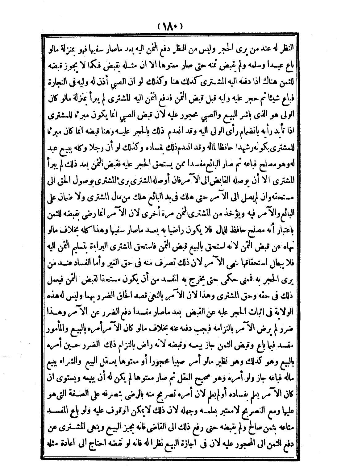 النَّظَرِ لَهُ عِنْدَ مَنْ يَرَى الْحَجْرَ، وَلَيْسَ مِنْ النَّظَرِ دَفْعُ الثَّمَنِ إلَيْهِ بَعْدَمَا صَارَ سَفِيهًا، فَهُوَ بِمَنْزِلَةِ مَا لَوْ بَاعَ عَبْدًا، وَسَلَّمَهُ وَلَمْ يَقْبِضْ ثَمَنَهُ حَتَّى صَارَ مَعْتُوهًا إلَّا أَنَّ مِثْلَهُ يُقْبَضُ، فَكَمَا لَا يَجُوزُ قَبْضُهُ لِلثَّمَنِ هُنَاكَ إذَا دَفَعَهُ إلَيْهِ الْمُشْتَرِي كَذَلِكَ هُنَا.