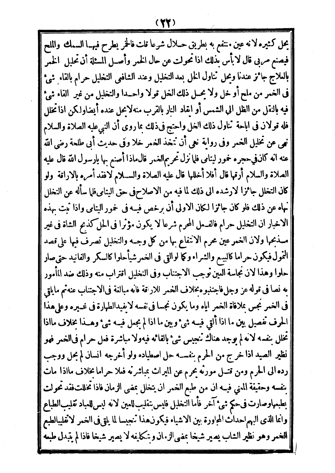 وَلَوْ كَانَ التَّخَلُّلُ جَائِزًا لَأَرْشَدَهُ إلَى ذَلِكَ لِمَا فِيهِ مِنْ الْإِصْلَاحِ فِي حَقِّ الْيَتَامَى، فَلَمَّا سَأَلَهُ عَنْ التَّخَلُّلِ نَهَاهُ عَنْ ذَلِكَ، فَلَوْ كَانَ جَائِزًا لَكَانَ الْأَوْلَى أَنْ يُرَخِّصَ فِيهِ فِي خُمُورِ الْيَتَامَى، وَإِذَا ثَبَتَ بِهَذِهِ الْأَخْبَارِ أَنَّ التَّخْلِيلَ حَرَامٌ، فَالْفِعْلُ الْمُحَرَّمُ شَرْعًا لَا يَكُونُ مُؤَثِّرًا فِي الْحِلِّ كَذَبْحِ الشَّاةِ فِي غَيْرِ مَذْبَحِهَا؛ وَلِأَنَّ الْخَمْرَ عَيْنٌ مُحَرَّمُ الِانْتِفَاعِ بِهَا مِنْ كُلِّ وَجْهٍ، وَالتَّخْلِيلُ تَصَرُّفٌ فِيهَا عَلَى قَصْدِ التَّمَوُّلِ، فَيَكُونُ حَرَامًا كَالْبَيْعِ، وَالشِّرَاءِ، وَكَمَا لَوْ أَلْقَى فِي الْخَمْرِ شَيْئًا حُلْوًا كَالسُّكَّرِ، وَالْفَانِيذِ حَتَّى صَارَ حُلْوًا، وَهَذَا؛ لِأَنَّ نَجَاسَةَ الْعَيْنِ تُوجِبُ الِاجْتِنَابَ، وَفِي التَّخْلِيلِ اقْتِرَابٌ مِنْهُ، وَذَلِكَ ضِدُّ الْمَأْمُورِ بِهِ نَصًّا فِي قَوْلِهِ عَزَّ وَجَلَّ {، فَاجْتَنِبُوهُ} [المائدة: 90] بِخِلَافِ الْخَمْرِ لِلْإِرَاقَةِ، فَإِنَّهُ مُبَالَغَةٌ فِي الِاجْتِنَابِ عَنْهُ، ثُمَّ مَا يُلْقَى فِي الْخَمْرِ نَجِسٌ بِمُلَاقَاةِ الْخَمْرِ إيَّاهُ، وَمَا يَكُونُ نَجِسًا فِي نَفْسِهِ لَا يُفِيدُ الطَّهَارَةَ فِي غَيْرِهِ، وَعَلَى هَذَا الْحَرْفِ تَفْصِيلٌ بَيْنَ مَا إذَا أُلْقِيَ فِيهِ شَيْءٌ، وَبَيْنَ مَا إذَا لَمْ يُجْعَلْ فِيهِ شَيْءٌ، وَهَذَا بِخِلَافِ مَا إذَا تَخَلَّلَ بِنَفْسِهِ؛ لِأَنَّهُ لَمْ يُوجَدْ هُنَاكَ تَنْجِيسُ شَيْءٍ بِإِلْقَائِهِ فِيهِ، وَلَا مُبَاشَرَةُ فِعْلٍ حَرَامٍ فِي الْخَمْرِ، فَهُوَ نَظِيرُ الصَّيْدِ إذَا خَرَجَ مِنْ الْحَرَمِ بِنَفْسِهِ حَلَّ اصْطِيَادُهُ.