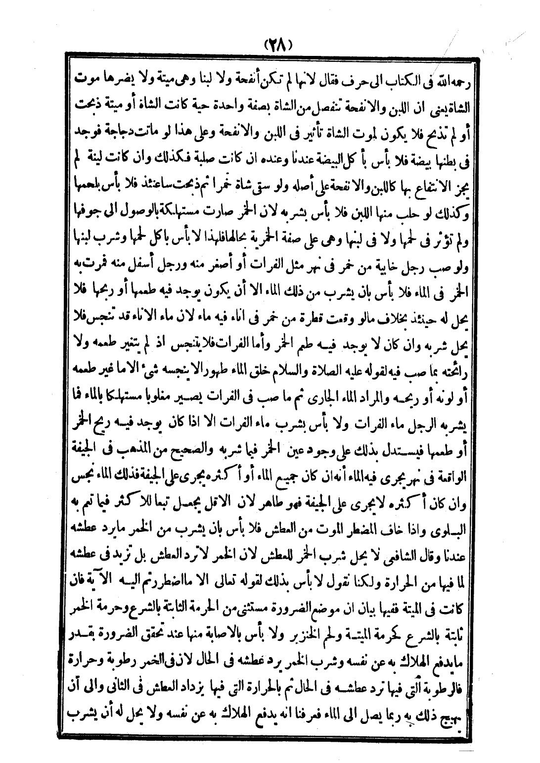 وَلَوْ سَقَى شَاةً خَمْرًا ثُمَّ ذُبِحَتْ سَاعَتَئِذٍ، فَلَا بَأْسَ بِلَحْمِهَا، وَكَذَلِكَ لَوْ حَلَبَ مِنْهَا اللَّبَنَ، فَلَا بَأْسَ بِشُرْبِهِ؛ لِأَنَّ الْخَمْرَ صَارَتْ مُسْتَهْلَكَةً بِالْوُصُولِ إلَى جَوْفِهَا، وَلَمْ تُؤَثِّرْ فِي لَحْمِهَا، وَلَا فِي لَبَنِهَا، وَهِيَ عَلَى صِفَةِ الْخَمْرِيَّةِ بِحَالِهَا، فَلِهَذَا لَا بَأْسَ بِأَكْلِ لَحْمِهَا، وَشُرْبِ لَبَنِهَا
