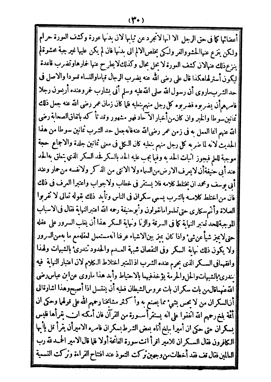 وَالْأَصْلُ فِي حَدِّ الشُّرْبِ مَا رُوِيَ «أَنَّ رَسُولَ اللَّهِ - صَلَّى اللَّهُ عَلَيْهِ وَسَلَّمَ - أُتِيَ بِشَارِبِ خَمْرٍ، وَعِنْدَهُ أَرْبَعُونَ رَجُلًا، فَأَمَرَهُمْ أَنْ يَضْرِبُوهُ، فَضَرَبُوهُ، كُلُّ رَجُلٍ مِنْهُمْ بِنَعْلَيْهِ»، فَلَمَّا كَانَ زَمَانُ عُمَرَ - رَضِيَ اللَّهُ عَنْهُ - جَعَلَ ذَلِكَ ثَمَانِينَ سَوْطًا، وَالْخَبَرُ، وَإِنْ كَانَ مِنْ أَخْبَارِ الْآحَادِ، فَهُوَ مَشْهُورٌ، وَقَدْ تَأَكَّدَ بِاتِّفَاقِ الصَّحَابَةِ - رَضِيَ اللَّهُ عَنْهُمْ - إنَّمَا الْعَمَلُ بِهِ فِي زَمَنِ عُمَرَ - رَضِيَ اللَّهُ عَنْهُ -، فَإِنَّهُ جَعَلَ حَدَّ الشُّرْبِ ثَمَانِينَ سَوْطًا مِنْ هَذَا الْحَدِيثِ؛ لِأَنَّهُ لَمَّا ضَرَبَهُ كُلُّ رَجُلٍ مِنْهُمْ بِنَعْلَيْهِ كَانَ الْكُلُّ فِي مَعْنَى ثَمَانِينَ جَلْدَةً، وَالْإِجْمَاعُ حُجَّةٌ مُوجِبَةٌ لِلْعِلْمِ، فَيَجُوزُ إثْبَاتُ الْحَدِّ بِهِ، وَفِيمَا يَجِبُ عَلَيْهِ الْحَدُّ بِالسُّكْرِ، فَحَدُّ السُّكْرِ الَّذِي يَتَعَلَّقُ بِهِ الْحَدُّ عِنْدَ أَبِي حَنِيفَةَ أَنْ لَا يَعْرِفَ الْأَرْضَ مِنْ السَّمَاءِ، وَلَا الْأُنْثَى مِنْ الذَّكَرِ، وَلَا نَفْسَهُ مِنْ حِمَارٍ، وَعِنْدَ أَبِي يُوسُفَ وَمُحَمَّدٍ أَنْ يَخْتَلِطَ كَلَامُهُ، فَلَا يَسْتَقِرُّ فِي خِطَابٍ، وَلَا جَوَابٍ، وَاعْتُبِرَ الْعُرْفُ فِي ذَلِكَ، فَإِنَّ مَنْ اخْتَلَطَ كَلَامُهُ بِالشُّرْبِ يُسَمَّى سَكْرَانَ فِي النَّاسِ، وَتَأَيَّدَ ذَلِكَ بِقَوْلِهِ تَعَالَى {لَا تَقْرَبُوا الصَّلَاةَ وَأَنْتُمْ سُكَارَى حَتَّى تَعْلَمُوا مَا تَقُولُونَ} [النساء: 43] وَأَبُو حَنِيفَةَ - رَحِمَهُ اللَّهُ - اعْتَبَرَ النِّهَايَةَ، فَقَالَ فِي الْأَسْبَابِ الْمُوجِبَةِ لِلْحَدِّ تُعْتَبَرُ النِّهَايَةُ كَمَا فِي السَّرِقَةِ، وَالزِّنَا، وَنِهَايَةُ السُّكْرِ هَذَا أَنْ يَغْلِبَ السُّرُورُ عَلَى عَقْلِهِ حَتَّى لَا يُمَيِّزَ شَيْئًا عَنْ شَيْءٍ.