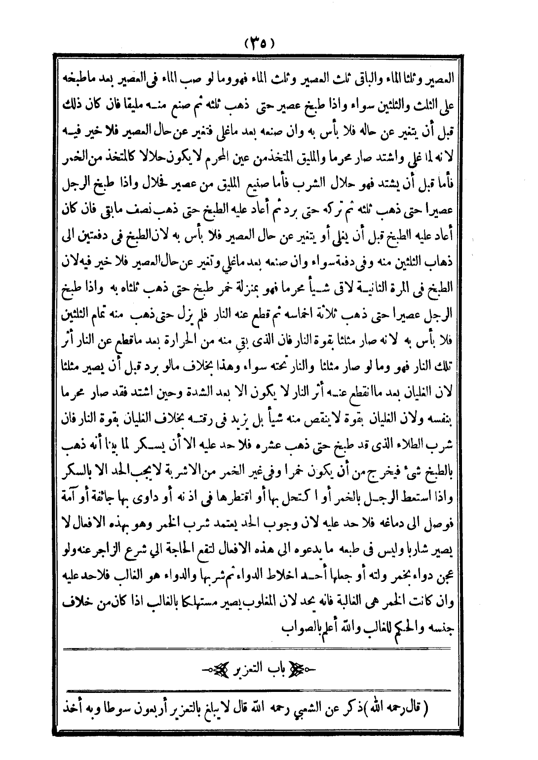 (قَالَ - رَحِمَهُ اللَّهُ -) ذُكِرَ عَنْ الشَّعْبِيِّ - رَحِمَهُ اللَّهُ - قَالَ: لَا يُبْلَغُ بِالتَّعْزِيرِ أَرْبَعُونَ سَوْطًا، وَبِهِ أَخَذَ