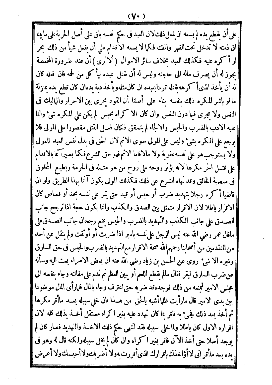 ، وَلَوْ أَنَّ قَاضِيًا أَكْرَهَ رَجُلًا بِتَهْدِيدِ ضَرْبٍ، أَوْ حَبْسٍ، أَوْ قَيْدٍ حَتَّى يُقِرَّ عَلَى نَفْسِهِ بِحَدٍّ، أَوْ قِصَاصٍ كَانَ الْإِقْرَارُ بَاطِلًا؛ لِأَنَّ الْإِقْرَارَ مُتَمَثِّلٌ بَيْنَ الصِّدْقِ، وَالْكَذِبِ، وَإِنَّمَا يَكُونُ حُجَّةً إذَا تَرَجَّحَ جَانِبُ الصِّدْقِ عَلَى جَانِبِ الْكَذِبِ، وَالتَّهْدِيدُ بِالضَّرْبِ، وَالْحَبْسِ يَمْنَعُ رُجْحَانَ جَانِبِ الصِّدْقِ عَلَى مَا قَالَ عُمَرُ - رَضِيَ اللَّهُ عَنْهُ -: لَيْسَ الرَّجُلُ عَلَى نَفْسِهِ بِأَمِينٍ إذَا ضَرَبْتَ أَوْ أَوْثَقْتَ، وَلَمْ يُنْقَلْ عَنْ أَحَدٍ مِنْ الْمُتَقَدِّمِينَ مِنْ أَصْحَابِنَا - رَحِمَهُمُ اللَّهُ - صِحَّةُ الْإِقْرَارِ مَعَ التَّهْدِيدِ بِالضَّرْبِ، وَالْحَبْسِ فِي حَقِّ السَّارِقِ، وَغَيْرِهِ إلَّا شَيْءٌ رُوِيَ عَنْ الْحَسَنِ بْنِ زِيَادٍ - رَضِيَ اللَّهُ عَنْهُ - أَنَّ بَعْضَ الْأُمَرَاءِ بَعَثَ إلَيْهِ، وَسَأَلَهُ عَنْ ضَرْبِ السَّارِقِ لِيُقِرَّ، فَقَالَ مَا لَمْ يَقْطَعْ اللَّحْمَ أَوْ يُبِينَ الْعَظْمَ، ثُمَّ نَدِمَ عَلَى مَقَالَتِهِ، وَجَاءَ بِنَفْسِهِ إلَى مَجْلِسِ الْأَمِيرِ لِيَمْنَعَهُ مِنْ ذَلِكَ، فَوَجَدَهُ قَدْ ضَرَبَهُ حَتَّى اعْتَرَفَ، وَجَاءَ بِالْمَالِ، فَلَمَّا رَأَى الْمَالَ مَوْضُوعًا بَيْنَ يَدَيْ الْأَمِيرِ قَالَ: مَا رَأَيْت ظُلْمًا أَشْبَهَ بِالْحَقِّ مِنْ هَذَا، فَإِنْ خُلِّيَ سَبِيلُهُ بَعْدَ مَا أَقَرَّ مُكْرَهًا، ثُمَّ أُخِذَ بَعْدَ ذَلِكَ، فَجِيءَ بِهِ، فَأَقَرَّ بِمَا كَانَ تَهَدَّدَ عَلَيْهِ بِغَيْرِ إكْرَاهٍ مُسْتَقِلٍّ أُخِذَ بِذَلِكَ كُلِّهِ؛ لِأَنَّ إقْرَارَهُ الْأَوَّلَ كَانَ بَاطِلًا، وَلَمَّا خُلِّيَ سَبِيلُهُ، فَقَدْ انْتَهَى حُكْمُ ذَلِكَ الْأَخْذِ، وَالتَّهْدِيدِ، فَصَارَ كَأَنْ لَمْ يُوجَدْ أَصْلًا حَتَّى أُخِذَ الْآنَ فَأَقَرَّ بِغَيْرِ إكْرَاهٍ، وَإِنْ كَانَ لَمْ يُخْلَ سَبِيلُهُ، وَلَكِنَّهُ قَالَ: لَهُ، وَهُوَ فِي يَدِهِ بَعْدَمَا أَقَرَّ إنِّي لَا أُؤَاخِذُكَ بِإِقْرَارِك الَّذِي أَقْرَرْت بِهِ، وَلَا أَضْرِبُك، وَلَا أَحْبِسُك، وَلَا أَعْرِضُ