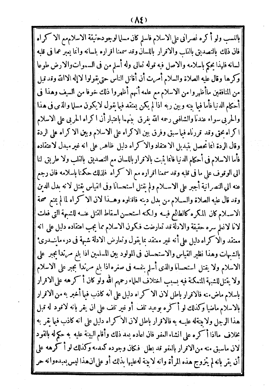 ، وَلَوْ أَكْرَهَ نَصْرَانِيًّا عَلَى الْإِسْلَامِ، فَأَسْلَمَ كَانَ مُسْلِمًا لِوُجُودِ حَقِيقَةِ الْإِسْلَامِ مَعَ الْإِكْرَاهِ، فَإِنَّ ذَلِكَ بِالتَّصْدِيقِ بِالْقَلْبِ، وَالْإِقْرَارِ بِاللِّسَانِ، وَقَدْ سَمِعْنَا إقْرَارَهُ بِلِسَانِهِ، وَإِنَّمَا يُعَبِّرُ عَمَّا فِي قَلْبِهِ لِسَانُهُ، فَلِهَذَا يُحْكَمُ بِإِسْلَامِهِ، وَالْأَصْلُ فِيهِ قَوْله تَعَالَى {وَلَهُ أَسْلَمَ مَنْ فِي السَّماَوَاتِ وَالْأَرْضِ طَوْعًا وَكَرْهًا} [آل عمران: 83] وَقَالَ - عَلَيْهِ الصَّلَاةُ وَالسَّلَامُ - «أُمِرْتُ أَنْ أُقَاتِلَ النَّاسَ حَتَّى يَقُولُوا لَا إلَهَ إلَّا اللَّهُ»، وَقَدْ قَبِلَ مِنْ الْمُنَافِقِينَ مَا أَظْهَرُوا مِنْ الْإِسْلَامِ مَعَ عِلْمِهِ أَنَّهُمْ أَظْهَرُوا ذَلِكَ خَوْفًا مِنْ السَّيْفِ، وَهَذَا فِي أَحْكَامِ الدُّنْيَا، فَأَمَّا فِيمَا بَيْنَهُ، وَبَيْنَ رَبِّهِ إذَا لَمْ يَكُنْ يَعْتَقِدُ فِيمَا يَقُولُ لَا يَكُونُ مُسْلِمًا، وَالذِّمِّيُّ فِي هَذَا، وَالْحَرْبِيُّ سَوَاءٌ عِنْدَنَا وَالشَّافِعِيُّ - رَحِمَهُ اللَّهُ - يُفَرِّقُ بَيْنَهُمَا بِاعْتِبَارِ أَنَّ إكْرَاهَ الْحَرْبِيِّ عَلَى الْإِسْلَامِ إكْرَاهٌ بِحَقٍّ، وَقَدْ قَرَّرْنَاهُ فِيمَا سَبَقَ، وَفَرَّقَ بَيْنَ الْإِكْرَاهِ عَلَى الْإِسْلَامِ، وَبَيْنَ الْإِكْرَاهِ عَلَى الرِّدَّةِ، وَقَالَ: الرِّدَّةُ إنَّمَا تَحْصُلُ بِتَبْدِيلِ الِاعْتِقَادِ، وَالْإِكْرَاهُ دَلِيلٌ ظَاهِرٌ عَلَى أَنَّهُ غَيْرُ مُبَدِّلٍ لِاعْتِقَادِهِ، فَأَمَّا الْإِسْلَامُ فِي أَحْكَامِ الدُّنْيَا، فَإِنَّمَا يَثْبُتُ بِالْإِقْرَارِ بِاللِّسَانِ مَعَ التَّصْدِيقِ بِالْقَلْبِ، وَلَا طَرِيقَ لَنَا إلَى الْوُقُوفِ عَلَى مَا فِي قَلْبِهِ، وَقَدْ سَمِعْنَا إقْرَارَهُ مَعَ الْإِكْرَاهِ، فَلِذَلِكَ حَكَمْنَا بِإِسْلَامِهِ، فَإِنْ رَجَعَ عَنْهُ إلَى النَّصْرَانِيَّةِ أُجْبِرَ عَلَى الْإِسْلَامِ، وَلَمْ يُقْتَلْ اسْتِحْسَانًا، وَفِي الْقِيَاسِ يُقْتَلُ؛ لِأَنَّهُ بَدَّلَ الدِّينَ، وَقَدْ قَالَ - عَلَيْهِ الصَّلَاةُ وَالسَّلَامُ - «مَنْ بَدَّلَ دِينَهُ، فَاقْتُلُوهُ»، وَهَذَا؛ لِأَنَّ الْإِكْرَاهَ لَمَّا لَمْ يَمْنَعْ صِحَّةَ الْإِسْلَامِ كَانَ الْمُكْرَهِ كَالطَّائِعِ فِيهِ، وَلَكِنَّهُ اسْتَحْسَنَ إسْقَاطَ الْقَتْلِ عَنْهُ لِلشُّبْهَةِ الَّتِي فُعِلَتْ؛ لِأَنَّا لَا نَعْلَمُ سِرَّهُ حَقِيقَةً، وَالْأَدِلَّةُ قَدْ تَعَارَضَتْ، فَكَوْنُ الْإِسْلَامِ مِمَّا يَجِبُ اعْتِقَادُهُ دَلِيلٌ عَلَى أَنَّهُ مُعْتَقِدٌ، وَالْإِكْرَاهُ دَلِيلٌ عَلَى أَنَّهُ غَيْرُ مُعْتَقِدٍ بِمَا يَقُولُ، وَتَعَارُضُ الْأَدِلَّةِ شُبْهَةٌ فِي دَرْءِ مَا يَنْدَرِئُ بِالشُّبُهَاتِ، وَهَذَا نَظِيرُ الْقِيَاسِ، وَالِاسْتِحْسَانِ فِي الْمَوْلُودِ بَيْنَ الْمُسْلِمِينَ إذَا بَلَغَ مُرْتَدًّا يُجْبَرُ عَلَى الْإِسْلَامِ، وَلَا يُقْتَلُ اسْتِحْسَانًا، وَاَلَّذِي أَسْلَمَ بِنَفْسِهِ فِي صِغَرِهِ إذَا بَلَغَ مُرْتَدًّا يُجْبَرُ عَلَى الْإِسْلَامِ، وَلَا يُقْتَلُ لِلشُّبْهَةِ الْمُتَمَكِّنَةِ فِيهِ بِسَبَبِ اخْتِلَافِ الْعُلَمَاءِ. - رَحِمَهُمُ اللَّهُ -.
