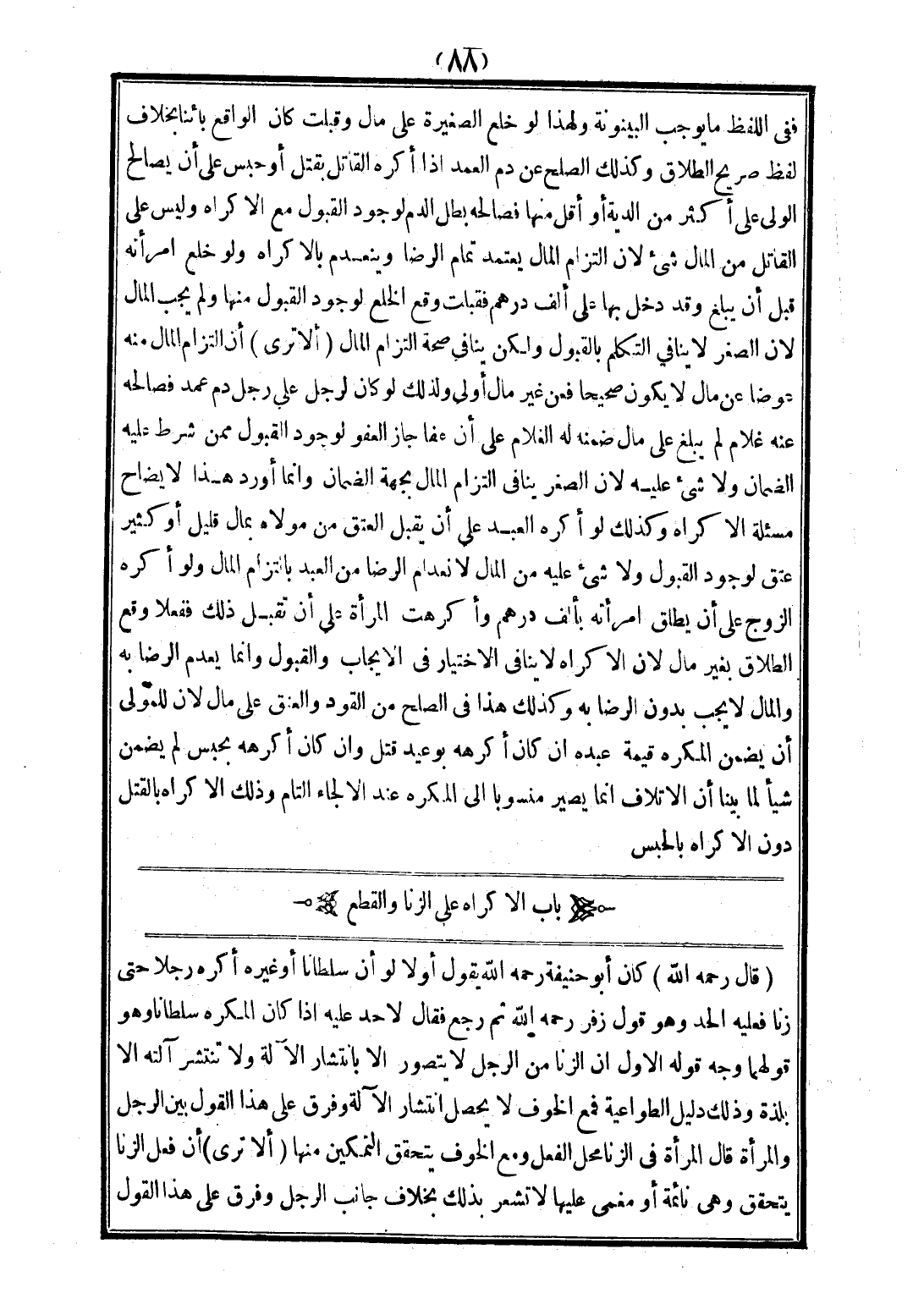 (قَالَ - رَحِمَهُ اللَّهُ -) كَانَ أَبُو حَنِيفَةَ - رَحِمَهُ اللَّهُ - يَقُولُ أَوَّلًا لَوْ أَنَّ سُلْطَانًا، أَوْ غَيْرَهُ أَكْرَهَ رَجُلًا حَتَّى زَنَى، فَعَلَيْهِ الْحَدُّ، وَهُوَ قَوْلُ زُفَرَ - رَحِمَهُ اللَّهُ -، ثُمَّ رَجَعَ، فَقَالَ لَا حَدَّ عَلَيْهِ إذَا كَانَ الْمُكْرِهُ سُلْطَانًا، وَهُوَ قَوْلُهُمَا: وَجْهُ قَوْلِهِ الْأَوَّلِ أَنَّ الزِّنَا مِنْ الرَّجُلِ لَا يُتَصَوَّرُ إلَّا بِانْتِشَارِ الْآلَةِ، وَلَا تَنْتَشِرُ آلَتُهُ إلَّا بِلَذَّةٍ، وَذَلِكَ دَلِيلُ الطَّوَاعِيَةِ، فَمَعَ الْخَوْفِ لَا يَحْصُلُ انْتِشَارُ الْآلَةِ، وَفَرَّقَ عَلَى هَذَا الْقَوْلِ بَيْنَ الرَّجُلِ وَالْمَرْأَةِ قَالَ الْمَرْأَةُ فِي الزِّنَا مَحَلُّ الْفِعْلِ، وَمَعَ الْخَوْفِ يَتَحَقَّقُ التَّمْكِينُ مِنْهَا.