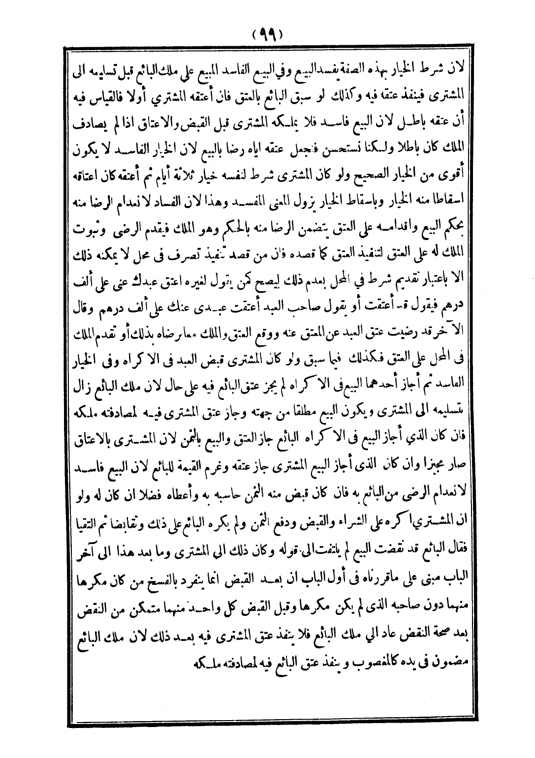 لِأَنَّ شَرْطَ الْخِيَارِ بِهَذِهِ الصِّفَةِ يُفْسِدُ الْبَيْعَ، وَفِي الْبَيْعِ الْفَاسِدِ الْمَبِيعُ عَلَى مِلْكِ الْبَائِعِ قَبْلَ تَسْلِيمِهِ إلَى الْمُشْتَرِي، فَيَنْفُذُ عِتْقُهُ فِيهِ، وَكَذَلِكَ لَوْ سَبَقَ الْبَائِعُ بِالْعِتْقِ، فَإِنْ أَعْتَقَهُ الْمُشْتَرِي أَوَّلًا، فَالْقِيَاسُ فِيهِ أَنَّ عِتْقَهُ بَاطِلٌ؛ لِأَنَّ الْبَيْعَ فَاسِدٌ، فَلَا يَمْلِكُهُ الْمُشْتَرِي قَبْلَ الْقَبْضِ، وَالْإِعْتَاقُ إذَا لَمْ يُصَادِفْ الْمِلْكَ كَانَ بَاطِلًا، وَلَكِنَّا نَسْتَحْسِنُ فَنَجْعَلُ عِتْقَهُ إيَّاهُ رِضًا بِالْبَيْعِ؛ لِأَنَّ الْخِيَارَ الْفَاسِدَ لَا يَكُونُ أَقْوَى مِنْ الْخِيَارِ الصَّحِيحِ، وَلَوْ كَانَ الْمُشْتَرِي شَرَطَ لِنَفْسِهِ خِيَارَ ثَلَاثَةِ أَيَّامٍ، ثُمَّ أَعْتَقَهُ كَانَ إعْتَاقُهُ إسْقَاطًا مِنْهُ الْخِيَارَ، وَبِإِسْقَاطِ الْخِيَارِ يَزُولُ الْمَعْنَى الْمُفْسِدُ، وَهَذَا؛ لِأَنَّ الْفَسَادَ لِانْعِدَامِ الرِّضَا مِنْهُ بِحُكْمِ الْبَيْعِ، وَإِقْدَامُهُ عَلَى الْعِتْقِ يَتَضَمَّنُ الرِّضَا مِنْهُ بِالْحُكْمِ، وَهُوَ الْمِلْكُ، فَيُقَدَّمُ الرِّضَى، وَثُبُوتُ الْمِلْكِ لَهُ عَلَى الْعِتْقِ لِتَنْفِيذِ الْعِتْقِ كَمَا قَصَدَهُ، فَإِنَّ مَنْ قَصَدَ تَنْفِيذَ تَصَرُّفٍ فِي مَحَلٍّ لَا يُمْكِنُهُ ذَلِكَ إلَّا بِاعْتِبَارِ تَقْدِيمِ شَرْطٍ فِي الْمَحَلِّ بِعَدَمِ ذَلِكَ لِيَصِحَّ كَمَنْ يَقُولُ لِغَيْرِهِ: أَعْتِقْ عَبْدَك عَنِّي عَلَى أَلْفِ دِرْهَمٍ، فَيَقُولُ قَدْ أَعْتَقْت، أَوْ يَقُولُ صَاحِبُ الْعَبْدِ: أَعْتَقْت عَبْدِي عَنْك عَلَى أَلْفِ دِرْهَمٍ، وَقَالَ الْآخَرُ: قَدْ رَضِيت عِتْقَ الْعَبْدِ عَنْ الْمُعْتَقِ عَنْهُ وَوَقَعَ الْعِتْقُ، وَالْمِلْكُ مَعًا بِرِضَاهُ بِذَلِكَ، أَوْ تَقَدَّمَ الْمِلْكُ فِي الْمَحَلِّ عَلَى الْعِتْقِ، فَكَذَلِكَ فِيمَا سَبَقَ.