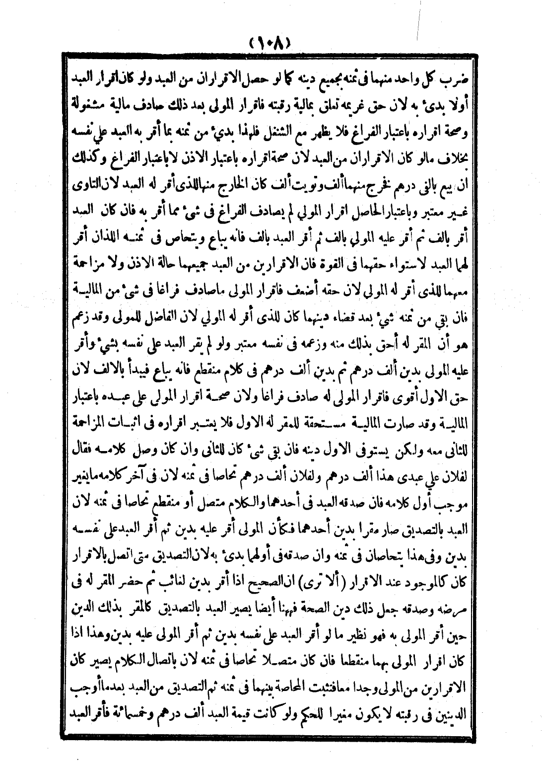فَإِنْ كَانَ الْعَبْدُ أَقَرَّ بِأَلْفٍ ثُمَّ أَقَرَّ عَلَيْهِ الْمَوْلَى بِأَلْفٍ ثُمَّ أَقَرَّ الْعَبْدُ بِأَلْفٍ فَإِنَّهُ يُبَاعُ وَيَتَحَاصُّ فِي ثَمَنِهِ اللَّذَانِ أَقَرَّ لَهُمَا الْعَبْدُ لِاسْتِوَاءِ حَقِّهِمَا فِي الْقُوَّةِ؛ فَإِنَّ الْإِقْرَارَيْنِ مِنْ الْعَبْدِ جَمِيعِهِمَا حَالَةَ الْإِذْنِ وَلَا مُزَاحَمَةَ مَعَهُمَا لِلَّذِي أَقَرَّ لَهُ الْمَوْلَى؛ لِأَنَّ حَقَّهُ أَضْعَفُ فَإِقْرَارُ الْمَوْلَى مَا صَادَفَ فَرَاغًا فِي شَيْءٍ مِنْ الْمَالِيَّةِ، فَإِنْ بَقِيَ مِنْ ثَمَنِهِ شَيْءٌ بَعْدَ قَضَاءِ دَيْنِهِمَا كَانَ لِلَّذِي أَقَرَّ لَهُ الْمَوْلَى؛ لِأَنَّ الْفَاضِلَ لِلْمَوْلَى وَقَدْ زَعَمَ هُوَ أَنَّ الْمُقَرَّ لَهُ أَحَقُّ بِذَلِكَ مِنْهُ وَزَعْمُهُ فِي نَفْسِهِ مُعْتَبَرٌ، وَلَوْ لَمْ يُقِرَّ الْعَبْدُ عَلَى نَفْسِهِ بِشَيْءٍ وَأَقَرَّ عَلَيْهِ الْمَوْلَى بِدَيْنٍ أَلْفُ دِرْهَم، ثُمَّ بِدَيْنٍ أَلْفُ دِرْهَمٍ فِي كَلَامٍ مُنْقَطِعٍ فَإِنَّهُ يُبَاعُ فَيُبْدَأُ بِالْأَلْفِ؛ لِأَنَّ حَقَّ الْأَوَّلِ أَقْوَى فَإِقْرَارُ الْمَوْلَى لَهُ صَادَفَ فَرَاغًا وَلِأَنَّ صِحَّةَ إقْرَارِ الْمَوْلَى عَلَى عَبْدِهِ بِاعْتِبَارِ الْمَالِيَّةِ وَقَدْ صَارَتْ الْمَالِيَّةُ مُسْتَحَقَّةٌ لِلْمُقَرِّ لَهُ الْأَوَّلِ فَلَا يُعْتَبَرُ إقْرَارُهُ فِي إثْبَاتِ الْمُزَاحَمَةِ لِلثَّانِي مَعَهُ وَلَكِنْ يَسْتَوْفِي الْأَوَّلُ دَيْنَهُ فَإِنْ بَقِيَ شَيْءٌ كَانَ لِلثَّانِي، وَإِنْ كَانَ وَصَلَ كَلَامَهُ فَقَالَ لِفُلَانٍ عَلَى عَبْدِي هَذَا أَلْفُ دِرْهَمٍ وَلِفُلَانٍ أَلْفِ دِرْهَمٍ تَحَاصَّا فِي ثَمَنِهِ؛ لِأَنَّ فِي آخِرِ كَلَامِهِ مَا يُغَيِّرُ مُوجَبَ أَوَّلِ كَلَامِهِ، فَإِنْ صَدَّقَهُ الْعَبْدُ فِي أَحَدِهِمَا وَالْكَلَامُ مُتَّصِلٌ أَوْ مُنْقَطِعٌ تَحَاصَّا فِي ثَمَنِهِ؛ لِأَنَّ الْعَبْدَ بِالتَّصْدِيقِ صَارَ مُقِرًّا بِدَيْنِ أَحَدِهِمَا فَكَأَنَّ الْمَوْلَى أَقَرَّ عَلَيْهِ بِدَيْنٍ ثُمَّ أَقَرَّ الْعَبْدُ عَلَى نَفْسِهِ بِدَيْنٍ، وَفِي هَذَا يَتَحَاصَّانِ فِي ثَمَنِهِ، وَإِنْ صَدَّقَهُ فِي أَوَّلِهِمَا بُدِئَ بِهِ لِأَنَّ التَّصْدِيقَ مَتَى اتَّصَلَ بِالْإِقْرَارِ كَانَ كَالْمَوْجُودِ عِنْدَ الْإِقْرَارِ.
