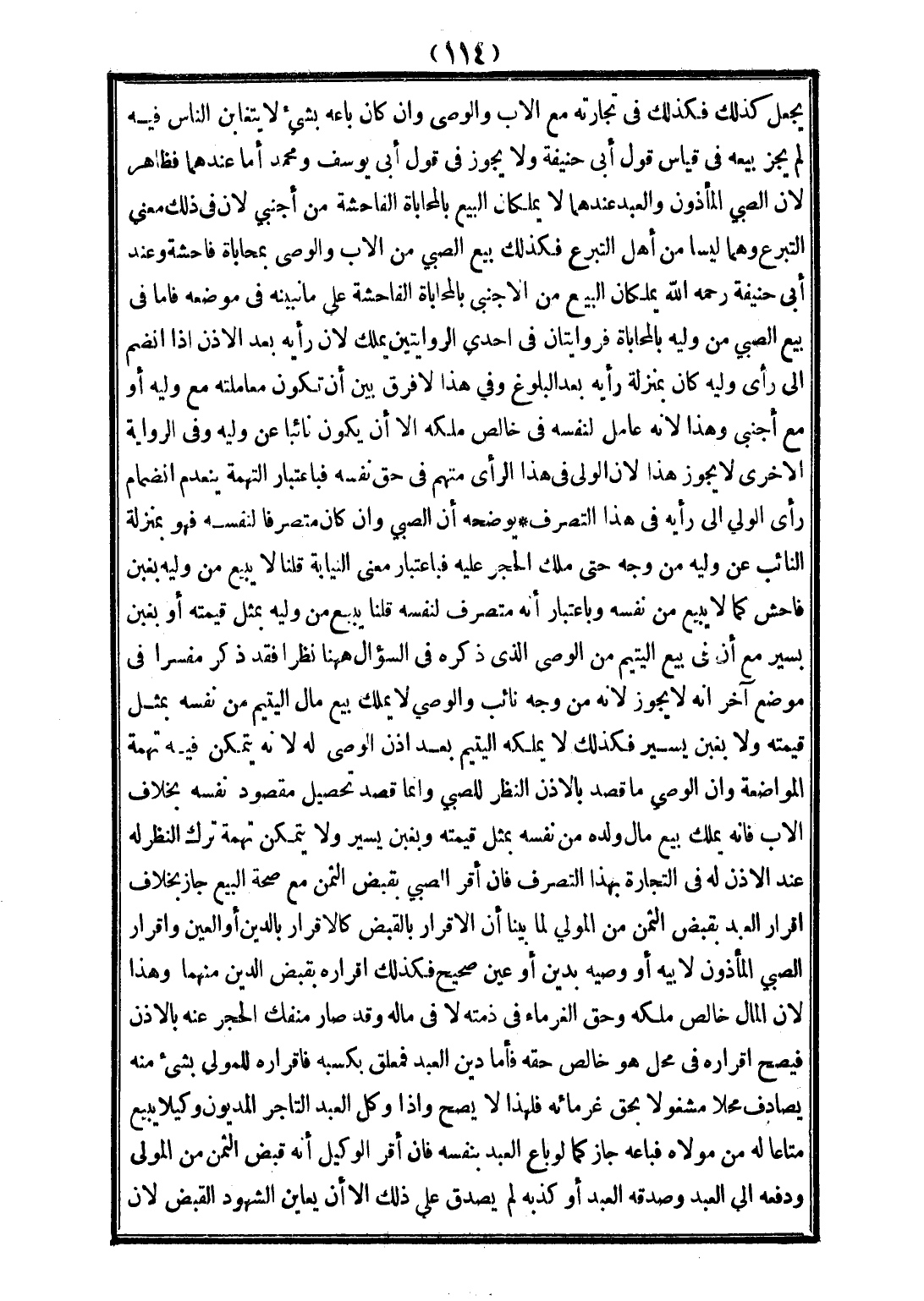 يُجْعَلُ كَذَلِكَ فَكَذَلِكَ فِي تِجَارَتِهِ مَعَ الْأَبِ وَالْوَصِيِّ وَإِنْ كَانَ بَاعَهُ بِشَيْءٍ لَا يَتَغَابَنُ النَّاسُ فِيهِ لَمْ يَجُزْ بَيْعُهُ فِي قِيَاسِ قَوْلِ أَبِي حَنِيفَةَ وَلَا يَجُوزُ فِي قَوْلِ أَبِي يُوسُفَ وَمُحَمَّدٍ أَمَّا عِنْدَهُمَا فَظَاهِرٌ؛ لِأَنَّ الصَّبِيَّ الْمَأْذُونَ وَالْعَبْدَ عِنْدَهُمَا لَا يَمْلِكَانِ الْبَيْعَ بِالْمُحَابَاةِ الْفَاحِشَةِ مِنْ أَجْنَبِيٍّ؛ لِأَنَّ فِي ذَلِكَ مَعْنَى التَّبَرُّعِ وَهُمَا لَيْسَا مِنْ أَهْلِ التَّبَرُّعِ فَكَذَلِكَ بَيْعُ الصَّبِيِّ مِنْ الْأَبِ وَالْوَصِيِّ بِمُحَابَاةٍ فَاحِشَةٍ وَعِنْدَ أَبِي حَنِيفَةَ - رَحِمَهُ اللَّهُ - يَمْلِكَانِ الْبَيْعَ مِنْ الْأَجْنَبِيِّ بِالْمُحَابَاةِ الْفَاحِشَةِ عَلَى مَا نُبَيِّنُهُ فِي مَوْضِعِهِ، فَأَمَّا فِي بَيْعِ الصَّبِيِّ مِنْ وَلِيِّهِ بِالْمُحَابَاةِ فَرِوَايَتَانِ فِي إحْدَى الرِّوَايَتَيْنِ يَمْلِكُ؛ لِأَنَّ رَأْيَهُ بَعْدَ الْإِذْنِ إذَا انْضَمَّ إلَى رَأْيِ وَلِيِّهِ كَانَ بِمَنْزِلَةِ رَأْيِهِ بَعْدَ الْبُلُوغِ وَفِي هَذَا لَا فَرْقَ بَيْنَ أَنْ يَكُونَ مُعَامَلَتُهُ مَعَ وَلِيِّهِ أَوْ مَعَ أَجْنَبِيٍّ وَهَذَا؛ لِأَنَّهُ عَامِلٌ لِنَفْسِهِ فِي خَالِصِ مِلْكِهِ إلَّا أَنْ يَكُونَ نَائِبًا عَنْ وَلِيِّهِ وَفِي الرِّوَايَةِ الْأُخْرَى لَا يَجُوزُ هَذَا؛ لِأَنَّ الْوَلِيَّ فِي هَذَا الرَّأْيِ مُتَّهَمٌ فِي حَقِّ نَفْسِهِ فَبِاعْتِبَارِ التُّهْمَةِ يَنْعَدِمُ انْضِمَامُ رَأْيِ الْوَلِيِّ إلَى رَأْيِهِ فِي هَذَا التَّصَرُّفِ.