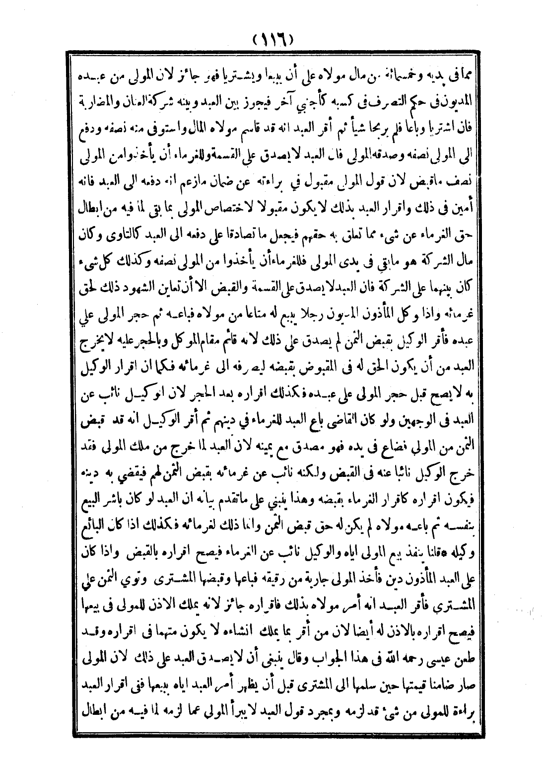 مِمَّا فِي يَدَيْهِ وَخَمْسِمِائَةٍ مِنْ مَالِ مَوْلَاهُ عَلَى أَنْ يَبِيعَا وَيَشْتَرِيَا فَهُوَ جَائِزٌ؛ لِأَنَّ الْمَوْلَى مِنْ عَبْدِهِ الْمَدْيُونِ فِي حُكْمِ التَّصَرُّفِ فِي كَسْبِهِ كَأَجْنَبِيٍّ آخَرَ فَيَجُوزُ بَيْنَ الْعَبْدِ وَبَيْنَهُ شَرِكَةُ الْعَنَانِ وَالْمُضَارَبَةِ فَإِنْ اشْتَرَيَا وَبَاعَا فَلَمْ يَرْبَحَا شَيْئًا، ثُمَّ أَقَرَّ الْعَبْدُ أَنَّهُ قَدْ قَاسَمَ مَوْلَاهُ الْمَالَ وَاسْتَوْفَى مِنْهُ نِصْفَهُ وَدَفَعَ إلَى الْمَوْلَى نِصْفَهُ وَصَدَّقَهُ الْمَوْلَى فَإِنَّ الْعَبْدَ لَا يُصَدَّقُ عَلَى الْقِسْمَةِ وَلِلْغُرَمَاءِ أَنْ يَأْخُذُوا مِنْ الْمَوْلَى نِصْفَ مَا قَبَضَ؛ لِأَنَّ قَوْلَ الْمَوْلَى مَقْبُولٌ فِي بَرَاءَتِهِ عَنْ ضَمَانِ مَا زَعَمَ أَنَّهُ دَفَعَهُ إلَى الْعَبْدِ فَإِنَّهُ أَمِينٌ فِي ذَلِكَ وَإِقْرَارُ الْعَبْدِ بِذَلِكَ لَا يَكُونُ مَقْبُولًا لِاخْتِصَاصِ الْمَوْلَى بِمَا بَقِيَ لَمَا فِيهِ مِنْ إبْطَالِ حَقِّ الْغُرَمَاءِ عَنْ شَيْءٍ مِمَّا تَعَلَّقَ بِهِ حَقُّهُمْ فَيُجْعَلُ مَا تَصَادَقَا عَلَى دَفْعِهِ إلَى الْعَبْدِ كَالتَّاوِي وَكَانَ مَالُ الشَّرِكَةِ هُوَ مَا بَقِيَ فِي يَدَيْ الْمَوْلَى فَلِلْغُرَمَاءِ أَنْ يَأْخُذُوا مِنْ الْمَوْلَى نِصْفَهُ، وَكَذَلِكَ كُلُّ شَيْءٍ كَانَ بَيْنَهُمَا عَلَى الشَّرِكَةِ فَإِنَّ الْعَبْدَ لَا يُصَدَّقُ عَلَى الْقِسْمَةِ وَالْقَبْضِ إلَّا إنْ تُعَايِنَ الشُّهُودُ ذَلِكَ لِحَقِّ غُرَمَائِهِ.