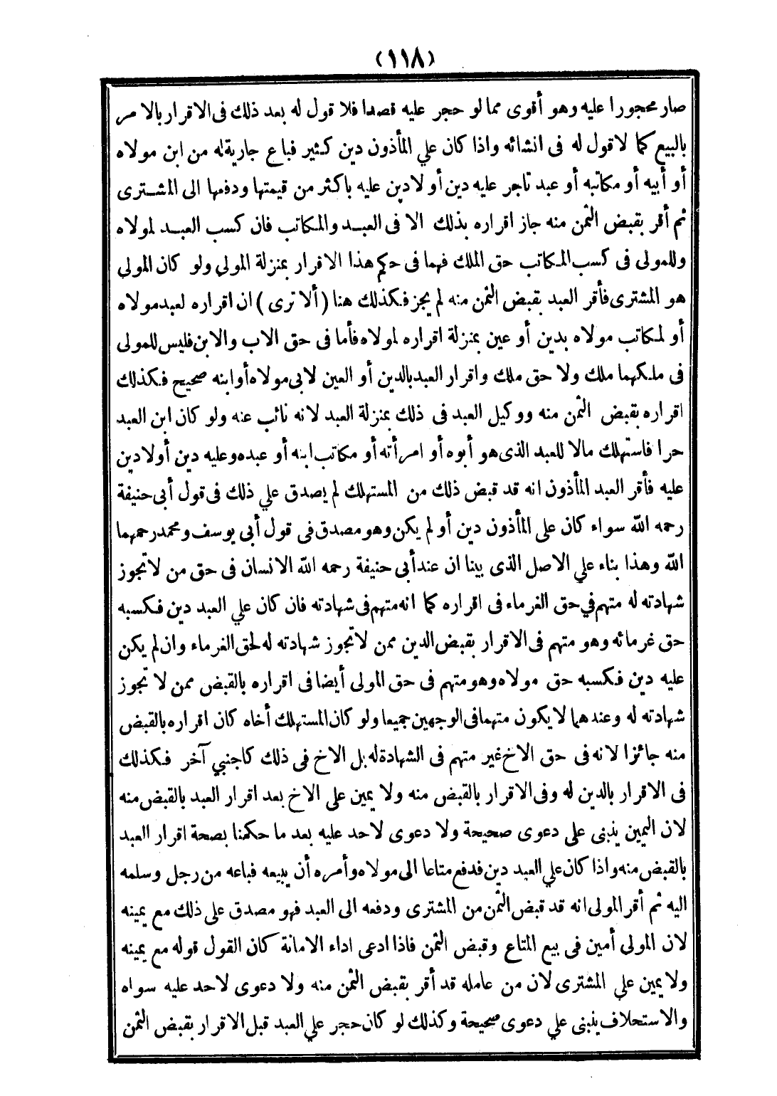 (أَلَا تَرَى) أَنَّ إقْرَارَهُ لِعَبْدِ مَوْلَاهُ أَوْ لِمُكَاتَبِ مَوْلَاهُ بِدَيْنٍ أَوْ عَيْنٍ بِمَنْزِلَةِ إقْرَارِهِ لِمَوْلَاهُ، فَأَمَّا فِي حَقِّ الْأَبِ وَالِابْنِ فَلَيْسَ لِلْمَوْلَى فِي مِلْكِهِمَا مِلْكٌ وَلَا حَقُّ مِلْكٍ وَإِقْرَارُ الْعَبْدِ بِالدَّيْنِ أَوْ الْعَيْنِ لِأَبِي مَوْلَاهُ أَوْ ابْنِهِ صَحِيحٌ فَكَذَلِكَ إقْرَارُهُ بِقَبْضِ الثَّمَنِ مِنْهُ وَوَكِيلُ الْعَبْدِ فِي ذَلِكَ بِمَنْزِلَةِ الْعَبْدِ؛ لِأَنَّهُ نَائِبٌ عَنْهُ.