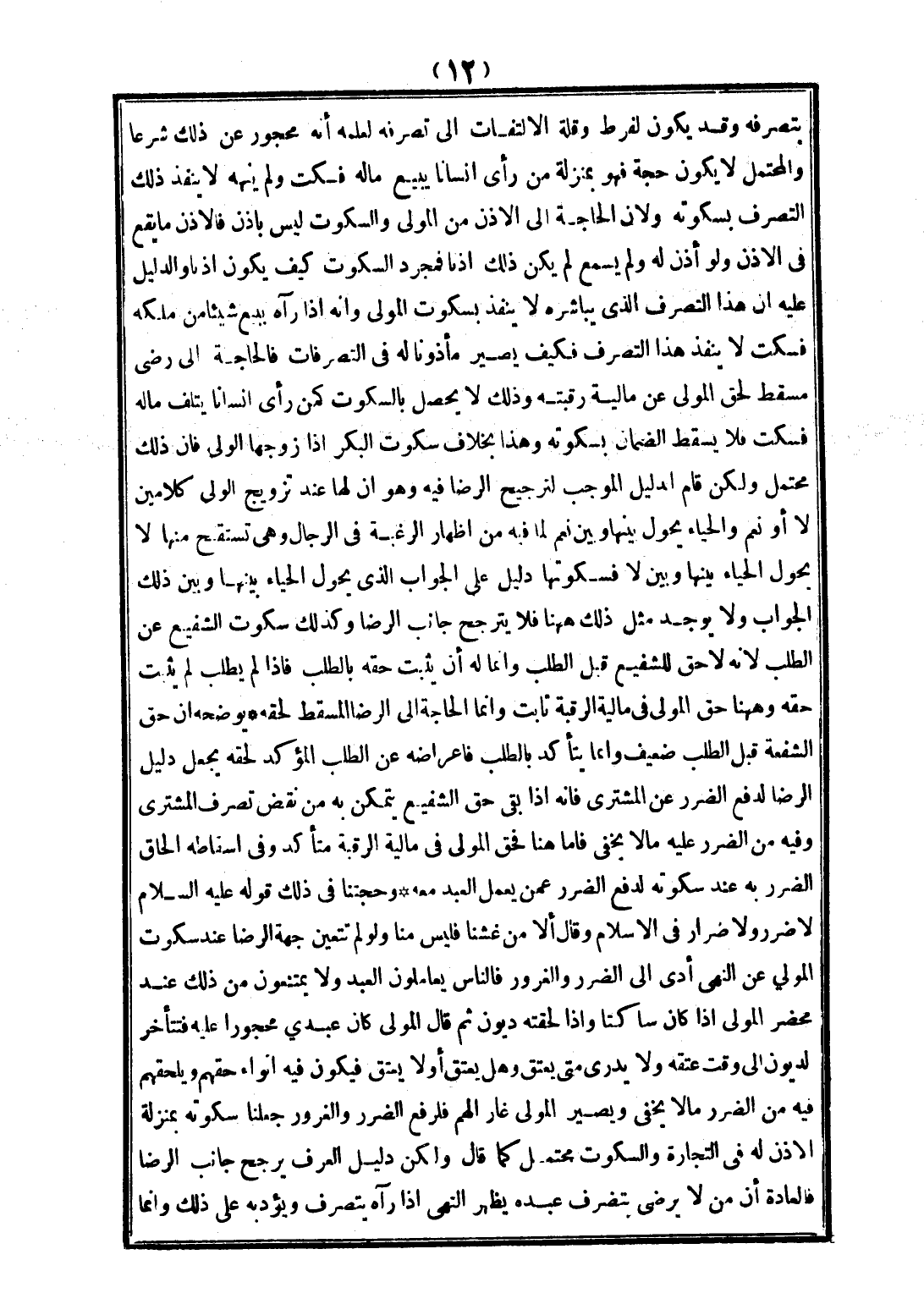 بِتَصَرُّفِهِ وَقَدْ يَكُونُ لِفَرْطِ وَقِلَّةِ الِالْتِفَاتِ إلَى تَصَرُّفِهِ لِعِلْمِهِ أَنَّهُ مَحْجُورٌ عَنْ ذَلِكَ شَرْعًا، وَالْمُحْتَمَلُ لَا يَكُونُ حُجَّةً فَهُوَ بِمَنْزِلَةِ مَنْ رَأَى إنْسَانًا يَبِيعُ مَالَهُ فَسَكَتَ وَلَمْ يَنْهَهُ لَا يَنْفُذُ ذَلِكَ التَّصَرُّفُ بِسُكُوتِهِ وَلِأَنَّ الْحَاجَةَ إلَى الْإِذْنِ مِنْ الْمَوْلَى، وَالسُّكُوتُ لَيْسَ بِإِذْنٍ فَالْإِذْنُ مَا يَقَعُ فِي الْإِذْنِ وَلَوْ أَذِنَ لَهُ وَلَمْ يَسْمَعْ لَمْ يَكُنْ ذَلِكَ إذْنًا فَمُجَرَّدُ السُّكُوتِ كَيْفَ يَكُونُ إذْنًا، وَالدَّلِيلُ عَلَيْهِ أَنَّ هَذَا التَّصَرُّفَ الَّذِي يُبَاشِرُهُ لَا يَنْفُذُ بِسُكُوتِ الْمَوْلَى، وَأَنَّهُ إذَا رَآهُ يَبِيعُ شَيْئًا مِنْ مِلْكِهِ فَسَكَتَ لَا يَنْفُذُ هَذَا التَّصَرُّفُ فَكَيْفَ يَصِيرُ مَأْذُونًا لَهُ فِي التَّصَرُّفَاتِ فَالْحَاجَةُ إلَى رِضًى مُسْقِطٌ لِحَقِّ الْمَوْلَى عَنْ مَالِيَّةِ رَقَبَتِهِ وَذَلِكَ لَا يَحْصُلُ بِالسُّكُوتِ كَمَنْ رَأَى إنْسَانًا يُتْلِفُ مَالَهُ فَسَكَتَ فَلَا يَسْقُطُ الضَّمَانُ بِسُكُوتِهِ وَهَذَا بِخِلَافِ سُكُوتِ الْبِكْرِ إذَا زَوَّجَهَا الْوَلِيُّ فَإِنَّ ذَلِكَ مُحْتَمَلٌ وَلَكِنْ قَامَ الدَّلِيلُ الْمُوجِبُ لِتَرْجِيحِ الرِّضَا فِيهِ وَهُوَ أَنَّ لَهَا عِنْدَ تَزْوِيجِ الْوَلِيِّ كَلَامَيْنِ " لَا " أَوْ " نَعَمْ "، وَالْحَيَاءُ بَيْنَهَا وَبَيْنَ نَعَمْ لِمَا فِيهِ مِنْ إظْهَارِ الرَّغْبَةِ فِي الرِّجَالِ وَهِيَ تُسْتَقْبَحُ مِنْهَا لَا يَحُولُ الْحَيَاءُ بَيْنَهَا وَبَيْنَ لَا فَسُكُوتُهَا دَلِيلٌ عَلَى الْجَوَابِ الَّذِي يَحُولُ الْحَيَاءُ بَيْنَهُمَا وَبَيْنَ ذَلِكَ الْجَوَابِ وَلَا يُوجَدُ مِثْلُ ذَلِكَ هَهُنَا فَلَا يَتَرَجَّحُ جَانِبُ الرِّضَا وَكَذَلِكَ سُكُوتُ الشَّفِيعِ عَنْ الطَّلَبِ؛ لِأَنَّهُ لَا حَقَّ لِلشَّفِيعِ قَبْلَ الطَّلَبِ، وَإِنَّمَا لَهُ أَنْ يُثْبِتَ حَقَّهُ بِالطَّلَبِ فَإِذَا لَمْ يَطْلُبْ لَمْ يَثْبُتْ حَقُّهُ، وَهَهُنَا حَقُّ الْمَوْلَى فِي مَالِيَّةِ الرَّقَبَةِ ثَابِتٌ، وَإِنَّمَا الْحَاجَةُ إلَى الرِّضَا الْمُسْقِطِ لِحَقِّهِ.