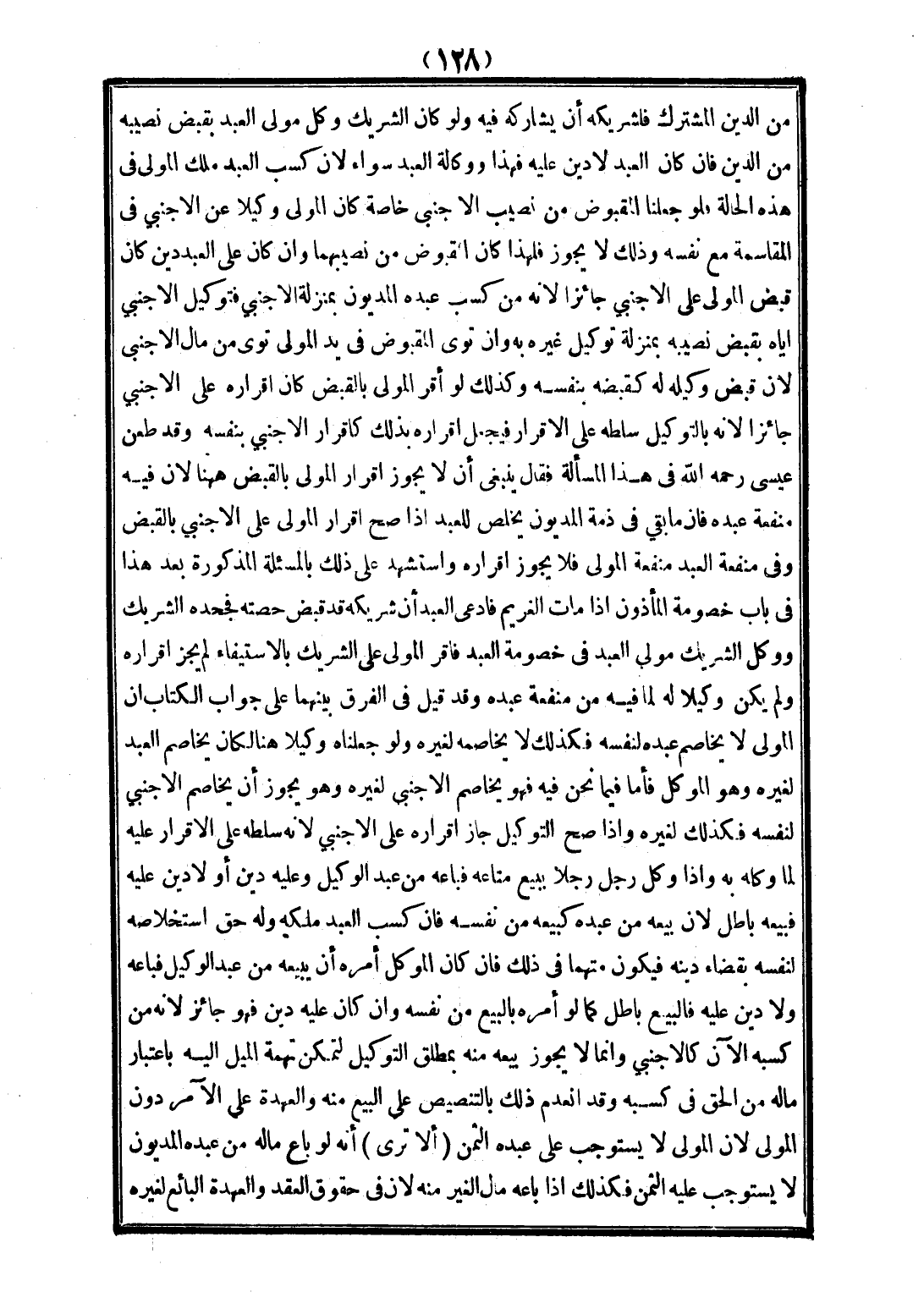 وَلَوْ كَانَ الشَّرِيكُ وَكَّلَ مَوْلَى الْعَبْدِ بِقَبْضِ نَصِيبِهِ مِنْ الدَّيْنِ فَإِنْ كَانَ الْعَبْدُ لَا دَيْنَ عَلَيْهِ فَهَذَا وَوَكَالَةُ الْعَبْدِ سَوَاءٌ؛ لِأَنَّ كَسْبَ الْعَبْدِ مِلْكُ الْمَوْلَى فِي هَذِهِ الْحَالَةِ فَلَوْ جَعَلْنَا الْمَقْبُوضَ مِنْ نَصِيبِ الْأَجْنَبِيِّ خَاصَّةً كَانَ الْمَوْلَى وَكِيلًا عَنْ الْأَجْنَبِيِّ فِي الْمُقَاسَمَةِ مَعَ نَفْسِهِ، وَذَلِكَ لَا يَجُوزُ؛ فَلِهَذَا كَانَ الْمَقْبُوضُ مِنْ نَصِيبِهِمَا وَإِنْ كَانَ عَلَى الْعَبْدِ دَيْنٌ كَانَ قَبْضُ الْمَوْلَى عَلَى الْأَجْنَبِيِّ جَائِزًا؛ لِأَنَّهُ مِنْ كَسْبِ عَبْدِهِ الْمَدْيُونِ بِمَنْزِلَةِ الْأَجْنَبِيِّ فَتَوْكِيلُ الْأَجْنَبِيِّ إيَّاهُ بِقَبْضِ نَصِيبِهِ بِمَنْزِلَةِ تَوْكِيلِ غَيْرِهِ بِهِ وَإِنْ تَوِيَ الْمَقْبُوضُ فِي يَدِ الْمَوْلَى تَوِيَ مِنْ مَالِ الْأَجْنَبِيِّ؛ لِأَنَّ قَبْضَ وَكِيلِهِ لَهُ كَقَبْضِهِ بِنَفْسِهِ، وَكَذَلِكَ لَوْ أَقَرَّ الْمَوْلَى بِالْقَبْضِ كَانَ إقْرَارُهُ عَلَى الْأَجْنَبِيِّ جَائِزًا؛ لِأَنَّهُ بِالتَّوْكِيلِ سَلَّطَهُ عَلَى الْإِقْرَارِ فَيُجْعَلُ إقْرَارُهُ بِذَلِكَ كَإِقْرَارِ الْأَجْنَبِيِّ بِنَفْسِهِ وَقَدْ طَعَنَ عِيسَى - رَحِمَهُ اللَّهُ - فِي هَذِهِ الْمَسْأَلَةِ فَقَالَ: يَنْبَغِي أَنْ لَا يَجُوزَ إقْرَارُ الْمَوْلَى بِالْقَبْضِ هَهُنَا؛ لِأَنَّ فِيهِ مَنْفَعَةً فَإِنَّ مَا بَقِيَ فِي ذِمَّةِ الْمَدْيُونِ يَخْلُصُ لِلْعَبْدِ إذَا صَحَّ إقْرَارُ الْمَوْلَى عَلَى الْأَجْنَبِيِّ بِالْقَبْضِ وَفِي مَنْفَعَةِ الْعَبْدِ مَنْفَعَةُ الْمَوْلَى فَلَا يَجُوزُ إقْرَارُهُ وَاسْتَشْهَدَ عَلَى ذَلِكَ بِالْمَسْأَلَةِ الْمَذْكُورَةِ بَعْدَ هَذَا فِي بَابِ خُصُومَةِ الْمَأْذُونِ إذَا مَاتَ الْغَرِيمُ فَادَّعَى أَنَّ شَرِيكَهُ قَدْ قَبَضَ حِصَّتَهُ فَجَحَدَهُ الشَّرِيكُ وَوَكَّلَ الشَّرِيكُ مَوْلَى الْعَبْدِ فِي خُصُومَةِ الْعَبْدِ فَأَقَرَّ الْمَوْلَى عَلَى الشَّرِيكِ بِالِاسْتِيفَاءِ لَمْ يَجُزْ إقْرَارُهُ وَلَمْ يَكُنْ وَكِيلًا لَهُ؛ لِمَا فِيهِ مِنْ مَنْفَعَةِ عَبْدِهِ وَقَدْ قِيلَ فِي الْفَرْقِ بَيْنَهُمَا عَلَى جَوَابِ الْكِتَابِ إنَّ الْمَوْلَى لَا يُخَاصِمُ عَبْدَهُ لِنَفْسِهِ فَكَذَلِكَ لَا يُخَاصِمُهُ لِغَيْرِهِ، وَلَوْ جَعَلْنَاهُ وَكِيلًا هُنَا لَكَانَ يُخَاصِمُ الْعَبْدَ لِغَيْرِهِ وَهُوَ الْمُوَكِّلُ، فَأَمَّا فِيمَا نَحْنُ فِيهِ فَهُوَ يُخَاصِمُ الْأَجْنَبِيَّ لِغَيْرِهِ وَهُوَ يَجُوزُ أَنْ يُخَاصِمَ الْأَجْنَبِيَّ لِنَفْسِهِ فَكَذَلِكَ لِغَيْرِهِ، وَإِذَا صَحَّ التَّوْكِيلُ جَازَ إقْرَارُهُ عَلَى الْأَجْنَبِيِّ؛ لِأَنَّهُ سَلَّطَهُ عَلَى الْإِقْرَارِ عَلَيْهِ لَمَّا وَكَّلَهُ بِهِ.