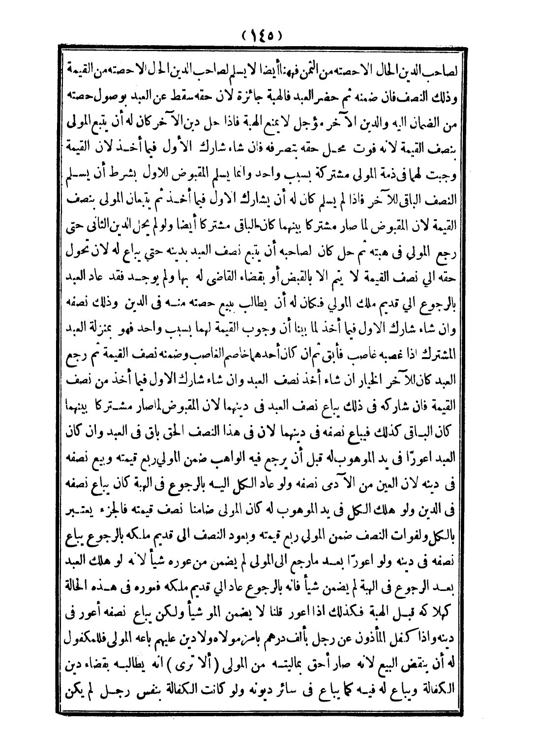 لِصَاحِبِ الدَّيْنِ الْحَالِّ إلَّا حِصَّتَهُ مِنْ الثَّمَنِ فَهَهُنَا أَيْضًا لَا يُسَلِّمُ لِصَاحِبِ الدَّيْنِ الْحَالِّ إلَّا حِصَّتَهُ مِنْ الْقِيمَةِ، وَذَلِكَ النِّصْفِ فَإِنْ ضَمِنَهُ، ثُمَّ حَضَرَ الْعَبْدُ فَالْهِبَةُ جَائِزَةٌ؛ لِأَنَّ حَقَّهُ سَقَطَ عَنْ الْعَبْدِ بِوُصُولِ حِصَّتِهِ مِنْ الضَّمَانِ إلَيْهِ وَالدَّيْنُ الْآخَرُ مُؤَجَّلٌ لَا يَمْنَعُ الْهِبَةَ فَإِذَا حَلَّ دَيْنُ الْآخَرِ كَانَ لَهُ أَنْ يَتَّبِعَ الْمَوْلَى بِنِصْفِ الْقِيمَةِ؛ لِأَنَّهُ فَوَّتَ مَحَلَّ حَقِّهِ بِتَصَرُّفِهِ فَإِنْ شَارَكَ الْأَوَّلَ فِيمَا أَخَذَ؛ لِأَنَّ الْقِيمَةَ وَجَبَتْ لَهُمَا فِي ذِمَّةِ الْمَوْلَى مُشْتَرَكَةً بِسَبَبٍ وَاحِدٍ وَإِنَّمَا - يُسَلِّمُ الْمَقْبُوضَ لِلْأَوَّلِ بِشَرْطِ أَنْ يُسَلِّمَ النِّصْفَ الْبَاقِيَ لِلْآخَرِ فَإِذَا لَمْ يُسَلِّمْ كَانَ لَهُ أَنْ يُشَارِكَ الْأَوَّلَ فِيمَا أَخَذَ، ثُمَّ يَتَّبِعَانِ الْمَوْلَى بِنِصْفِ الْقِيمَةِ؛ لِأَنَّ الْمَقْبُوضَ لَمَّا صَارَ مُشْتَرَكًا بَيْنَهُمَا كَانَ الْبَاقِي مُشْتَرَكًا أَيْضًا.