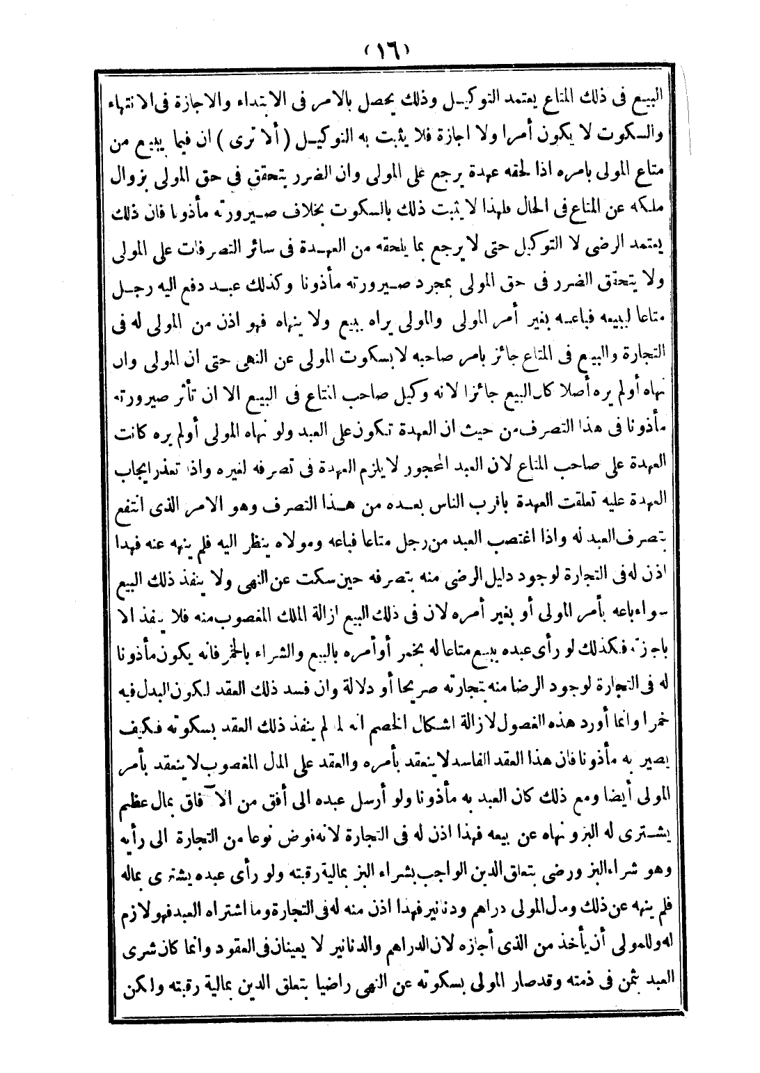 الْبَيْعِ فِي ذَلِكَ الْمَتَاعِ يَعْتَمِدُ التَّوْكِيلَ وَذَلِكَ يَحْصُلُ بِالْأَمْرِ فِي الِابْتِدَاءِ، وَالْإِجَازَةِ فِي الِانْتِهَاءِ، وَالسُّكُوتُ لَا يَكُونُ أَمْرًا وَلَا إجَازَةً فَلَا يَثْبُتُ بِهِ التَّوْكِيلُ (أَلَا تَرَى) أَنَّ فِيمَا يَبِيعُ مِنْ مَتَاعِ الْمَوْلَى بِأَمْرِهِ إذَا لَحِقَهُ عُهْدَةٌ يَرْجِعُ عَلَى الْمَوْلَى، وَأَنَّ الضَّرَرَ يَتَحَقَّقُ فِي حَقِّ الْمَوْلَى بِزَوَالِ مِلْكِهِ عَنْ الْمَتَاعِ فِي الْحَالِ؛ فَلِهَذَا لَا يَثْبُتُ ذَلِكَ بِالسُّكُوتِ بِخِلَافِ صَيْرُورَتِهِ مَأْذُونًا فَإِنَّ ذَلِكَ يَعْتَمِدُ الرِّضَى لَا التَّوْكِيلَ حَتَّى لَا يَرْجِعَ بِمَا يَلْحَقُهُ مِنْ الْعُهْدَةِ فِي سَائِرِ التَّصَرُّفَاتِ عَلَى الْمَوْلَى وَلَا يَتَحَقَّقُ الضَّرَرُ فِي حَقِّ الْمَوْلَى بِمُجَرَّدِ صَيْرُورَتِهِ مَأْذُونًا وَكَذَلِكَ عَبْدٌ دَفَعَ إلَيْهِ رَجُلٌ مَتَاعًا لِيَبِيعَهُ فَبَاعَهُ بِغَيْرِ أَمْرِ الْمَوْلَى، وَالْمَوْلَى يَرَاهُ يَبِيعُ وَلَا يَنْهَاهُ فَهُوَ إذْنٌ مِنْ الْمَوْلَى لَهُ فِي التِّجَارَةِ، وَالْبَيْعُ فِي الْمَتَاعِ جَائِزٌ بِأَمْرِ صَاحِبِهِ لَا بِسُكُوتِ الْمَوْلَى عَنْ النَّهْيِ حَتَّى أَنَّ الْمَوْلَى وَإِنْ نَهَاهُ أَوْ لَمْ يَرَهُ أَصْلًا كَانَ الْبَيْعُ جَائِزًا؛ لِأَنَّهُ وَكِيلُ صَاحِبِ الْمَتَاعِ فِي الْبَيْعِ إلَّا أَنَّ تَأَثُّرَ صَيْرُورَتِهِ مَأْذُونًا فِي هَذَا التَّصَرُّفِ مِنْ حَيْثُ إنَّ الْعُهْدَةَ تَكُونُ عَلَى الْعَبْدِ، وَلَوْ نَهَاهُ الْمَوْلَى أَوْ لَمْ يَرَهُ كَانَتْ الْعُهْدَةُ عَلَى صَاحِبِ الْمَتَاعِ؛ لِأَنَّ الْعَبْدَ الْمَحْجُورَ لَا يَلْزَمُ الْعُهْدَةَ فِي تَصَرُّفِهِ لِغَيْرِهِ وَإِذَا تَعَذَّرَ إيجَابُ الْعُهْدَةِ عَلَيْهِ تَعَلَّقَتْ الْعُهْدَةُ بِأَقْرَبِ النَّاسِ بَعْدَهُ مِنْ هَذَا التَّصَرُّفِ وَهُوَ الْأَمْرُ الَّذِي انْتَفَعَ بِتَصَرُّفِ الْعَبْدِ لَهُ.