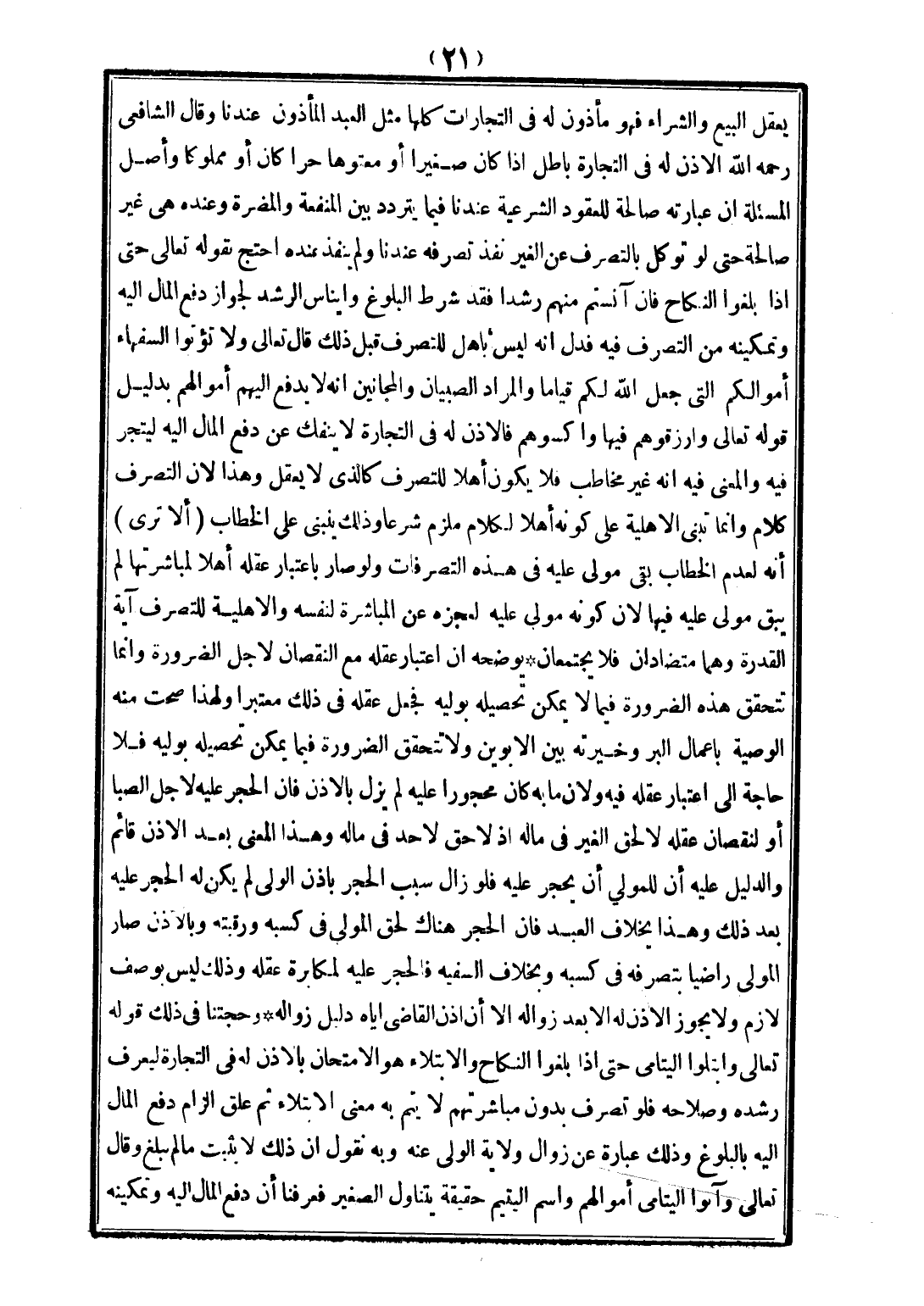 يُوَضِّحُهُ أَنَّ اعْتِبَارَ عَقْلِهِ مَعَ النُّقْصَانِ لِأَجْلِ الضَّرُورَةِ، وَإِنَّمَا تَتَحَقَّقُ هَذِهِ الضَّرُورَةُ فِيمَا لَا يُمْكِنُ تَحْصِيلُهُ بِوَلِيِّهِ فَجُعِلَ عَقْلُهُ فِي ذَلِكَ مُعْتَبَرًا؛ وَلِهَذَا صَحَّتْ مِنْهُ الْوَصِيَّةُ بِأَعْمَالِ الْبِرِّ وَخِيرَتُهُ بَيْنَ الْأَبَوَيْنِ وَلَا تَتَحَقَّقُ الضَّرُورَةُ فِيمَا يُمْكِنُ تَحْصِيلُهُ بِوَلِيِّهِ فَلَا حَاجَةَ إلَى اعْتِبَارِ عَقْلِهِ فِيهِ وَلِأَنَّ مَا بِهِ كَانَ مَحْجُورًا عَلَيْهِ لَمْ يَزُلْ بِالْإِذْنِ فَإِنَّ الْحَجْرَ عَلَيْهِ لِأَجْلِ الصِّبَا أَوْ لِنُقْصَانِ عَقْلِهِ لَا لِحَقِّ الْغَيْرِ فِي مَالِهِ إذْ لَا حَقَّ لِأَحَدٍ فِي مَالِهِ وَهَذَا الْمَعْنَى بَعْدَ الْإِذْنِ قَائِمٌ، وَالدَّلِيلُ عَلَيْهِ أَنَّ لِلْمَوْلَى أَنْ يَحْجُرَ عَلَيْهِ فَلَوْ زَالَ سَبَبُ الْحَجْرِ بِإِذْنِ الْوَلِيّ لَمْ يَكُنْ لَهُ الْحَجْرُ عَلَيْهِ بَعْدَ ذَلِكَ وَهَذَا بِخِلَافِ الْعَبْدِ فَإِنَّ الْحَجْرَ هُنَاكَ لَحِقَ الْمَوْلَى فِي كَسْبِهِ وَرَقَبَتِهِ وَبِالْإِذْنِ صَارَ الْمَوْلَى رَاضِيًا بِتَصَرُّفِهِ فِي كَسْبِهِ وَبِخِلَافِ السَّفِيهِ فَالْحَجْرُ عَلَيْهِ لِمُكَابَرَةِ عَقْلِهِ وَذَلِكَ لَيْسَ بِوَصْفٍ لَازِمٍ وَلَا يَجُوزُ الْإِذْنُ لَهُ إلَّا بَعْدَ زَوَالِهِ إلَّا أَنَّ إذْنَ الْقَاضِي إيَّاهُ دَلِيلُ زَوَالِهِ وَحُجَّتُنَا فِي ذَلِكَ قَوْله تَعَالَى {وَابْتَلُوا الْيَتَامَى حَتَّى إذَا بَلَغُوا النِّكَاحَ} [النساء: 6]، وَالِابْتِلَاءُ هُوَ الِامْتِحَانُ بِالْإِذْنِ لَهُ فِي التِّجَارَةِ لِيُعْرَفَ رُشْدُهُ وَصَلَاحُهُ فَلَوْ تَصَرَّفَ بِدُونِ مُبَاشَرَتِهِمْ لَا يَتِمُّ بِهِ مَعْنَى الِابْتِلَاءِ، ثُمَّ عَلَّقَ إلْزَامَ دَفْعِ الْمَالِ إلَيْهِ بِالْبُلُوغِ وَذَلِكَ عِبَارَةٌ عَنْ زَوَالِ وِلَايَةِ الْوَلِيِّ عَنْهُ وَبِهِ نَقُولُ إنَّ ذَلِكَ لَا يَثْبُتُ مَا لَمْ يَبْلُغْ، وَقَالَ تَعَالَى: {وَآتُوا الْيَتَامَى أَمْوَالَهُمْ} [النساء: 2] وَاسْمُ الْيَتِيمِ حَقِيقَةً يَتَنَاوَلُ الصَّغِيرَ فَعَرَفْنَا أَنْ دَفْعَ الْمَالِ إلَيْهِ وَتَمْكِينَهُ