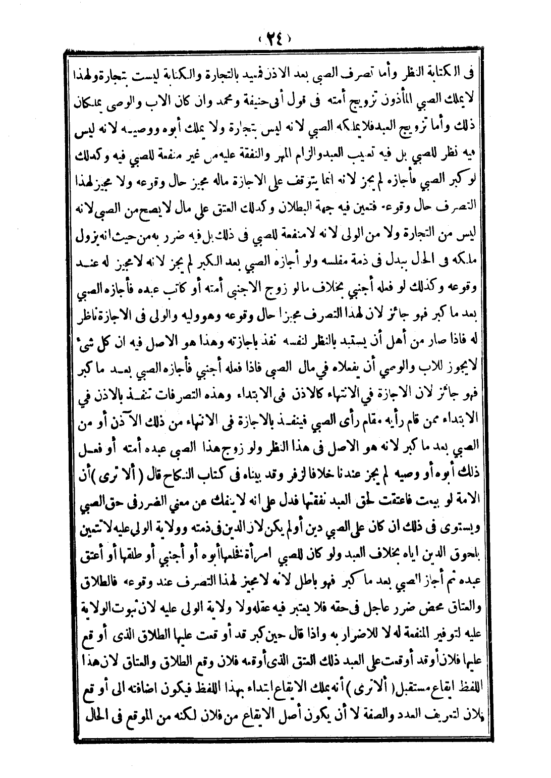 فِي الْكِتَابَةِ النَّظَرُ وَأَمَّا تَصَرُّفُ الصَّبِيِّ بَعْدَ الْإِذْنِ فَمُقَيَّدٌ بِالتِّجَارَةِ، وَالْكِتَابَةِ لَيْسَتْ بِتِجَارَةٍ؛ وَلِهَذَا لَا يَمْلِكُ الصَّبِيُّ الْمَأْذُونُ تَزْوِيجَ أَمَتِهِ فِي قَوْلِ أَبِي حَنِيفَةَ وَمُحَمَّدٍ، وَإِنْ كَانَ الْأَبُ، وَالْوَصِيُّ يَمْلِكَانِ ذَلِكَ.