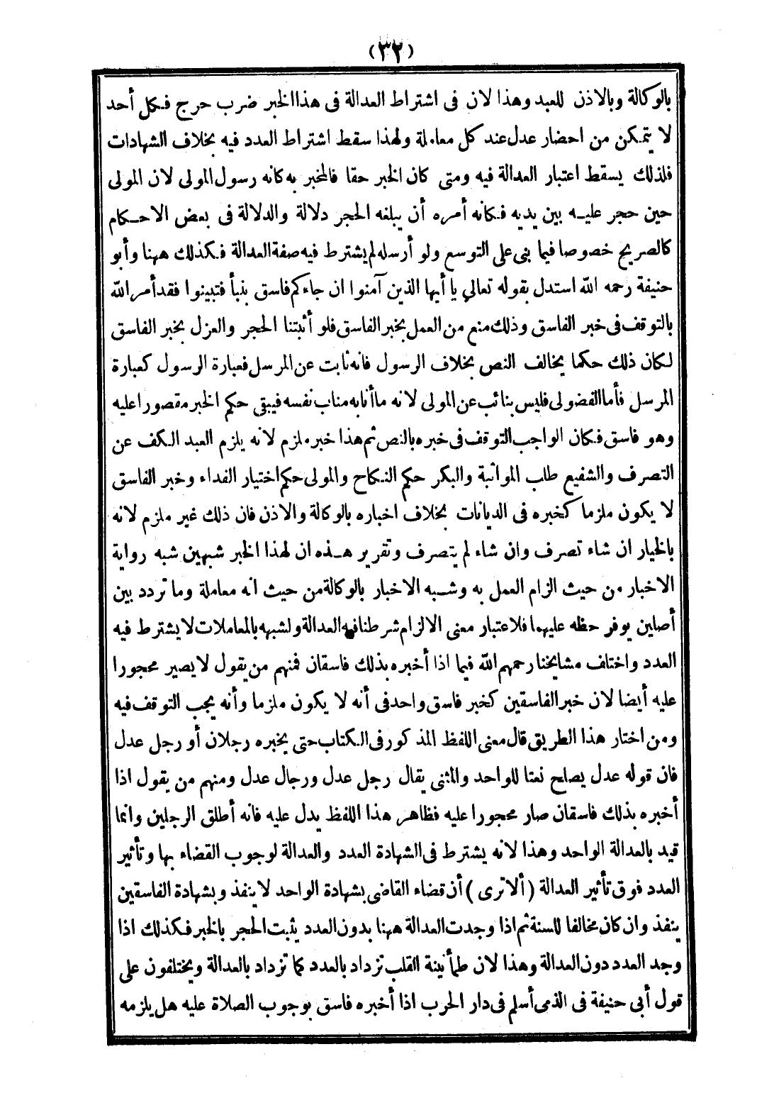 بِالْوَكَالَةِ وَبِالْإِذْنِ لِلْعَبْدِ وَهَذَا؛ لِأَنَّ فِي اشْتِرَاطِ الْعَدَالَةِ فِي هَذَا الْخَبَرِ ضَرْبُ حَرَجٍ فَكُلُّ أَحَدٍ لَا يَتَمَكَّنُ مِنْ إحْضَارِ عَدْلٍ عِنْدَ كُلِّ مُعَامَلَةٍ؛ وَلِهَذَا سَقَطَ اشْتِرَاطُ الْعَدَدِ فِيهِ بِخِلَافِ الشَّهَادَاتِ فَلِذَلِكَ يَسْقُطُ اعْتِبَارُ الْعَدَالَةِ فِيهِ وَمَتَى كَانَ الْخَبَرُ حَقًّا فَالْمُخْبِرُ بِهِ كَأَنَّهُ رَسُولُ الْمَوْلَى؛ لِأَنَّ الْمَوْلَى حِينَ حَجَرَ عَلَيْهِ بَيْنَ يَدَيْهِ فَكَأَنَّهُ أَمَرَهُ أَنْ يُبَلِّغَهُ الْحَجْرَ دَلَالَةً، وَالدَّلَالَةُ فِي بَعْضِ الْأَحْكَامِ كَالصَّرِيحِ خُصُوصًا فِيمَا بُنِيَ عَلَى التَّوَسُّعِ وَلَوْ أَرْسَلَهُ لَمْ يُشْتَرَطْ فِيهِ صِفَةُ الْعَدَالَةِ فَكَذَلِكَ هَهُنَا وَأَبُو حَنِيفَةَ - رَحِمَهُ اللَّهُ - اسْتَدَلَّ بِقَوْلِهِ تَعَالَى: {يَا أَيُّهَا الَّذِينَ آمَنُوا إِنْ جَاءَكُمْ فَاسِقٌ بِنَبَإٍ فَتَبَيَّنُوا} [الحجرات: 6] فَقَدْ أَمَرَ اللَّهُ بِالتَّوَقُّفِ فِي خَبَرِ الْفَاسِقِ وَذَلِكَ مَنْعٌ مِنْ الْعَمَلِ بِخَبَرِ الْفَاسِقِ فَلَوْ أَثْبَتْنَا الْحَجْرَ، وَالْعَزْلَ بِخَبَرِ الْفَاسِقِ لَكَانَ ذَلِكَ حُكْمًا يُخَالِفُ النَّصَّ بِخِلَافِ الرَّسُولِ فَإِنَّهُ ثَابِتٌ عَنْ الْمُرْسِلِ فَعِبَارَةُ الرَّسُولِ كَعِبَارَةِ الْمُرْسِلِ فَأَمَّا الْفُضُولِيُّ فَلَيْسَ بِنَائِبٍ عَنْ الْمَوْلَى؛ لِأَنَّهُ مَا أَنَابَهُ مَنَابَ نَفْسِهِ فَيَبْقَى حُكْمَ الْخَبَرِ مَقْصُورًا عَلَيْهِ وَهُوَ فَاسِقٌ فَكَانَ الْوَاجِبُ التَّوَقُّفَ فِي خَبَرِهِ بِالنَّصِّ، ثُمَّ هَذَا خَبَرٌ مُلْزِمٌ؛ لِأَنَّهُ يُلْزِمَ الْعَبْدَ الْكَفُّ عَنْ التَّصَرُّفِ، وَالشَّفِيعُ طَلَبَ الْمُوَاثَبَةَ، وَالْبِكْرُ حُكْمُ النِّكَاحِ، وَالْمَوْلَى حُكْمُ اخْتِيَارِ الْفِدَاءِ وَخَبَرُ الْفَاسِقِ لَا يَكُونُ مُلْزِمًا كَخَبَرِهِ فِي الدِّيَانَاتُ بِخِلَافِ إخْبَارِهِ بِالْوَكَالَةِ، وَالْإِذْنِ فَإِنَّ ذَلِكَ غَيْرُ مُلْزِمٍ؛ لِأَنَّهُ بِالْخِيَارِ إنْ شَاءَ تَصَرَّفَ، وَإِنْ شَاءَ لَمْ يَتَصَرَّفْ وَتَقْرِيرُ هَذِهِ أَنَّ لِهَذَا الْخَبَرِ شَبَهَيْنِ شَبَهُ رِوَايَةِ الْإِخْبَارِ مِنْ حَيْثُ إلْزَامُ الْعَمَلِ بِهِ وَشَبَهُ الْإِخْبَارِ بِالْوَكَالَةِ مِنْ حَيْثُ إنَّهُ مُعَامَلَةٌ وَمَنْ تَرَدَّدَ بَيْنَ أَصْلَيْنِ يُوَفَّرُ حَظُّهُ عَلَيْهِمَا فَلِاعْتِبَارِ مَعْنَى الْإِلْزَامِ شَرَطْنَا فِيهِ الْعَدَالَةَ وَلِشَبَهِهِ بِالْمُعَامَلَاتِ لَا يُشْتَرَطُ فِيهِ الْعَدَدُ وَاخْتَلَفَ مَشَايِخُنَا - رَحِمَهُمُ اللَّهُ - فِيمَا إذَا أَخْبَرَهُ بِذَلِكَ فَاسِقَانِ فَمِنْهُمْ مِنْ يَقُولُ لَا يَصِيرُ مَحْجُورًا عَلَيْهِ أَيْضًا؛ لِأَنَّ خَبَرَ الْفَاسِقَيْنِ كَخَبَرِ فَاسِقٍ وَاحِدٍ فِي أَنَّهُ لَا يَكُونُ مُلْزِمًا، وَأَنَّهُ يَجِبُ التَّوَقُّفُ فِيهِ، وَمَنْ اخْتَارَ هَذَا الطَّرِيقَ قَالَ مَعْنَى اللَّفْظِ الْمَذْكُورِ فِي الْكِتَابِ حَتَّى يُخْبِرَهُ رَجُلَانِ أَوْ رَجُلٌ عَدْلٌ فَإِنَّ قَوْلَهُ " عَدْلٌ " يَصْلُحُ نَعْتًا لِلْوَاحِدِ، وَالْمُثَنَّى، يُقَالُ: رَجُلٌ عَدْلٌ، وَرِجَالٌ عَدْلٌ.