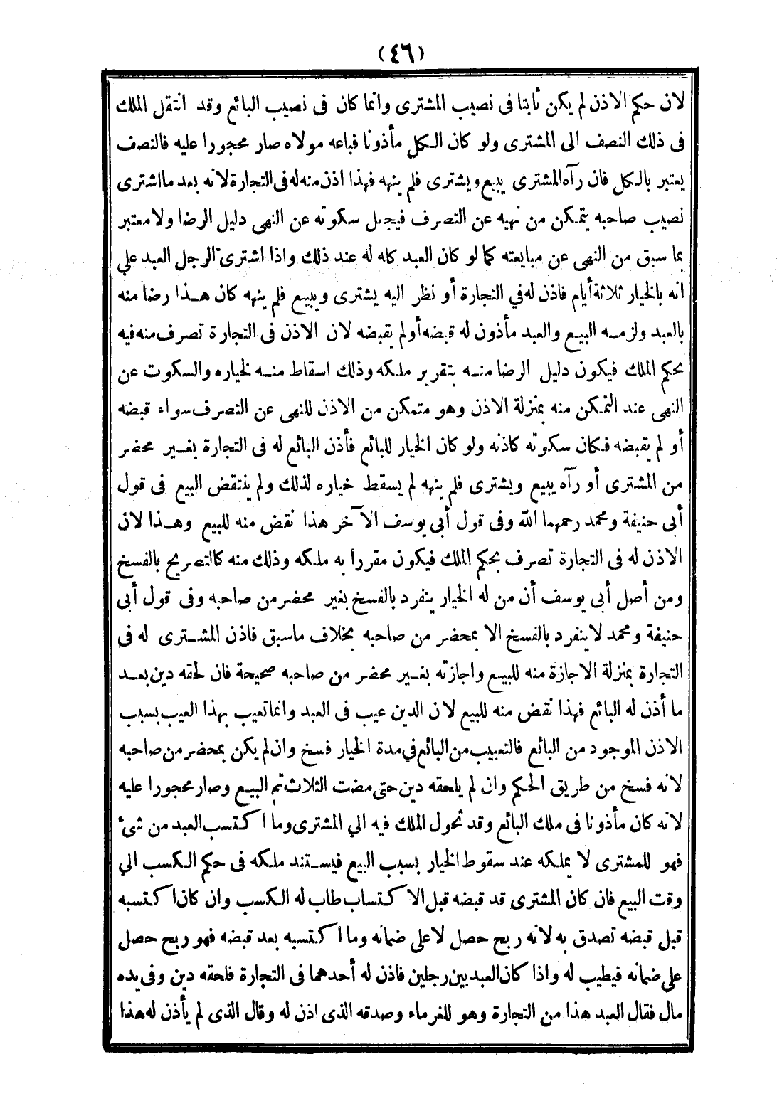 لِأَنَّ حُكْمَ الْإِذْنِ لَمْ يَكُنْ ثَابِتًا فِي نَصِيبِ الْمُشْتَرِي، وَإِنَّمَا كَانَ فِي نَصِيبِ الْبَائِعِ، وَقَدْ انْتَقَلَ الْمِلْكُ فِي ذَلِكَ النِّصْفِ إلَى الْمُشْتَرِي. وَلَوْ كَانَ الْكُلُّ مَأْذُونًا فَبَاعَهُ مَوْلَاهُ صَارَ مَحْجُورًا عَلَيْهِ فَالنِّصْفُ يُعْتَبَرُ بِالْكُلِّ فَإِنْ رَآهُ الْمُشْتَرِي يَبِيعُ وَيَشْتَرِي فَلَمْ يَنْهَهُ فَهَذَا إذْنٌ مِنْهُ لَهُ فِي التِّجَارَةِ؛ لِأَنَّهُ بَعْدَ مَا اشْتَرَى نَصِيبَ صَاحِبِهِ يَتَمَكَّنُ مِنْ نَهْيِهِ عَنْ التَّصَرُّفِ فَيُجْعَلُ سُكُوتُهُ عَنْ النَّهْيِ دَلِيلَ الرِّضَا وَلَا مُعْتَبَرَ بِمَا سَبَقَ مِنْ النَّهْيِ عَنْ مُبَايَعَتِهِ كَمَا لَوْ كَانَ الْعَبْدُ كُلُّهُ لَهُ عِنْدَ ذَلِكَ.