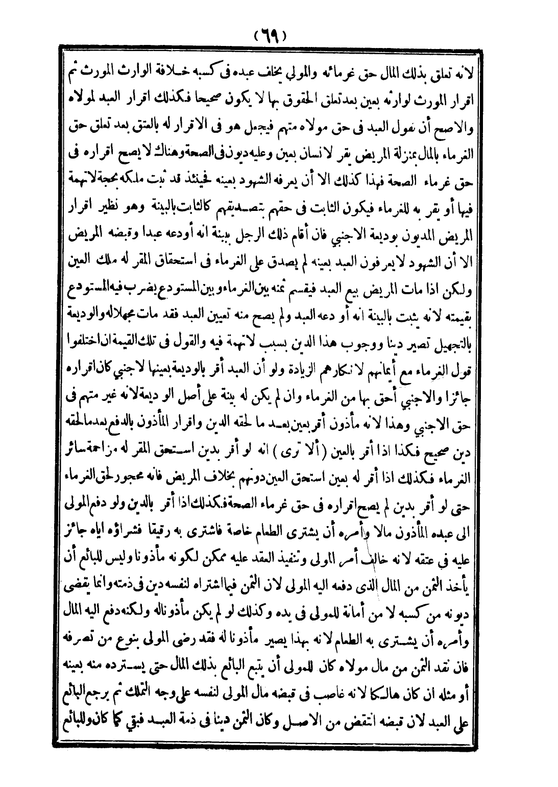 لِأَنَّهُ تَعَلَّقَ بِذَلِكَ الْمَالِ حَقُّ غُرَمَائِهِ، وَالْمَوْلَى يَخْلُفُ عَبْدَهُ فِي كَسْبِهِ خِلَافَةَ الْوَارِثِ الْمُوَرِّثَ، ثُمَّ إقْرَارُ الْمُوَرَّثِ لِوَارِثِهِ بِعَيْنٍ بَعْدَ تَعَلُّقِ الْحُقُوقِ بِهَا لَا يَكُونُ صَحِيحًا فَكَذَلِكَ إقْرَارُ الْعَبْدِ لِمَوْلَاهُ، وَالْأَصَحُّ أَنْ نَقُولَ الْعَبْدُ فِي حَقِّ مَوْلَاهُ مُتَّهَمٌ فَيَجْعَلُ هُوَ فِي الْإِقْرَارِ لَهُ بِالْعِتْقِ بَعْدَ تَعَلُّقِ حَقِّ الْغُرَمَاءِ بِالْمَالِ بِمَنْزِلَةِ الْمَرِيضِ يُقِرُّ لِإِنْسَانٍ بِعَيْنٍ وَعَلَيْهِ دُيُونٌ فِي الصِّحَّةِ وَهُنَاكَ لَا يَصِحُّ إقْرَارُهُ فِي حَقِّ غُرَمَاءِ الصِّحَّةِ فَهَذَا كَذَلِكَ إلَّا أَنْ يَعْرِفَهُ الشُّهُودُ بِعَيْنِهِ فَحِينَئِذٍ قَدْ ثَبَتَ مِلْكُهُ بِحُجَّةٍ لَا تُهْمَةَ فِيهَا أَوْ يُقِرَّ بِهِ لِلْغُرَمَاءِ فَيَكُونُ الثَّابِتُ فِي حَقِّهِمْ بِتَصْدِيقِهِمْ كَالثَّابِتِ بِالْبَيِّنَةِ، وَهُوَ نَظِيرُ إقْرَارِ الْمَرِيضِ الْمَدْيُونِ بِوَدِيعَةِ الْأَجْنَبِيِّ فَإِنْ أَقَامَ ذَلِكَ الرَّجُلُ بِبَيِّنَةٍ أَنَّهُ أَوْدَعَهُ عَبْدًا وَقَبَضَهُ الْمَرِيضُ إلَّا أَنَّ الشُّهُودَ لَا يَعْرِفُونَ الْعَبْدَ بِعَيْنِهِ لَمْ يُصَدَّقْ عَلَى الْغُرَمَاءِ فِي اسْتِحْقَاقِ الْمُقِرِّ لَهُ مِلْكُ الْعَيْنِ وَلَكِنْ إذَا مَاتَ الْمَرِيضُ بِيعَ الْعَبْدُ فَيُقْسَمُ ثَمَنُهُ بَيْنَ الْغُرَمَاءِ وَبَيْنَ الْمُسْتَوْدَعُ يَضْرِبُ فِيهِ الْمُسْتَوْدَعُ بِقِيمَتِهِ؛ لِأَنَّهُ يَثْبُتُ بِالْبَيِّنَةِ أَنَّهُ أَوْدَعَهُ الْعَبْدَ وَلَمْ يَصِحَّ مِنْهُ تَعْيِينُ الْعَبْدِ فَقَدْ مَاتَ مَجْهُولًا لَهُ، الْوَدِيعَةُ بِالتَّجْهِيلِ تَصِيرُ دَيْنًا، وَوُجُوبُ هَذَا الدَّيْنِ بِسَبَبٍ لَا تُهْمَةَ فِيهِ، وَالْقَوْلُ فِي تِلْكَ الْقِيمَةِ إنْ اخْتَلَفُوا قَوْلُ الْغُرَمَاءِ مَعَ أَيْمَانِهِمْ لِإِنْكَارِهِمْ الزِّيَادَةَ.