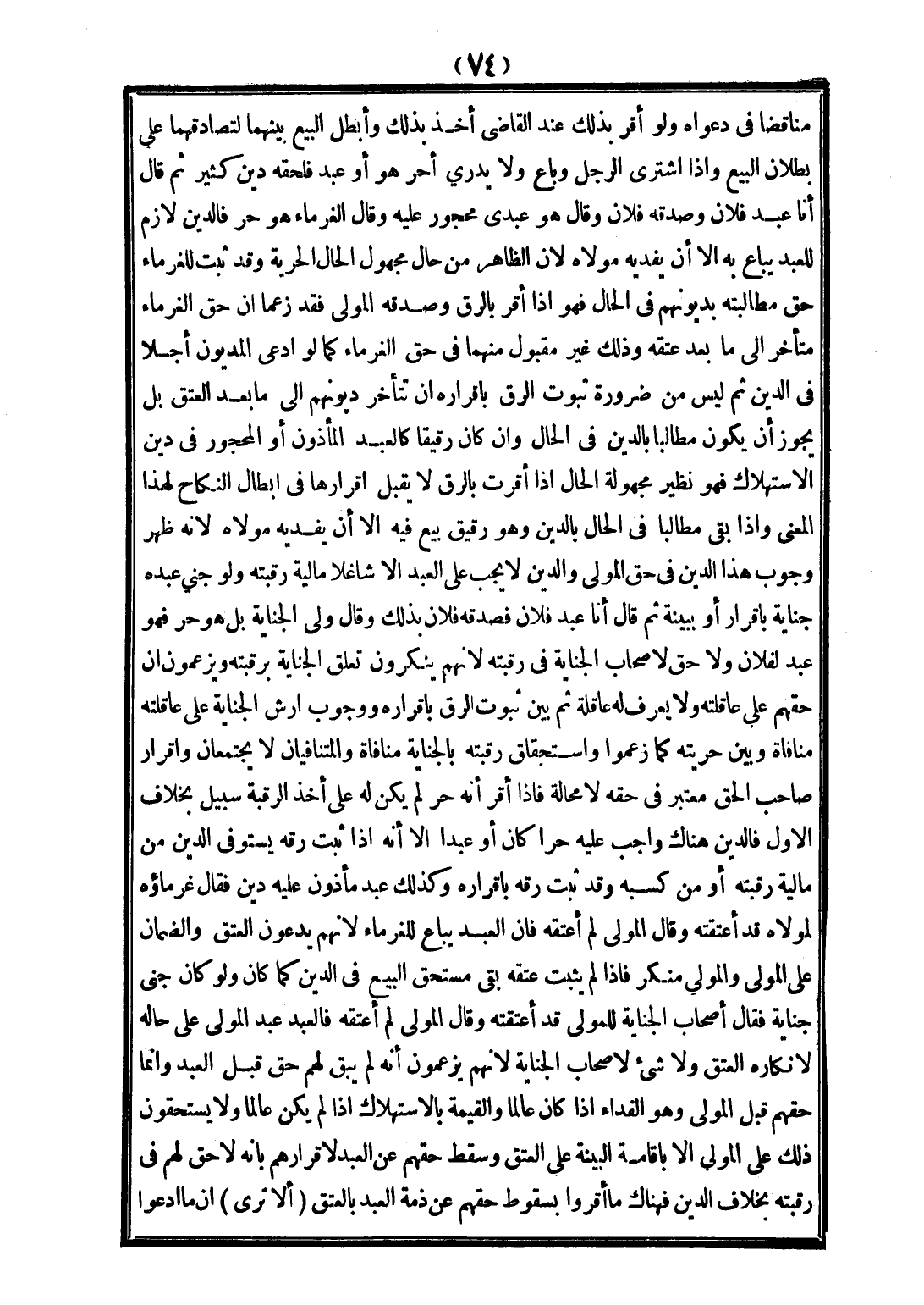 وَإِذَا اشْتَرَى الرَّجُلُ وَبَاعَ وَلَا يُدْرَى أَحُرٌّ هُوَ أَوْ عَبْدٌ فَلَحِقَهُ دَيْنٌ كَثِيرٌ، ثُمَّ قَالَ أَنَا عَبْدُ فُلَانٍ وَصَدَّقَهُ فُلَانٌ، وَقَالَ هُوَ عَبْدِي مَحْجُورٌ عَلَيْهِ، وَقَالَ الْغُرَمَاءُ هُوَ حُرٌّ فَالدَّيْنُ لَازِمٌ لِلْعَبْدِ يُبَاعُ بِهِ إلَّا أَنْ يَفْدِيَهُ مَوْلَاهُ؛ لِأَنَّ الظَّاهِرَ مِنْ حَالِ مَجْهُولِ الْحَالِ الْحُرِّيَّةُ وَقَدْ ثَبَتَ لِلْغُرَمَاءِ حَقُّ مُطَالَبَتِهِ بِدُيُونِهِمْ فِي الْحَالِ فَهُوَ إذَا أَقَرَّ بِالرِّقِّ وَصَدَّقَهُ الْمَوْلَى فَقَدْ زَعَمَا أَنَّ حَقَّ الْغُرَمَاءِ مُتَأَخِّرٌ إلَى مَا بَعْدَ عِتْقِهِ وَذَلِكَ غَيْرُ مَقْبُولٍ مِنْهُمَا فِي حَقِّ الْغُرَمَاءِ كَمَا لَوْ ادَّعَى الْمَدْيُونُ أَجَلًا فِي الدَّيْنِ، ثُمَّ لَيْسَ مِنْ ضَرُورَةِ ثُبُوتِ الرِّقِّ بِإِقْرَارِهِ أَنْ تَتَأَخَّرَ دُيُونُهُمْ إلَى مَا بَعْدَ الْعِتْقِ بَلْ يَجُوزُ أَنْ يَكُونَ مُطَالَبًا بِالدِّينِ فِي الْحَالِ، وَإِنْ كَانَ رَقِيقًا كَالْعَبْدِ الْمَأْذُونِ أَوْ الْمَحْجُورِ فِي دَيْنِ الِاسْتِهْلَاكِ فَهُوَ نَظِيرُ مَجْهُولَةِ الْحَالِ إذَا أَقَرَّتْ بِالرِّقِّ لَا يُقْبَلُ إقْرَارُهَا فِي إبْطَالِ النِّكَاحِ لِهَذَا الْمَعْنَى وَإِذَا بَقِيَ مُطَالَبًا فِي الْحَالِ بِالدَّيْنِ وَهُوَ رَقِيقٌ بِيعَ فِيهِ إلَّا أَنْ يَفْدِيَهُ مَوْلَاهُ؛ لِأَنَّهُ ظَهَرَ وُجُوبُ هَذَا الدَّيْنِ فِي حَقِّ الْمَوْلَى، وَالدَّيْنُ لَا يَجِبُ عَلَى الْعَبْدِ إلَّا شَاغِلًا مَالِيَّةَ رَقَبَتِهِ وَلَوْ جَنَى عَبْدُهُ جِنَايَة بِإِقْرَارٍ أَوْ بِبَيِّنَةٍ، ثُمَّ قَالَ أَنَا عَبْدُ فُلَانٍ فَصَدَّقَهُ فُلَانٌ بِذَلِكَ، وَقَالَ وَلِيُّ الْجِنَايَةِ بَلْ هُوَ حُرٌّ فَهُوَ عَبْدٌ لِفُلَانٍ وَلَا حَقَّ لِأَصْحَابِ الْجِنَايَةِ فِي رَقَبَتِهِ؛ لِأَنَّهُمْ يُنْكِرُونَ تَعَلُّقَ الْجِنَايَةِ بِرَقَبَتِهِ وَيَزْعُمُونَ أَنَّ حَقَّهُمْ عَلَى عَاقِلَتِهِ وَلَا يَعْرِفُ لَهُ عَاقِلَةً، ثُمَّ بَيْنَ ثُبُوتِ الرِّقِّ بِإِقْرَارِهِ وَوُجُوبِ أَرْشِ الْجِنَايَةِ عَلَى عَاقِلَتِهِ مُنَافَاةً وَبَيْنَ حُرِّيَّتِهِ كَمَا زَعَمُوا وَاسْتِحْقَاقِ رَقَبَتِهِ بِالْجِنَايَةِ مُنَافَاةٌ، وَالْمُتَنَافِيَانِ لَا يَجْتَمِعَانِ.
