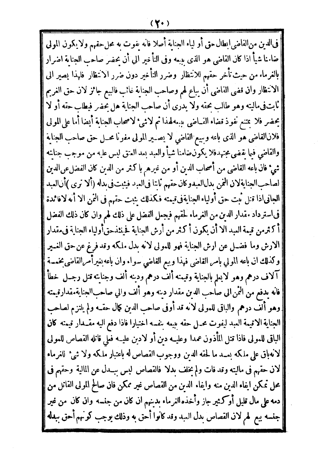 فِي الدَّيْنِ مِنْ الْقَاضِي إبْطَالَ حَقِّ أَوْلِيَاءِ الْجِنَايَةِ أَصْلًا فَإِنَّهُ يَفُوتُ بِهِ مَحَلُّ حَقِّهِمْ.